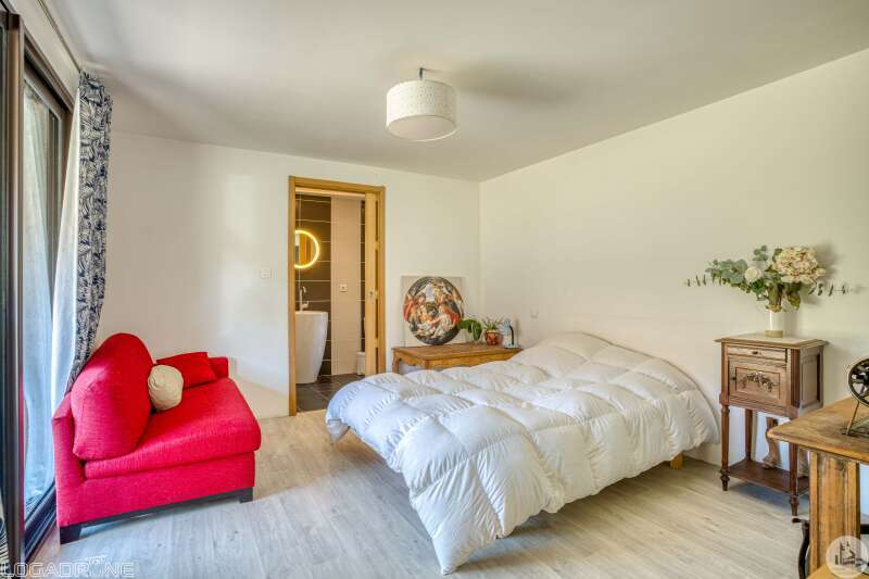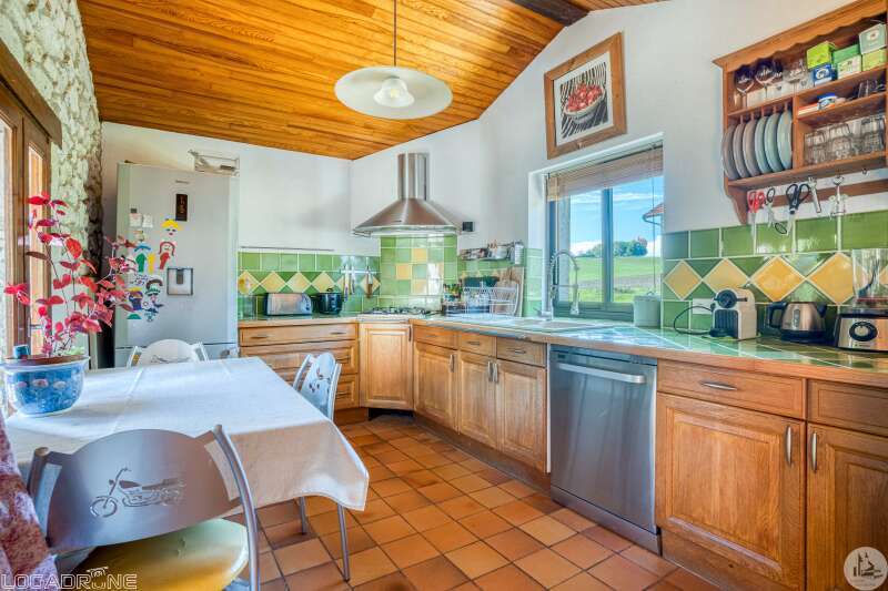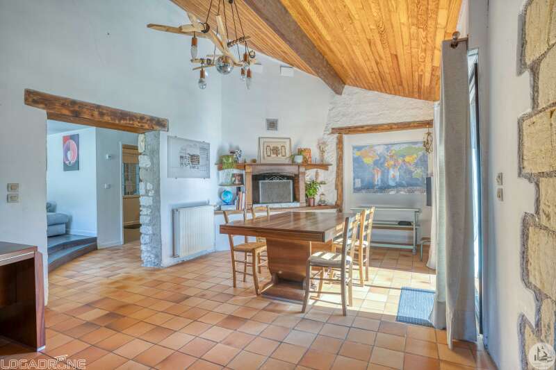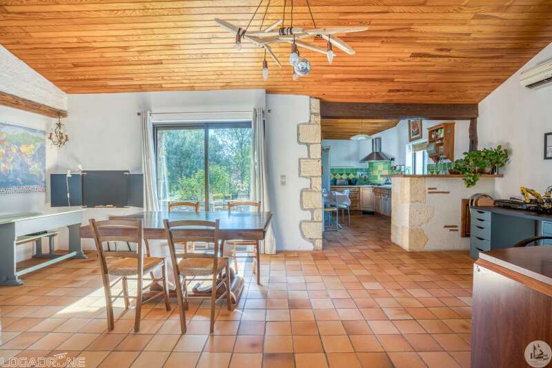 Une maison à usage d'habitation comprenant : - cuisine équipée (12,5m2) - salle à manger (25,6m2) - salon (17,4m2) - couloir avec placards (18,3m2) - grande buanderie avec cuisine secondaire (15m2) donnant sur l'abri ouvert, possibilité d'agrandissement de la surface habitable. - chambre 1 (12,9m2) avec dressing (3,5m2), et salle de douche privative avec lavabo et w.c également (4,7m2), baie vitrée donnant sur une terrasse. - chambre 2 avec baie vitrée offrant un accès sur la terrasse extérieure (13m2). - chambre 3 (14m2), avec également un accès sur l'extérieur. - salle de douche, avec lavabo et placards (9,6m2). - w.c indépendants (1,4m2). A l'extérieur: - un grand abri ouvert attenant (168m2 environ). - un atelier, anciennement à usage d'écuries (286m2 environ) - un puits avec une eau en abondance (les deux w.c et la machine à laver sont branchés dessus). - une mare - 3 grandes terrasses (53m2 celle de l'entrée- avec pièce accueillant le cumulus pour l'eau chaude la cuisine; 43m2 devant la chambre 1; 57m2 pour celle à gauche en sortant du salon). Divers : - chauffage central au fuel - climatisation réversible pour la cuisine, salon, salle à manger. - cheminée à foyer ouvert dans la salle à manger. - double vitrage