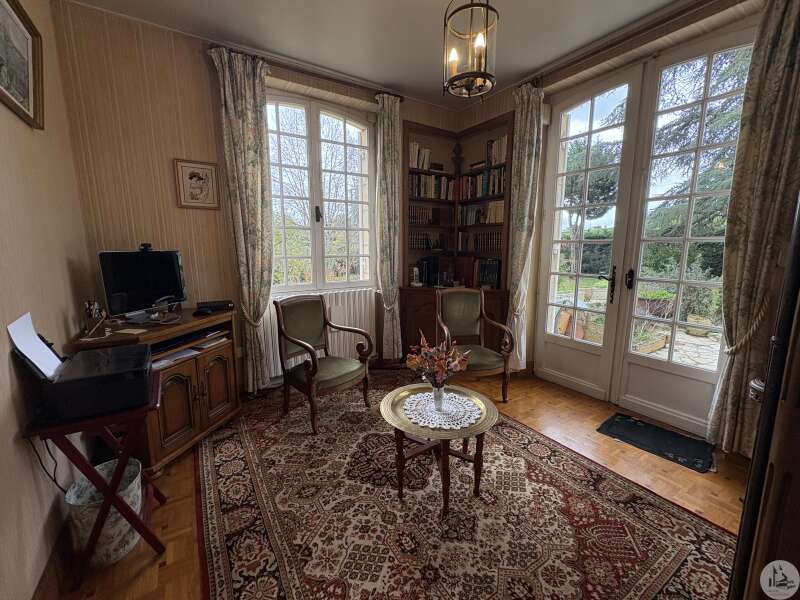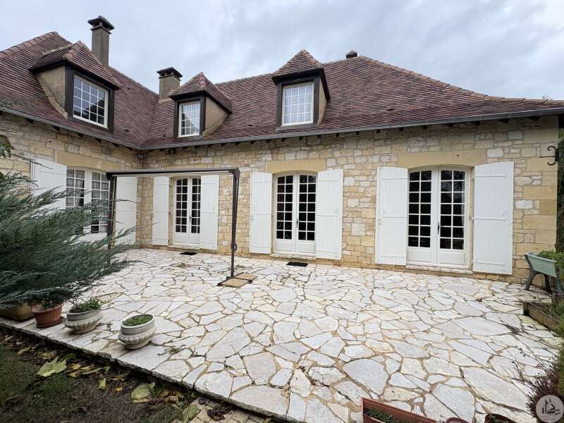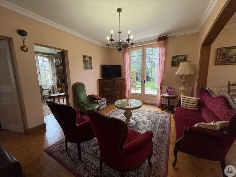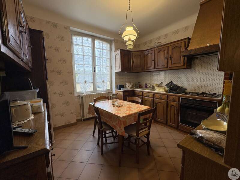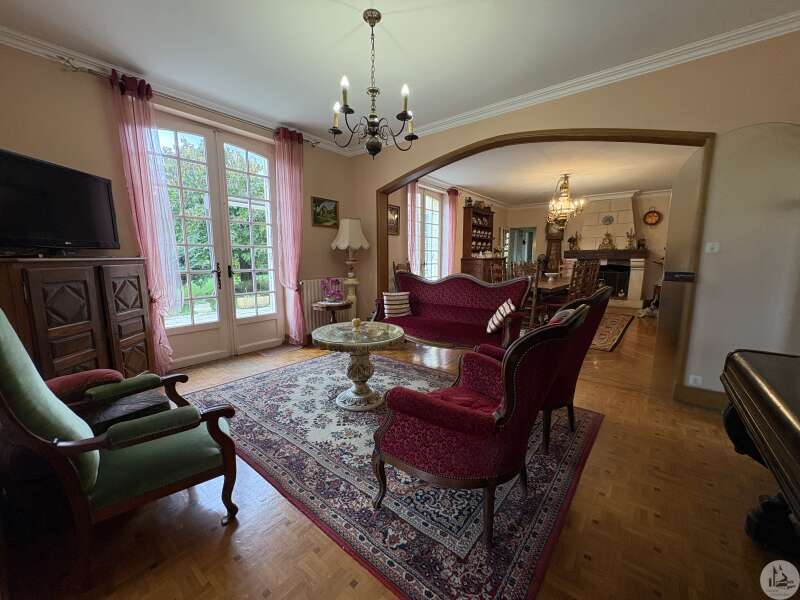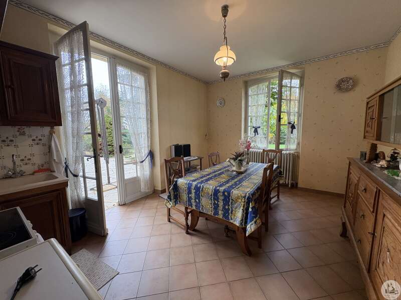 Maison en pierre sur sous sol construite en 1972 d'environ 180 m2 avec dépendance sur un terrain de 7009 m2. L'habitation se compose; Au rez de chaussée, d'une entrée, deux cuisines, un salon/salle à manger avec cheminée, quatre chambres, deux salles de bains et deux toilettes séparés. A l'étage, deux chambres mansardées et deux greniers. Au sous sol, une cuisine/buanderie, une chaufferie avec chaudière fioul, une cave, une pièce de stockage et un garage double. La dépendance est un hangar d'environ 300 m2 avec béton au sol, sanitaires et abri couvert. A l'extérieur plusieurs terrasses mènent à une cour avec parking et un parc arboré clos.