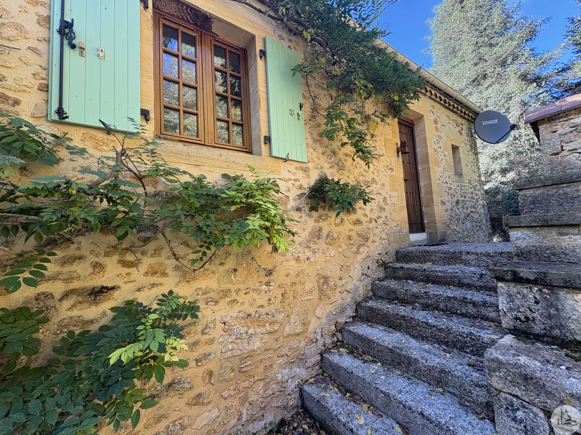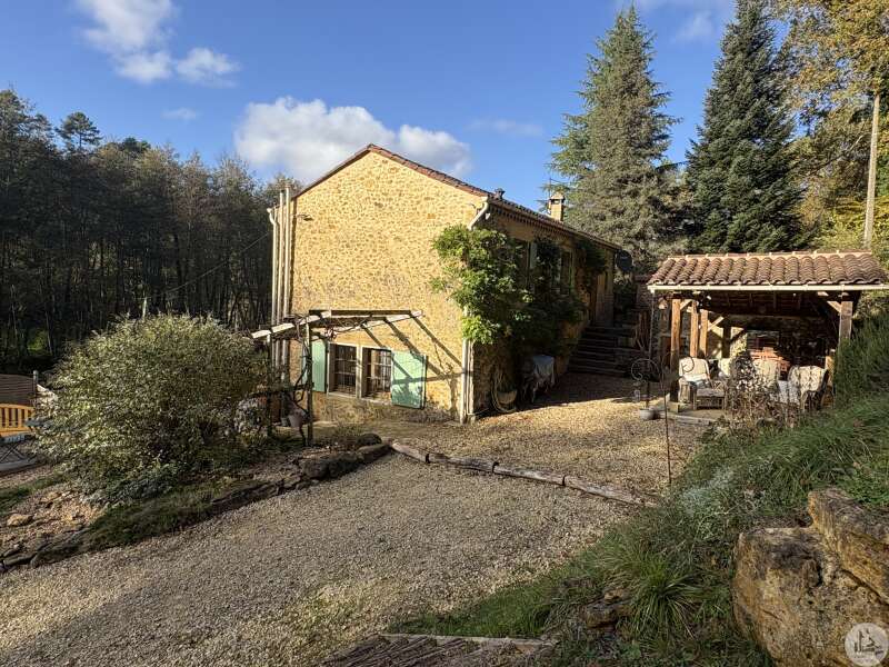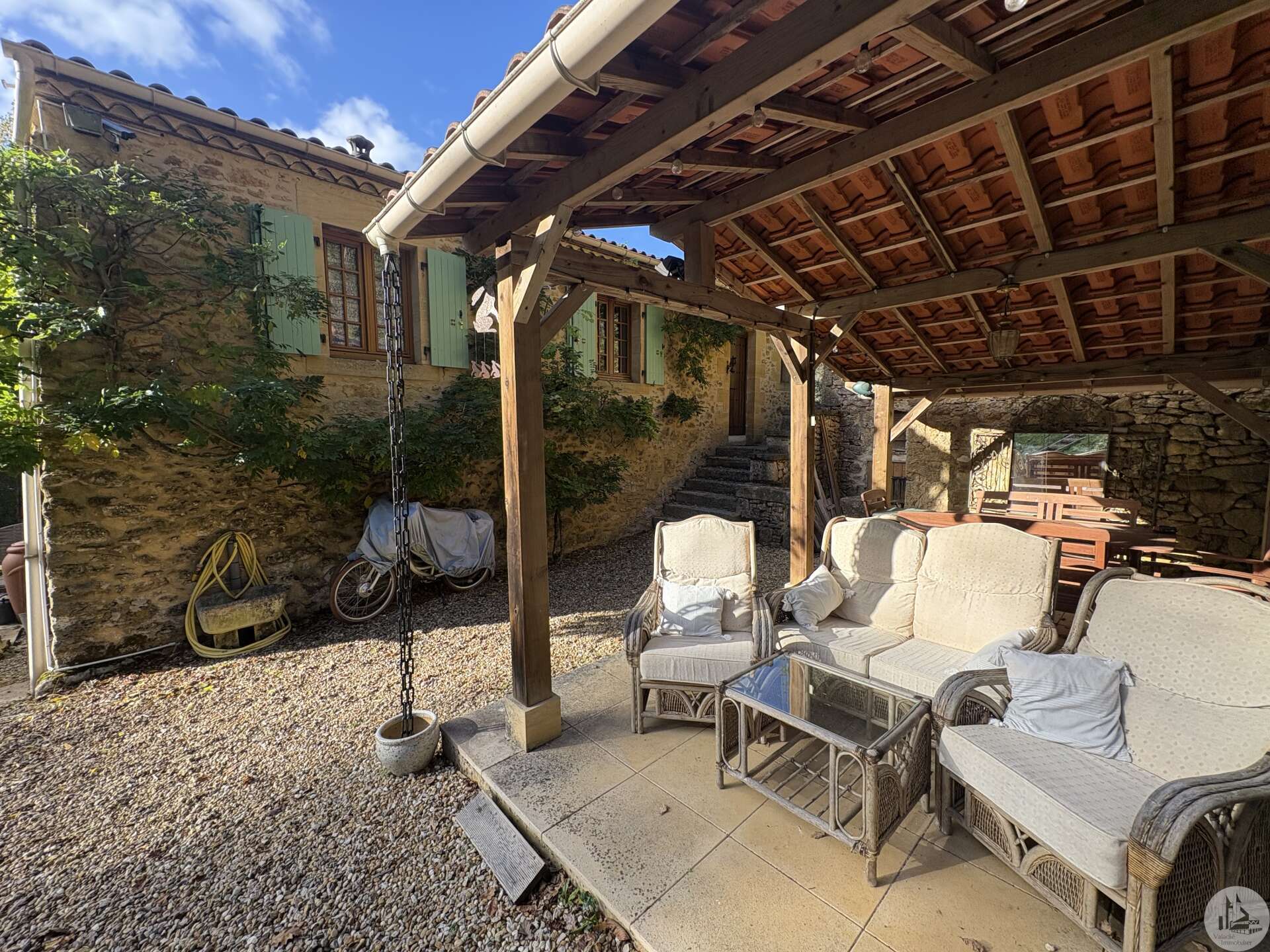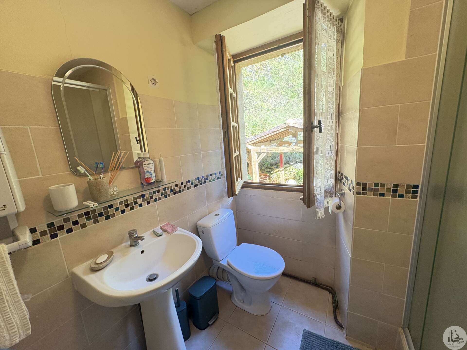 Maison en pierre de 86 m2 avec dépendances sur un terrain de 2429 m2. L'habitation se compose; Au rez de chaussée, d'une cuisine équipée/salle à manger et un salon avec poêle à bois. A l'étage, d'un palier avec deux chambres et deux salles d'eau chacune avec un toilette ainsi qu'un bureau. Les dépendances se composent, d'une cave en sous sol ainsi qu'un abri de jardin avec appentis et pièces de stockage. Le chauffage se fait par des radiateurs électriques. Les huisseries sont en double vitrage bois. A l'extérieur plusieurs terrasses donnent accès à un jardin arboré avec parking. Assainissement individuel conforme.