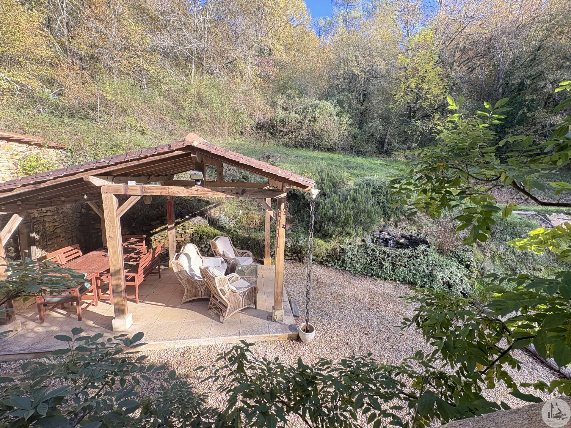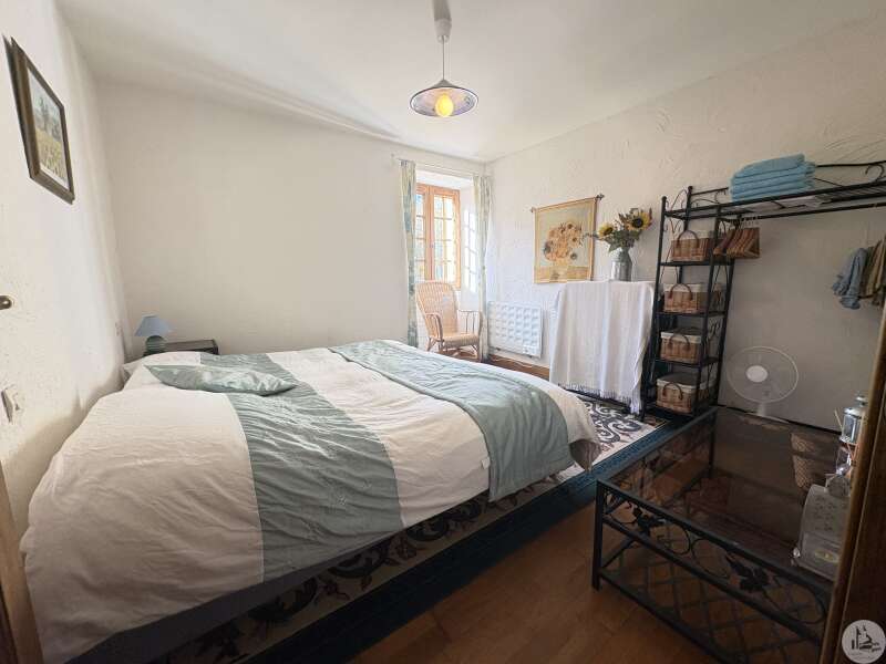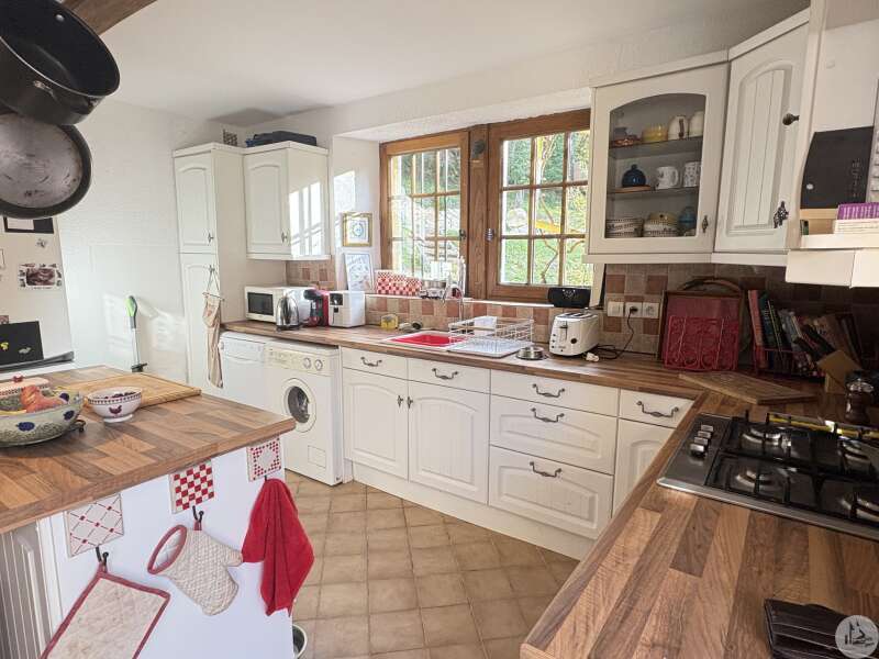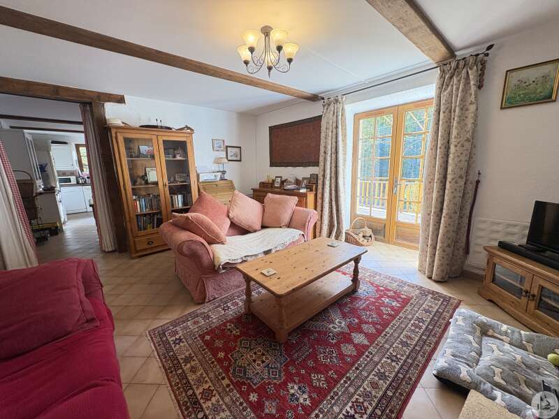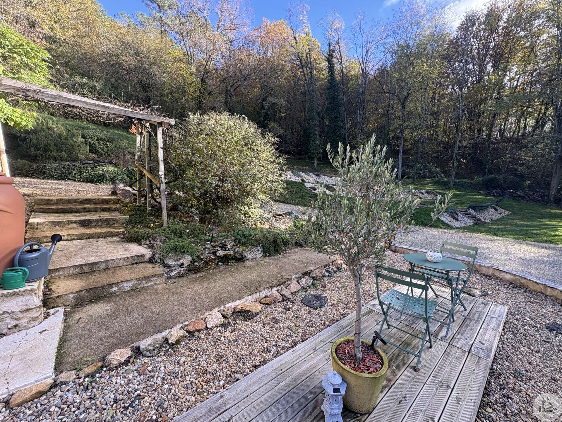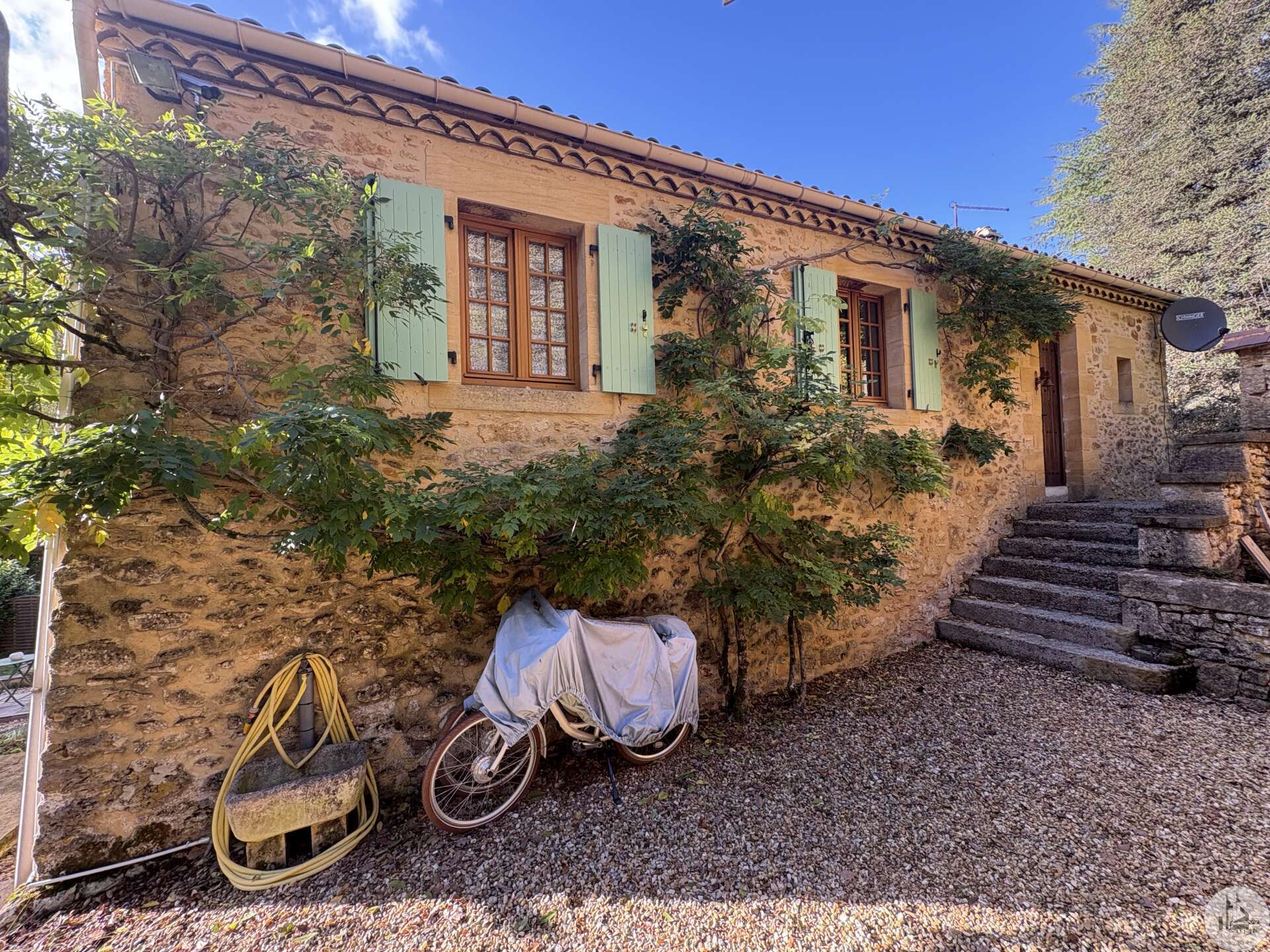 Maison en pierre de 86 m2 avec dépendances sur un terrain de 2429 m2. L'habitation se compose; Au rez de chaussée, d'une cuisine équipée/salle à manger et un salon avec poêle à bois. A l'étage, d'un palier avec deux chambres et deux salles d'eau chacune avec un toilette ainsi qu'un bureau. Les dépendances se composent, d'une cave en sous sol ainsi qu'un abri de jardin avec appentis et pièces de stockage. Le chauffage se fait par des radiateurs électriques. Les huisseries sont en double vitrage bois. A l'extérieur plusieurs terrasses donnent accès à un jardin arboré avec parking. Assainissement individuel conforme.