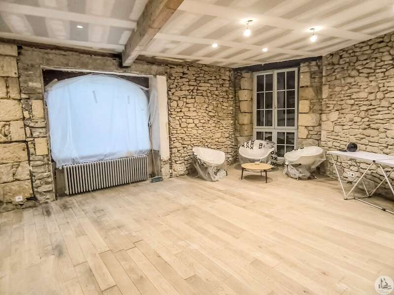 Maison en pierre composée en rez de rue, d'une grande pièce à vivre de 54 m² environ avec espace cuisine (à finir arrivées d'eau, évacuations et électricité prévues à cet effet), pièce buanderie/cellier de 5.95 m² A l'étage, pallier de 12.30 m², 2 chambres de 14 et 20 m² environ avec chacune leurs salles d'eau (à finir), wc. Au deuxième niveau, pallier de 3.22 m², 1 chambre de 15 m² environ, 1 salle d'eau de 7 m² (à finir - branchement machine à laver prévu), 1 bureau/dressing de 5.29 m². Rénovation réalisée en 2021 - chauffage au gaz de ville (chaudière de 2024) - menuiseries en double vitrage - Assainissement au tout à l'égout - VMC double flux - Toiture suivie et reprise en 2021.