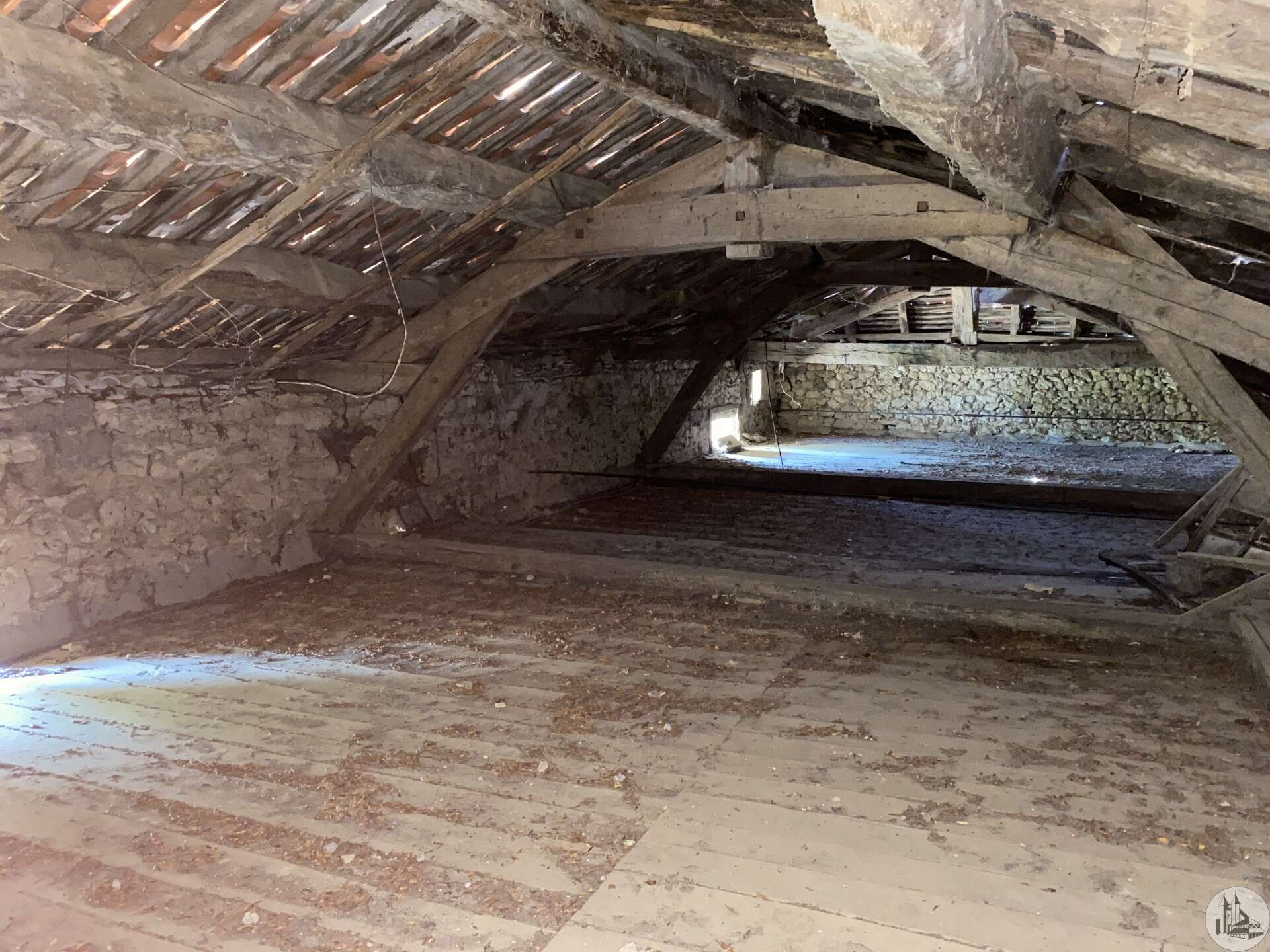 Une maison d'habitation en pierre à restaurer entièrement comprenant : - une entrée sur une cuisine de 30 m2 env. avec une ancienne cheminée, un évier, carrelage ancien au sol. - une chambre de 23,3 m2 env. plancher au sol à refaire - une chambre de 15,6 m2 env., plancher au sol. - une chambre de 17,2 m2 env. avec une porte d'accès à l'extérieur, une ancienne cheminée. Ces quatre pièces sont en enfilades. - Une cave aménageable de 32,8 m2 env. et une annexe aménageable derrière la cuisine de 18,8 m2 env. - Un grenier de 98 m2 env., plancher au sol, hauteur sous plafond de 1,6 m. Pas de chauffage. Pas d'assainissement. Menuiseries en bois avec du simple vitrage. Toiture à revoir. Eau et électricité. Dépendances: - un hangar en pierre ouvert sur l'avant de 57 m2 env., terre battue au sol. - Un séchoir à tabac de 120 m2 au sol env., terre battue au sol et bardage à revoir, charpente et tuiles en bon état d'entretien. - étables en pierre. N.B : la grange attenante à la maison (sur les photos) n'existe plus. Terrain de 3508 m2 tout autour.