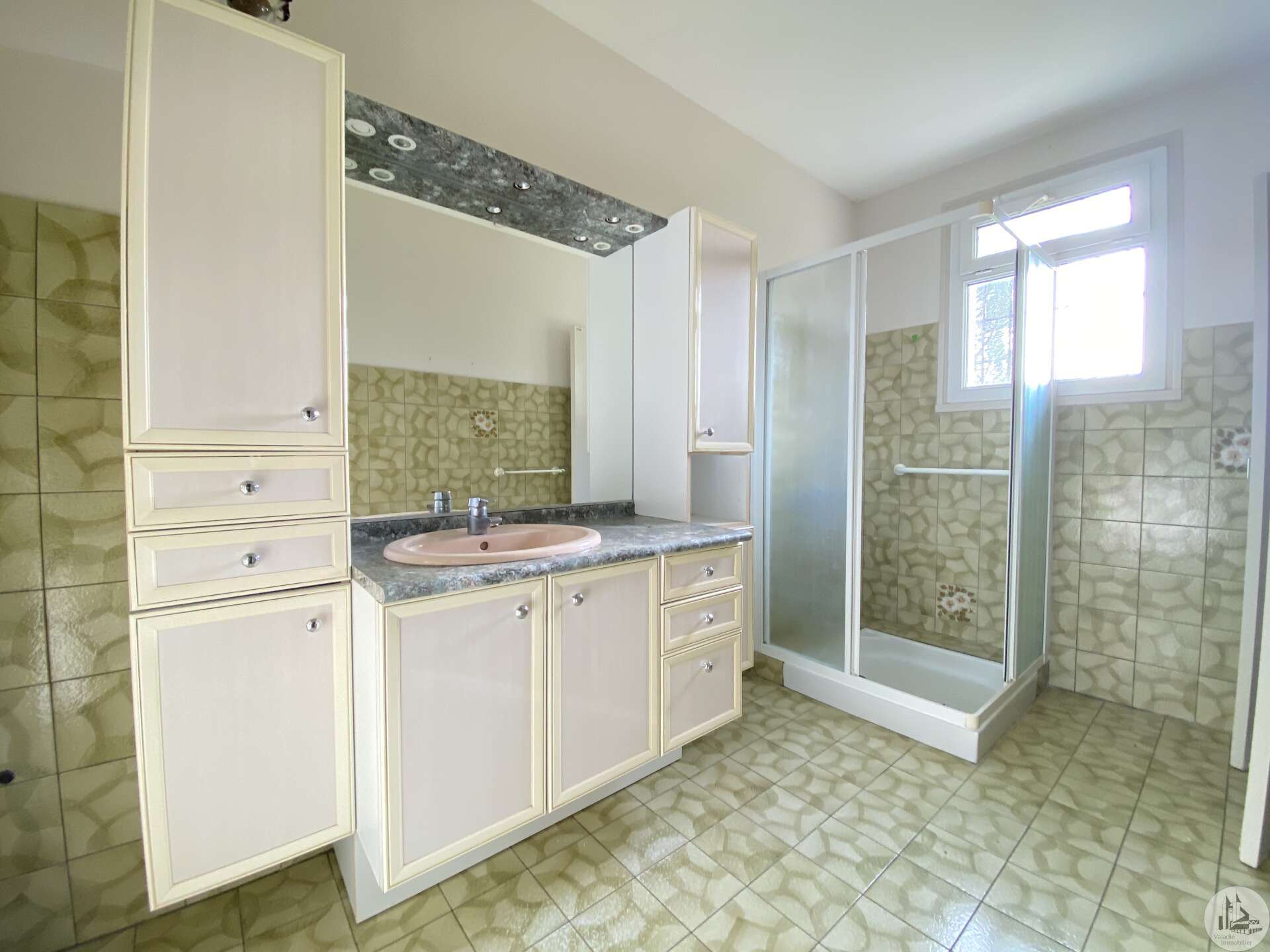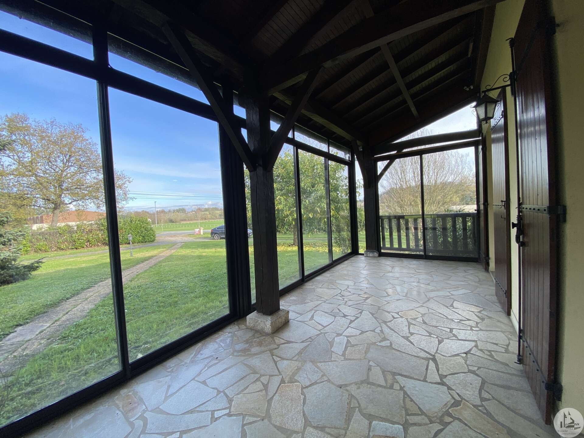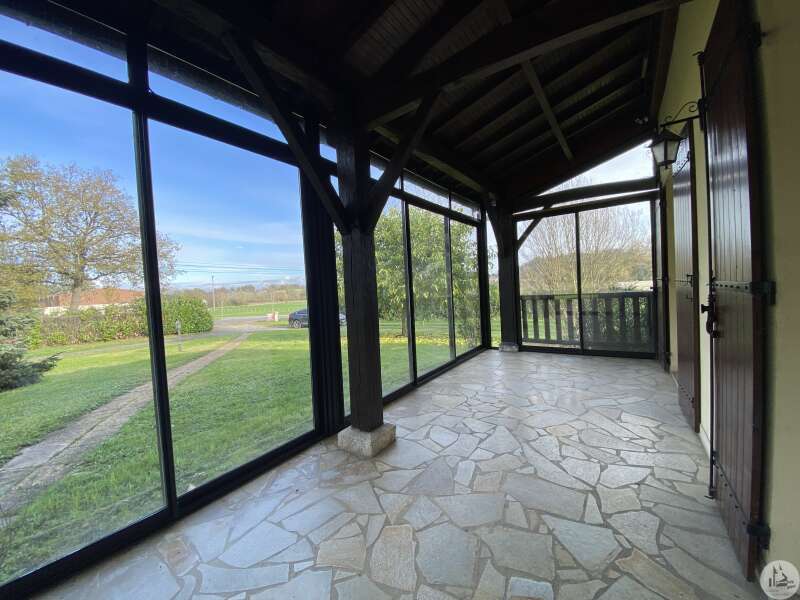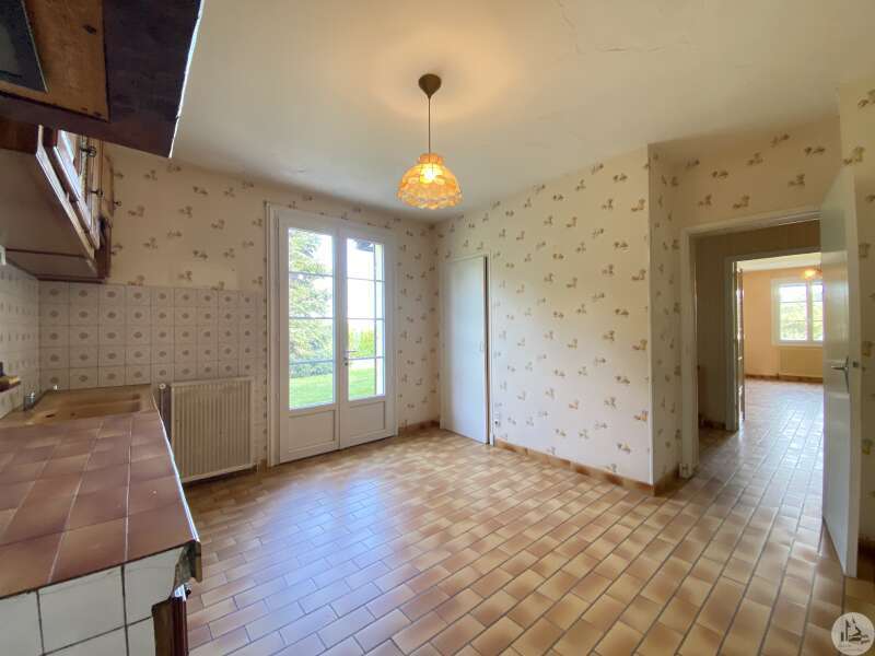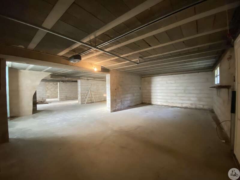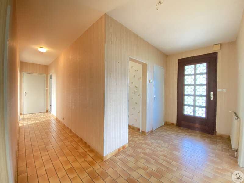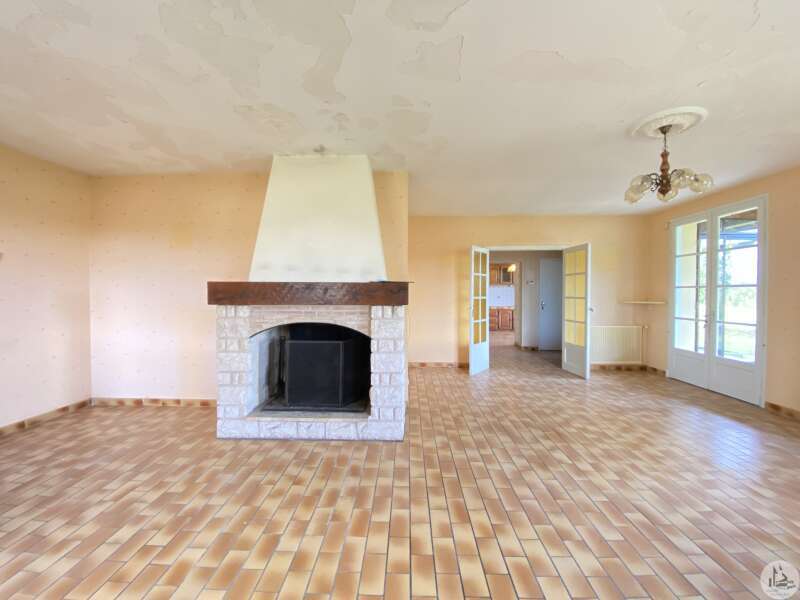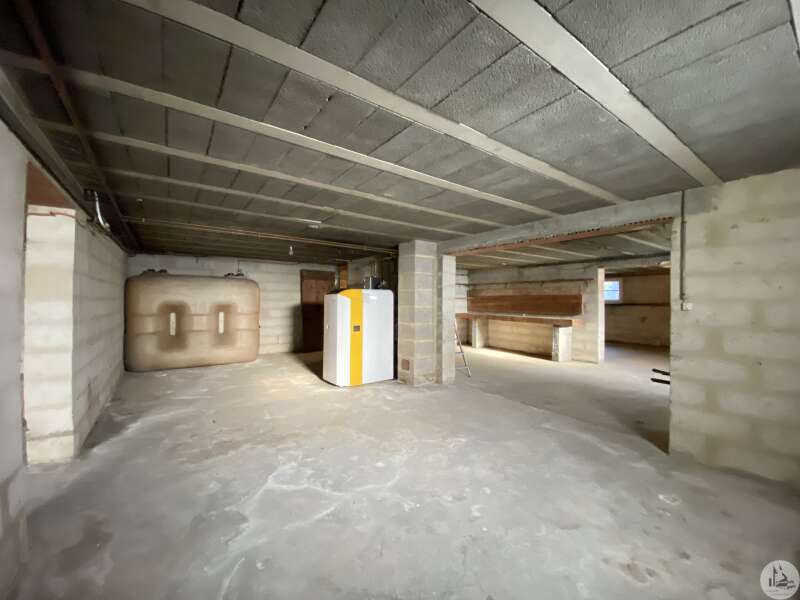 Maison traditionnelle construite sur sous-sol semi-enterré, offrant en rez-de-chaussée : entrée / couloir de distribution (8,5 et 6,5 m2) avec placards, cuisine aménagée (20,3 m2), salle à manger / salon avec cheminée (38,7 m2), 3 chambres (dont 2 avec placards) d'environ 14,1 ; 12,4 et 14 m2, salle d'eau avec lavabo et douche (6,3 m2), w.c. A l'avant : véranda de 16,5 m2 (baie en aluminium double vitrage. espace non équipé de radiateur) Chauffage central au fioul. Fenêtres en PVC double vitrage majoritairement (sauf les portes fenêtres du salon donnant dans la véranda et la porte d'entrée) Volets roulants électriques pour la plupart des ouvertures (sauf portes-fenêtres) Sous-sol sous toute la maison avec garage, buanderie, chaufferie et cave. Espace pour y créer des aménagements (fenêtres en bois simple vitrage) Terrain arboré avec puits (adduction pour la consommation)