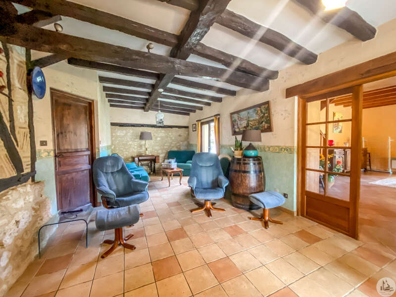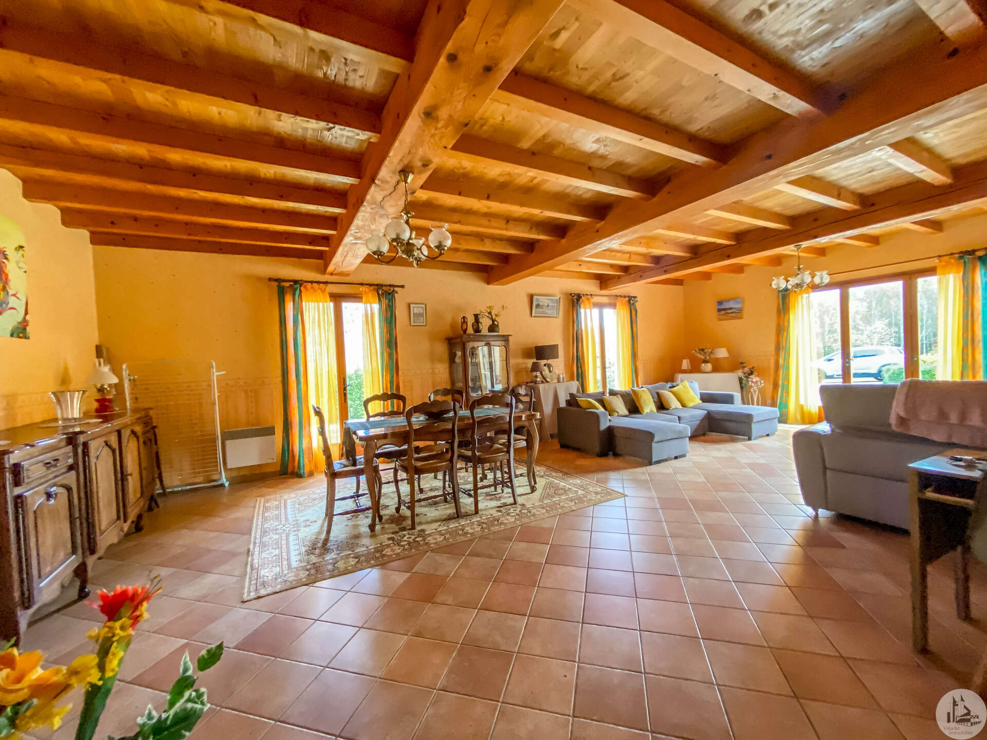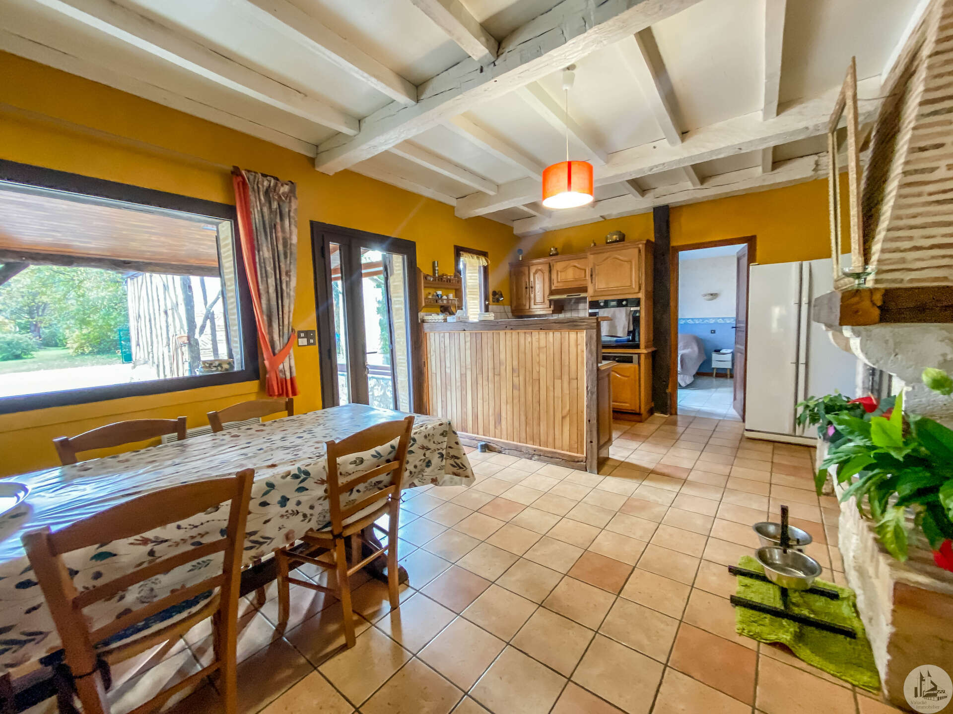 Maison d'une superficie de 190m2 qui se compose d'une terrasse couverte de 24m2 qui donne accès à une entrée sur cuisine de 24m2, un cellier de 14m2 Au rez de chaussée se situe trois chambres de 11m2, 10m2 et 9m2, une salle d'eau 6m2 plus wc indépendant. A l'étage un couloir de distribution qui dessert Trois chambres de 13m2, 12m2 et 10m2, une salle d'eau de 7m2 environ. A l'extérieur pigeonnier en pierre qui sert d'atelier. Un hangar de 30m2 environ, un garage de 20m2 environ, un abri voiture de 90m2. Une piscine de 11X5 plus un pool house avec douche et wc. Terrain clôturé de 31495m2 avec lac.