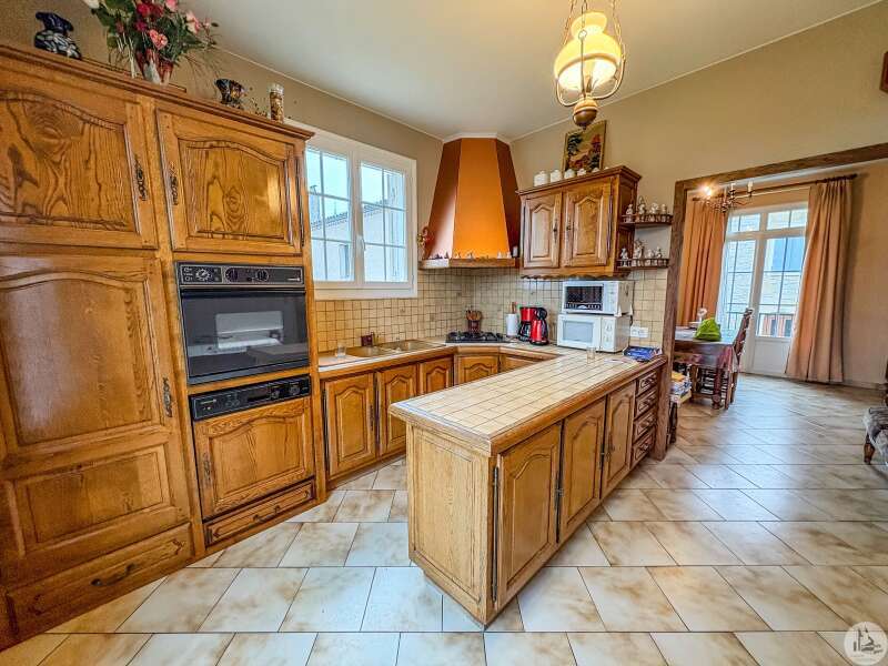 Maison de village indépendante construction de 1970 sur son jardin clos. La maison est construite en pierre jusqu'au 1er étage et ensuite en parpaing. Au rez de chaussée une entrée sur un hall qui dessert le garage, une dépendance chaufferie. Un bel escalier en bois dessert l'étage .Hall de distribution avec une cuisine entièrement équipée de placards et aménagée d'un frigo, lave vaisselle, hotte aspirante, four, plaque de cuisson avec la salle à manger surface de 31 m2. un wc, une salle de bain , deux chambres de 15 m2 chacune.
