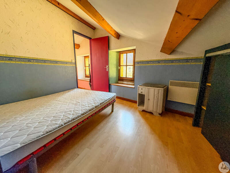 Maison de village en pierre de 54 m2 composée au rez de chaussée d'une pièce de 28 m2 avec cuisine ouverte sur salon, à l'étage deux chambres de 12 et 9 m2 avec salle d'eau.