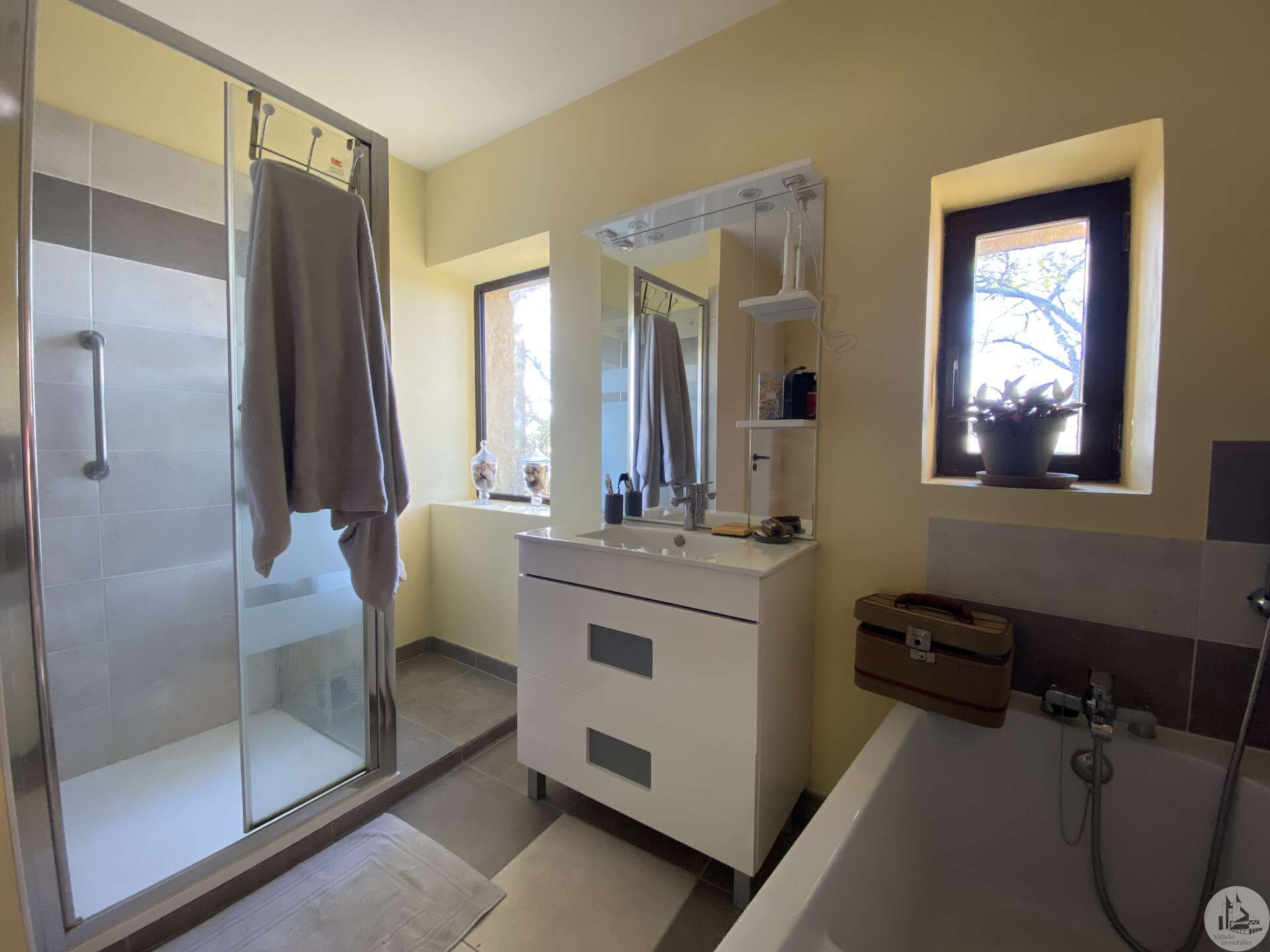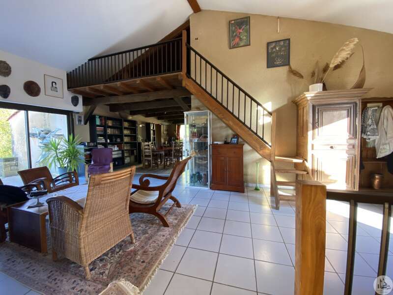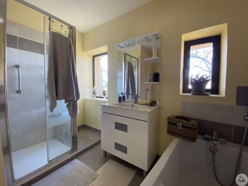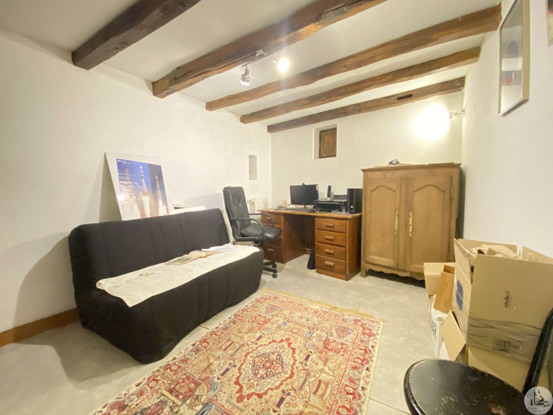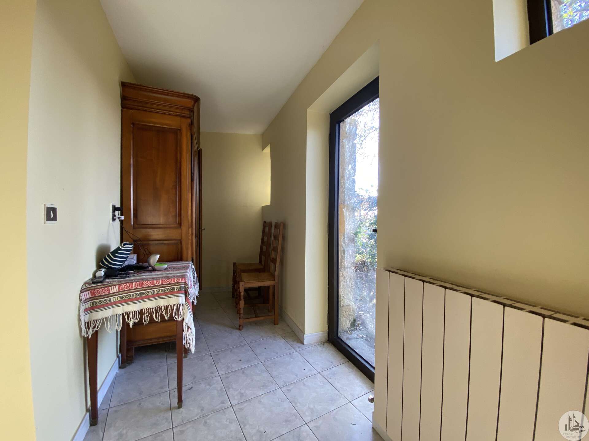 Confortable maison en pierre rénovée comprenant au rez-de-chaussée : salon/séjour (51,8 m2) avec cheminée et accès sur terrasse / jardin à l'arrière, cuisine aménagée (11,2 m2), 2 chambres (17 et 14,4 m2), salle de bains - 7,4 m2 - (avec vasque, baignoire et douche), toilettes. En rez-de-jardin (accessible par escalier intérieur depuis le séjour ou depuis le jardin) : couloir (19 m2), une chambre (10,2 m2), un bureau (11,2 m2), une buanderie (4,15 m2), une salle d'eau - 3,9 m2 - (lavabo, douche et w.c), placard (3,2 m2), chaufferie (11 m2), cave. L'aménagement des 2 niveaux pourrait permettre de rendre indépendant le rez-de-jardin sans difficulté. Chauffage par pompe à chaleur alimentant un plancher chauffant au rez-de-chaussée et des radiateurs à l'étage. Menuiseries en double vitrage aluminium. Assainissement collectif. Local à usage de rangement (en sous-sol) Jardin arboré et bordé de haies avec un puits.