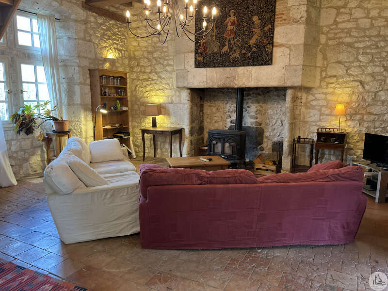 --EN EXCLUSIVITE-- Magnifique propriété en pierre datant du 17ème siècle, offrant d'impressionnantes pièces de réception, une magnifique grange en pierre, 4- 5 chambres. Parc. Niché dans un petit hameau de trois propriétés et au calme. Bénéficiant de vues sur la campagne environnante, cette spacieuse maison historique est située à 5 minutes des commerces et de la bastide médiévale de Castillonnés. Elle offre Env 2 hectares de jardins matures, d'une terrasse couverte, d'espaces de détente, d'une magnifique grange en pierre des dépendances et une belle piscine. La maison offre : Entrée par la terrasse couverte. Salon spacieux avec cuisine ouverte et équipée de 54m2, poêle à bois dans une superbe cheminée en pierre, poutres apparentes et sol carrelé. Sol et terre cuite et bois. Pierres et poutres apparentes; Porte vers l 'extérieur et escalier en pierre descent au jardin. Pierres et poutres apparentes. Escalier en bois vers le 1 er étage Chambre principale de plan pied de 20m2 sol en bois avec salle d'eau ensuite, douche italienne, vasque, sèche serviette et WC. Sol en pierre. Wc des invité avec lave-mains. Un magnifique salon majestueux et baigné de lumière (65 m²), doté d’une superbe cheminée ornementale en pierre, de murs en pierre apparente, de poutres apparentes et d’un sol carrelé avec chauffage au sol. Portes fenêtres menant au jardin Escalier en bois menant au premier étage depuis le salon - cuisine -1 ere Etage- 3 chambres de 15 m2, 12m2 et 15 m2. ( 2 enfilade) Salle de douche avec douche, Wc et et lavabos. 5 eme petite chambre d'enfant ou espace bureau- dressing. Salle de bain familiale avec baignoire/ douche et WC. Grenier aménageable de 20 m2env - meme niveau que les chambres Cette propriété présente de nombreux éléments d'époque, des éviers en pierre, des cheminées et des pierres apparentes. - Informations techniques- Chauffage par pompe à chaleur - radiateurs. Chauffage au sol dans le grand salon Poêle à bois Diagnostic de performance énergétique (DPE) D Gas d'emission de serre : B Menuiserie en double vitrage. Alarme Internet - Fibre Taxe foncière 1493 euros par an. - Extérieur - Parc arbré de 1 ha 9823m2. - non clos Nichée dans un espace privé, la piscine au sel, une autre petite bassin pour enfants, le tout entourée d'une terrasse Coin repas couvert, WC et pool house. - Petit Etang et source. --Magnifique grange en pierre de plus de 400 m2, en bon état, idéale pour l'amateur de voitures classiques, salle de musique, stockage, réceptions... Ateliers. Chaufferie Pièce abritant le Spa/Jacuzzi Petite Cave à vin voûtée sous la maison La propriété se trouve dans l’un des secteurs les plus recherchés à proximité immédiate des bastides de Castillonnès (5 minutes) Eymet, Villeréal et du charmant cité médiéval d’Issigeac (10 minutes). Bergerac, en Dordogne, jolie ville au bord de la rivière, dispose d’une gare SNCF et d’un aéroport international proposant des vols low-cost vers l’Angleterre, les Pays-Bas et la Belgique, à moins de 25 minutes. La ville de Bordeaux, classée au patrimoine mondial de l’UNESCO,est accessible en moins de 2 heures (liaisons LGV vers Paris) tandis que Toulouse, autre grande et belle ville du Sud, se situe également à distance raisonnable.