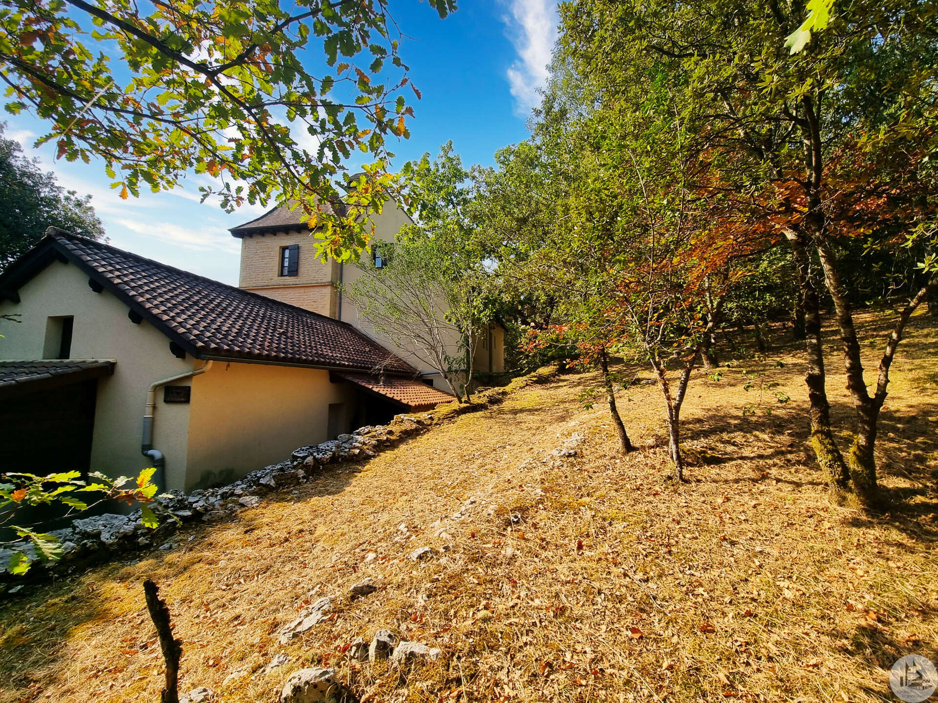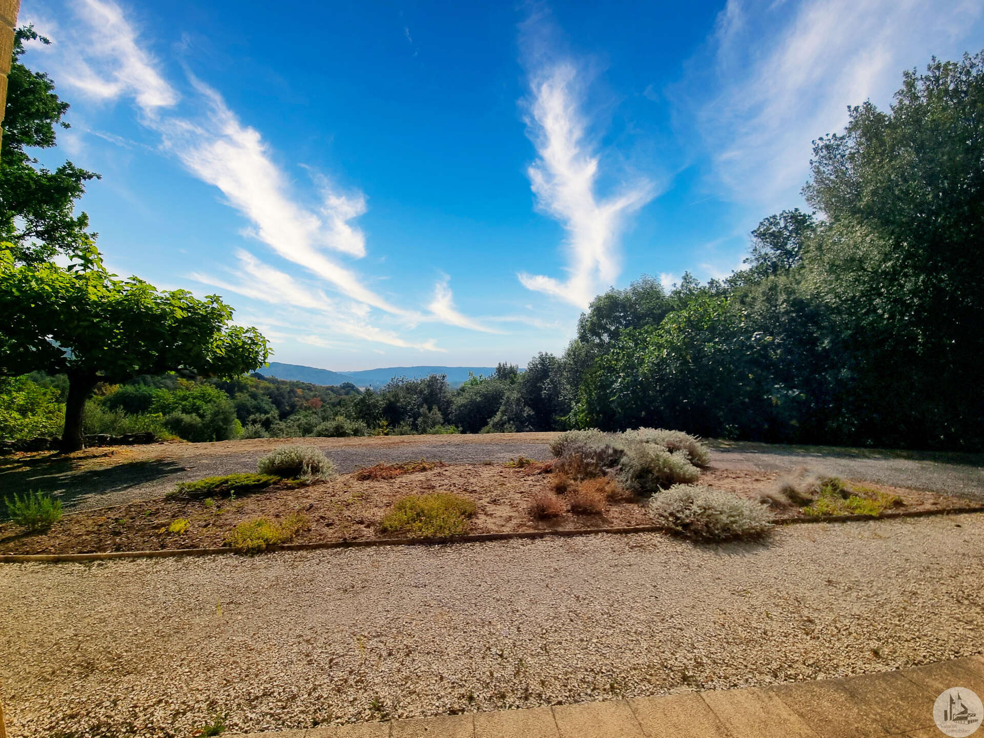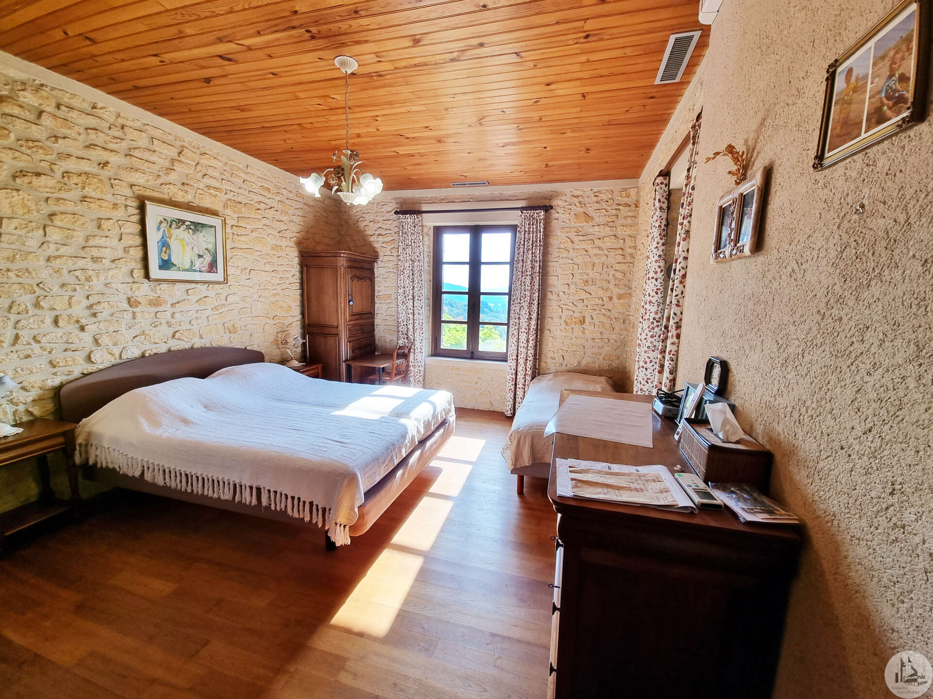 Maison principale en situation dominante de 1985 en pierre, composée au rez de jardin, d'une pièce à vivre de 43 m² environ avec cheminée insert, cuisine 12 m², cellier/buanderie de 9 m², salle d'eau avec wc de 3.54 m², cellier de rangement 6.59 m² et une cave. Au premier niveau, pallier, 3 chambres de 17.56 m², 15.59 m² et 17.18 m² (dont une avec climatisation), wc, salle de bain de 6.25 m². Au deuxième niveau, une grande pièce de 26 m² aménageable en salle de jeu ou bureau, 2 chambres de 16.14 m² et 16.05 m², dont une avec une kitchenette, wc. Garage de 17.06 m², et abris pour 2 voitures attenants à la maison principale. Annexe indépendante composée d'une pièce de 12 m² environ avec coin kitchenette t une salle d'eau avec wc de 4.73 m², garage de 22 m² environ avec mezzanine. Assainissement individuel pour la maison et l'annexe - chauffage par pompes à chaleur pour la maison principale.