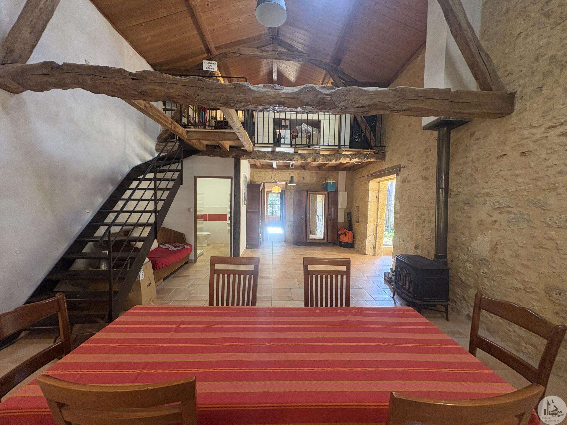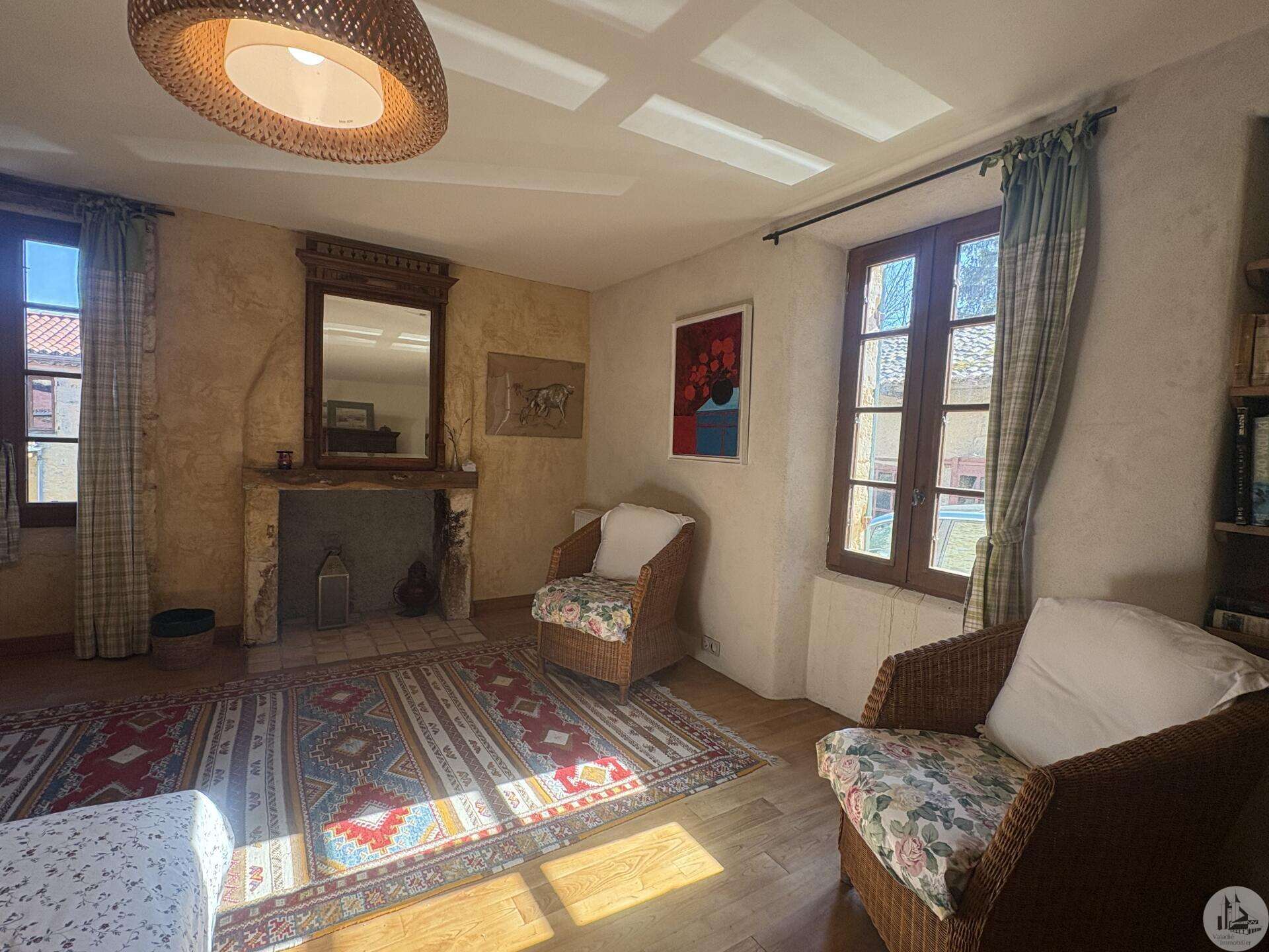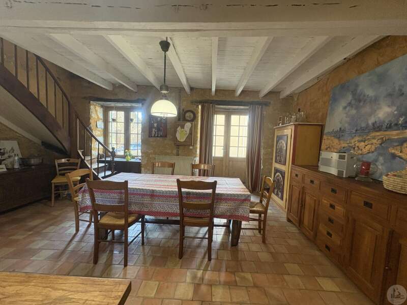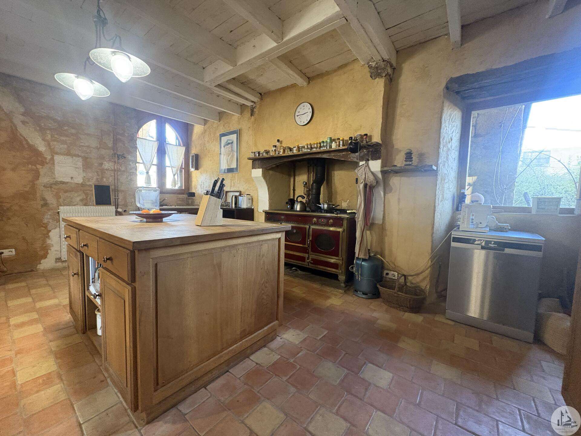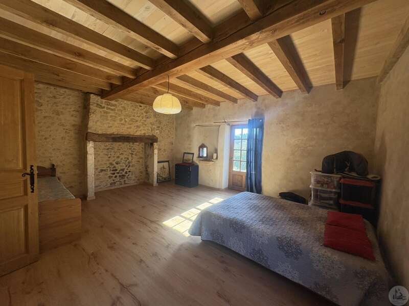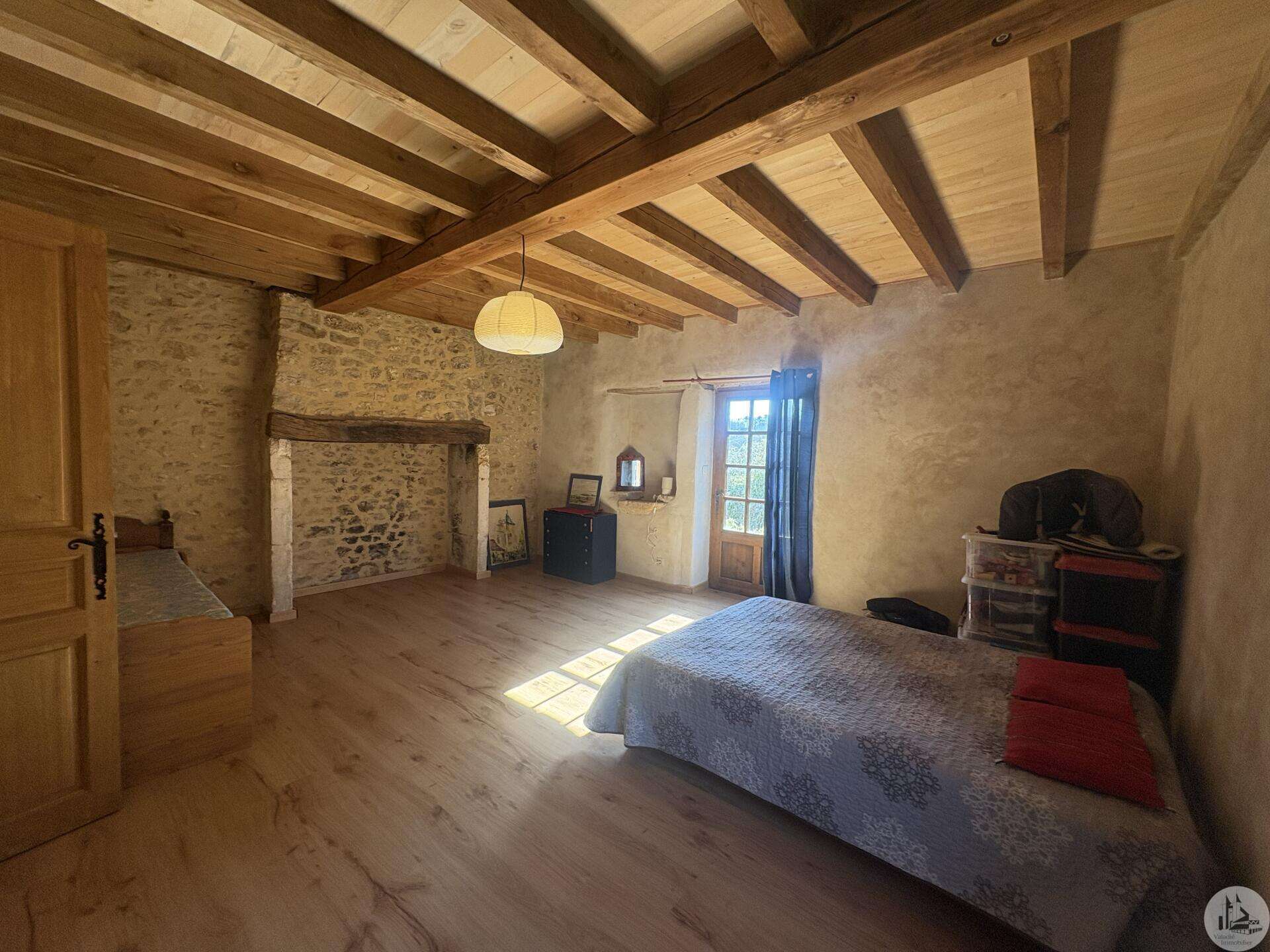 Ensemble immobilier en pierre composé de deux maisons pour un total d'environ 342 m2 sur une parcelle de 449 m2. La maison principale, d'environ 194 m2 se compose; Au rez de chaussée, d'une entrée traversante donnant sur la pièce principale avec cuisine/salle à manger équipée d’un piano, une chambre et une salle d'eau avec toilette. A l'étage, d'un salon, deux chambres, une salle d'eau avec toilette et un bureau. Au second, d'un grenier de la surface totale de la maison. Au sous sol, d'une cave, une pièce de stockage et une chaufferie avec chaudière à pellets. Les huisseries sont en double vitrage bois. La maison secondaire, d'environ 148 m2 se compose; Au rez de chaussée, d'une entrée avec véranda, une pièce principale salon/salle à manger avec plafonds cathédrales et poêle à bois, une cuisine semi ouverte ainsi qu'une suite avec salle d'eau et toilettes, et une chambre et une deuxième salle d'eau avec toilettes. A l'étage : un palier et une chambre mansardée. Chauffage électrique. Huisseries en métal et en bois double vitrage. A l'extérieur, un jardin de curé ou se trouve une terrasse abritée par un appentis et d'anciennes porcheries transformées en pièces de stockage. Vente possible seulement à partir de Décembre 2026.