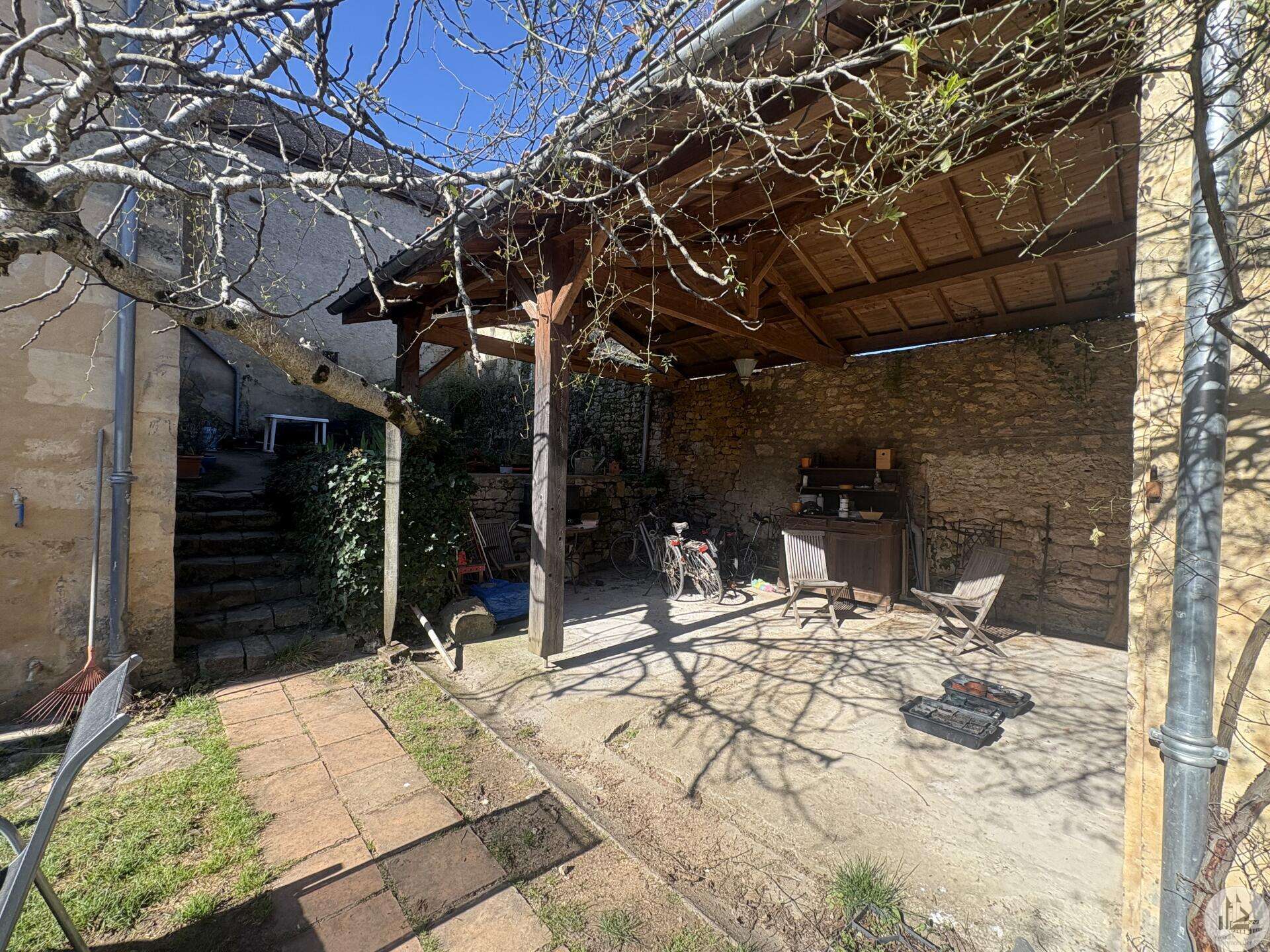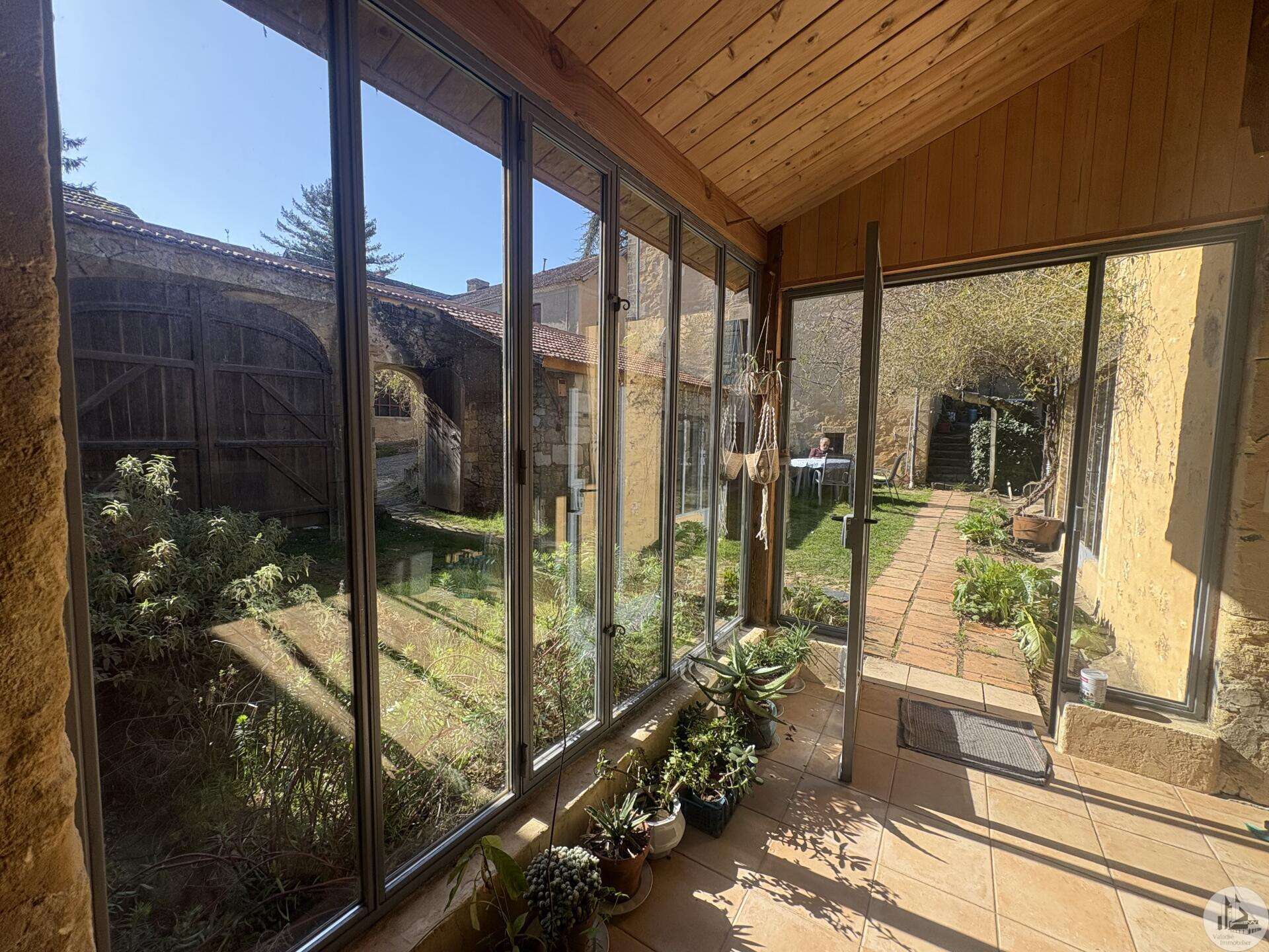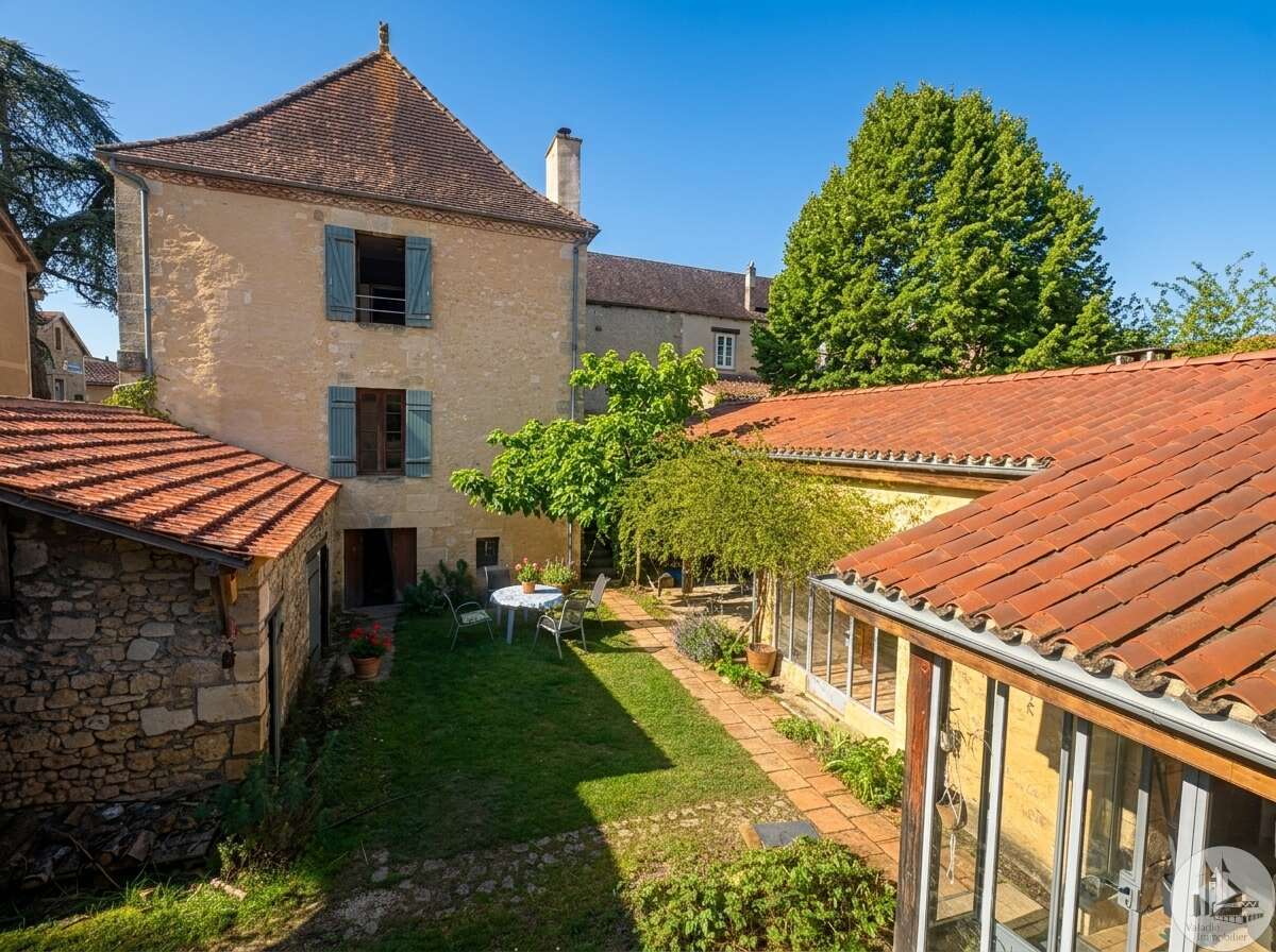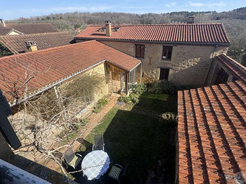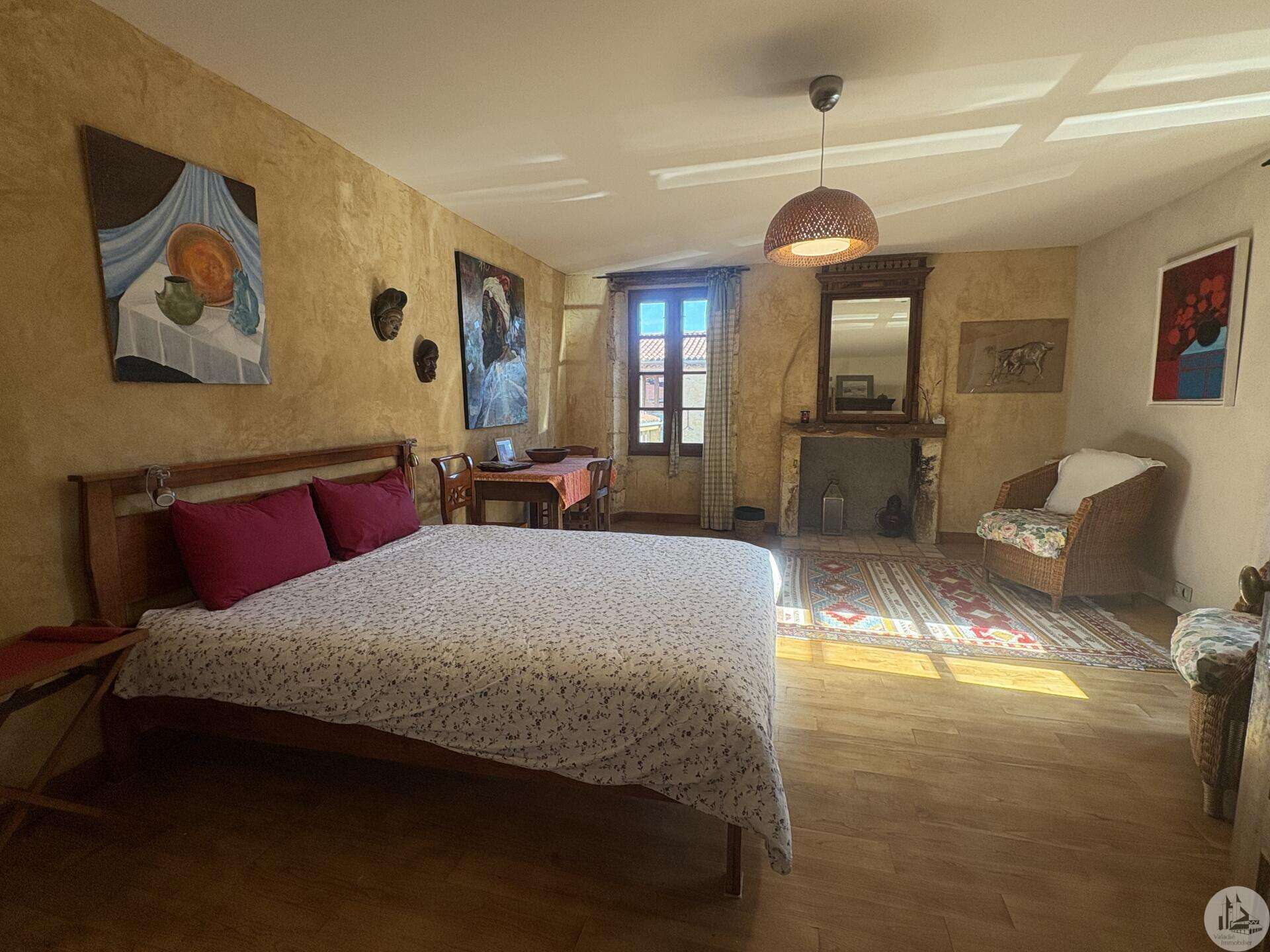 Ensemble immobilier en pierre composé de deux maisons pour un total d'environ 342 m2 sur une parcelle de 449 m2. La maison principale, d'environ 194 m2 se compose; Au rez de chaussée, d'une entrée traversante donnant sur la pièce principale avec cuisine/salle à manger équipée d’un piano, une chambre et une salle d'eau avec toilette. A l'étage, d'un salon, deux chambres, une salle d'eau avec toilette et un bureau. Au second, d'un grenier de la surface totale de la maison. Au sous sol, d'une cave, une pièce de stockage et une chaufferie avec chaudière à pellets. Les huisseries sont en double vitrage bois. La maison secondaire, d'environ 148 m2 se compose; Au rez de chaussée, d'une entrée avec véranda, une pièce principale salon/salle à manger avec plafonds cathédrales et poêle à bois, une cuisine semi ouverte ainsi qu'une suite avec salle d'eau et toilettes, et une chambre et une deuxième salle d'eau avec toilettes. A l'étage : un palier et une chambre mansardée. Chauffage électrique. Huisseries en métal et en bois double vitrage. A l'extérieur, un jardin de curé ou se trouve une terrasse abritée par un appentis et d'anciennes porcheries transformées en pièces de stockage. Vente possible seulement à partir de Décembre 2026.