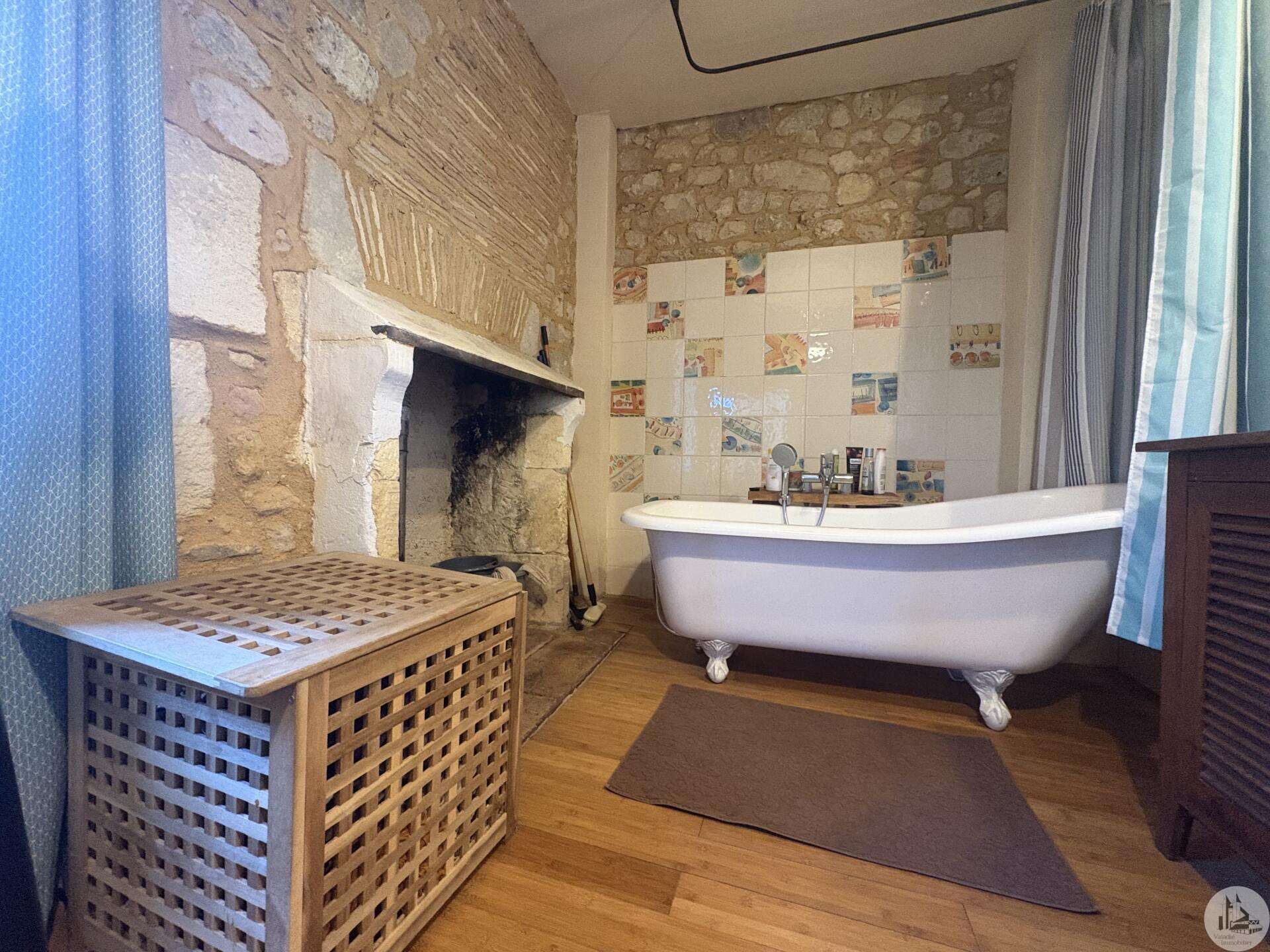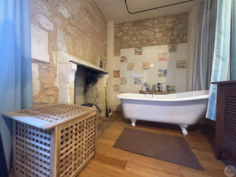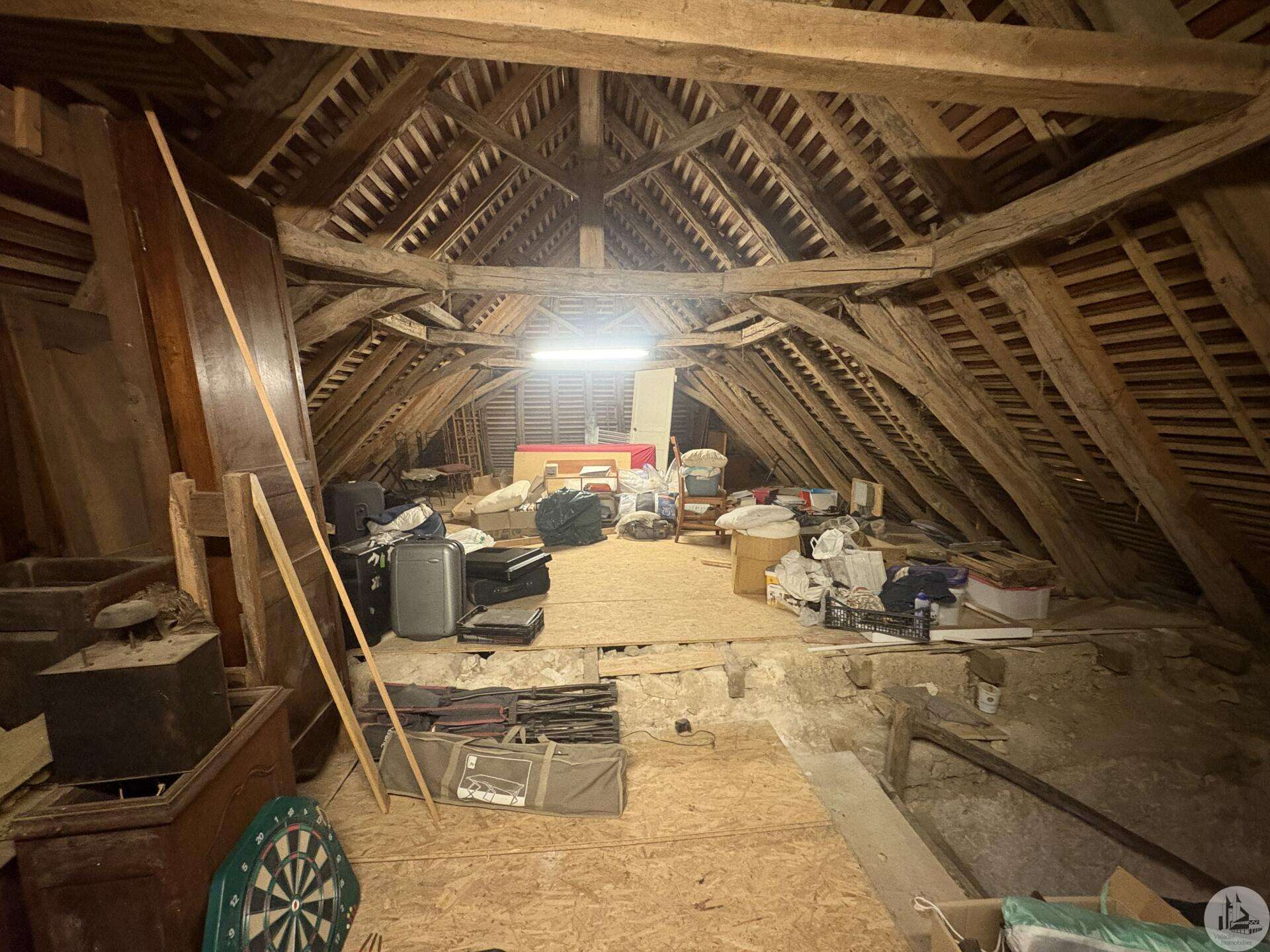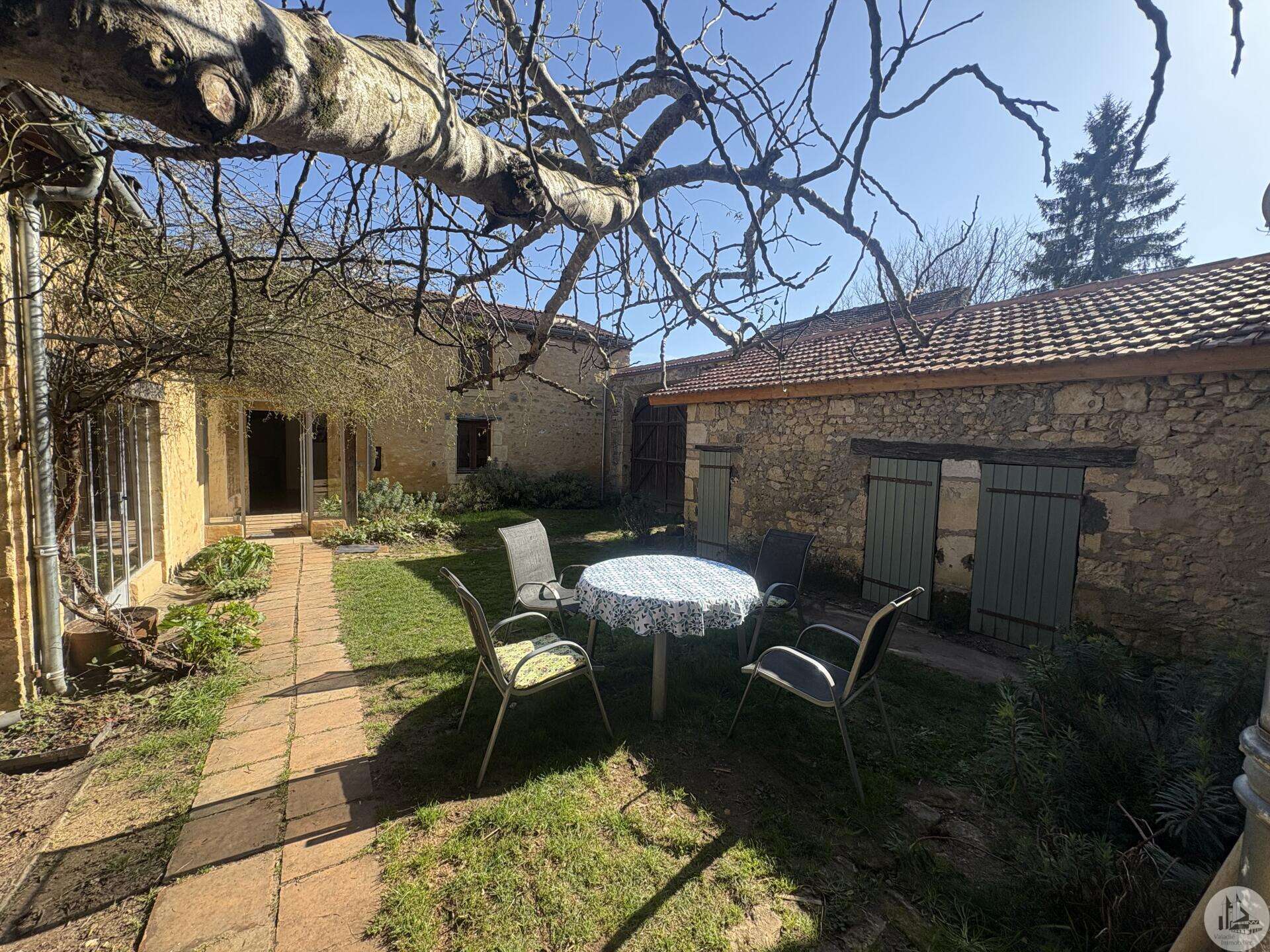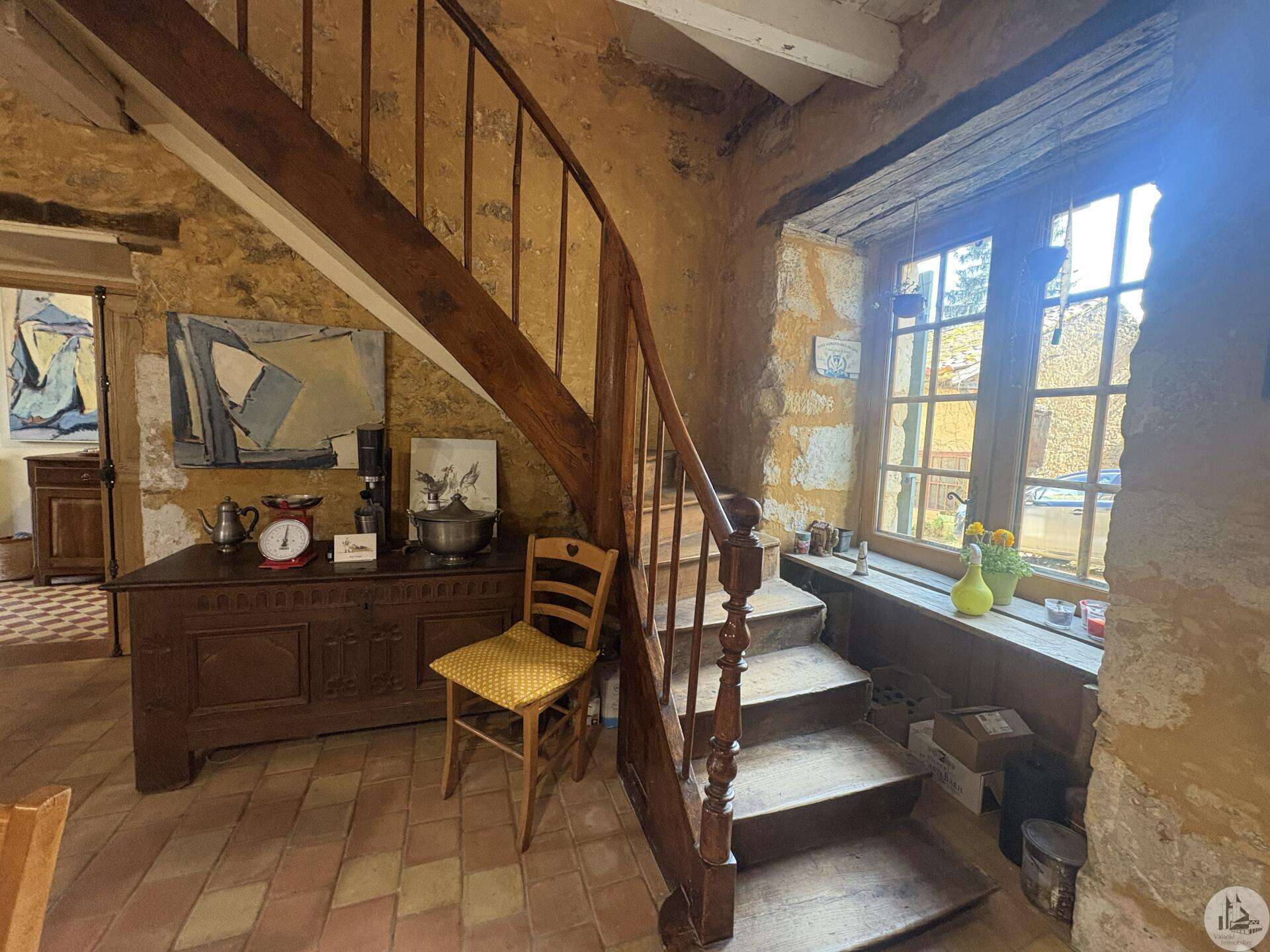 Ensemble immobilier en pierre composé de deux maisons pour un total d'environ 342 m2 sur une parcelle de 449 m2. La maison principale, d'environ 194 m2 se compose; Au rez de chaussée, d'une entrée traversante donnant sur la pièce principale avec cuisine/salle à manger équipée d’un piano, une chambre et une salle d'eau avec toilette. A l'étage, d'un salon, deux chambres, une salle d'eau avec toilette et un bureau. Au second, d'un grenier de la surface totale de la maison. Au sous sol, d'une cave, une pièce de stockage et une chaufferie avec chaudière à pellets. Les huisseries sont en double vitrage bois. La maison secondaire, d'environ 148 m2 se compose; Au rez de chaussée, d'une entrée avec véranda, une pièce principale salon/salle à manger avec plafonds cathédrales et poêle à bois, une cuisine semi ouverte ainsi qu'une suite avec salle d'eau et toilettes, et une chambre et une deuxième salle d'eau avec toilettes. A l'étage : un palier et une chambre mansardée. Chauffage électrique. Huisseries en métal et en bois double vitrage. A l'extérieur, un jardin de curé ou se trouve une terrasse abritée par un appentis et d'anciennes porcheries transformées en pièces de stockage. Vente possible seulement à partir de Décembre 2026.