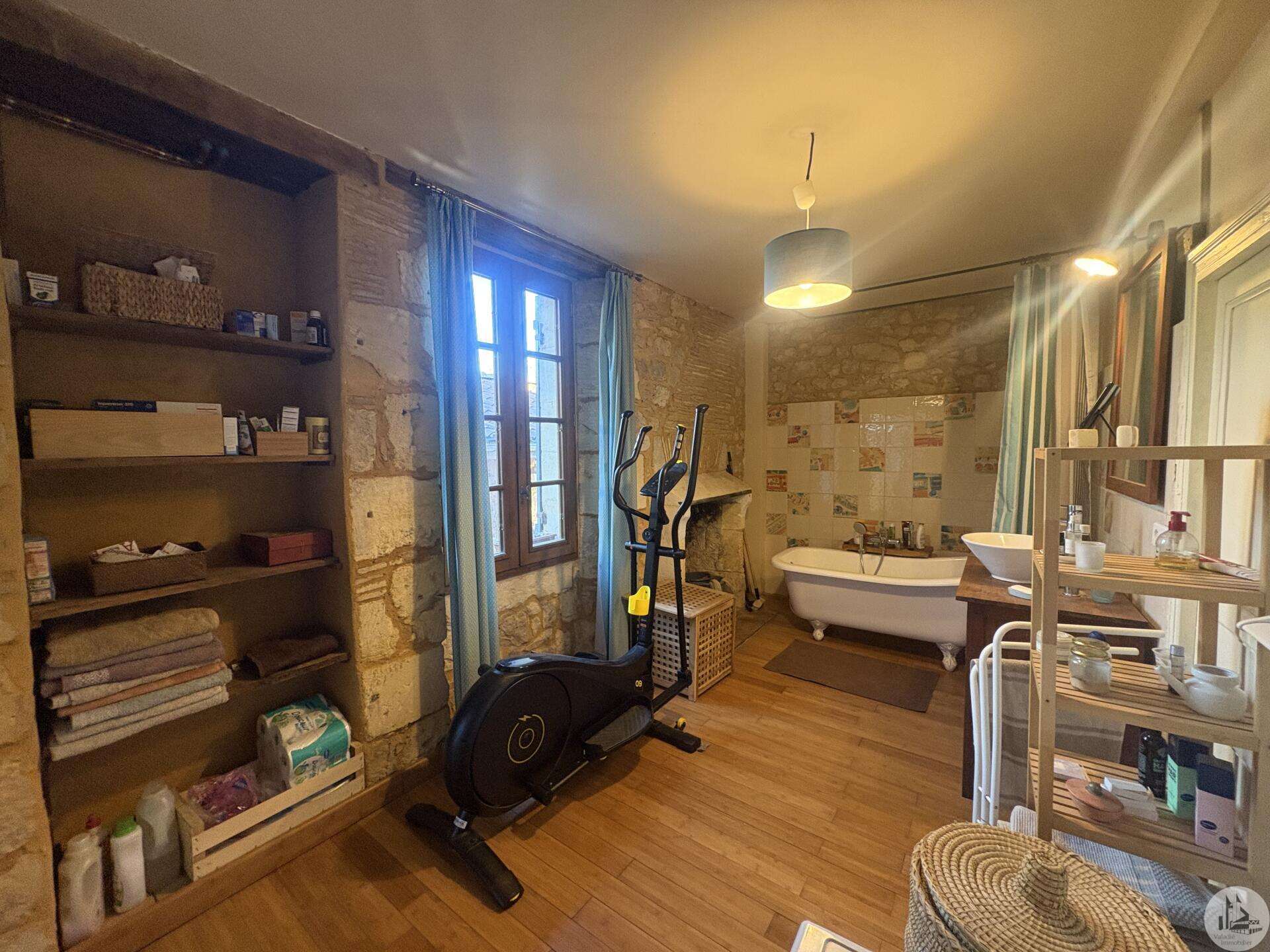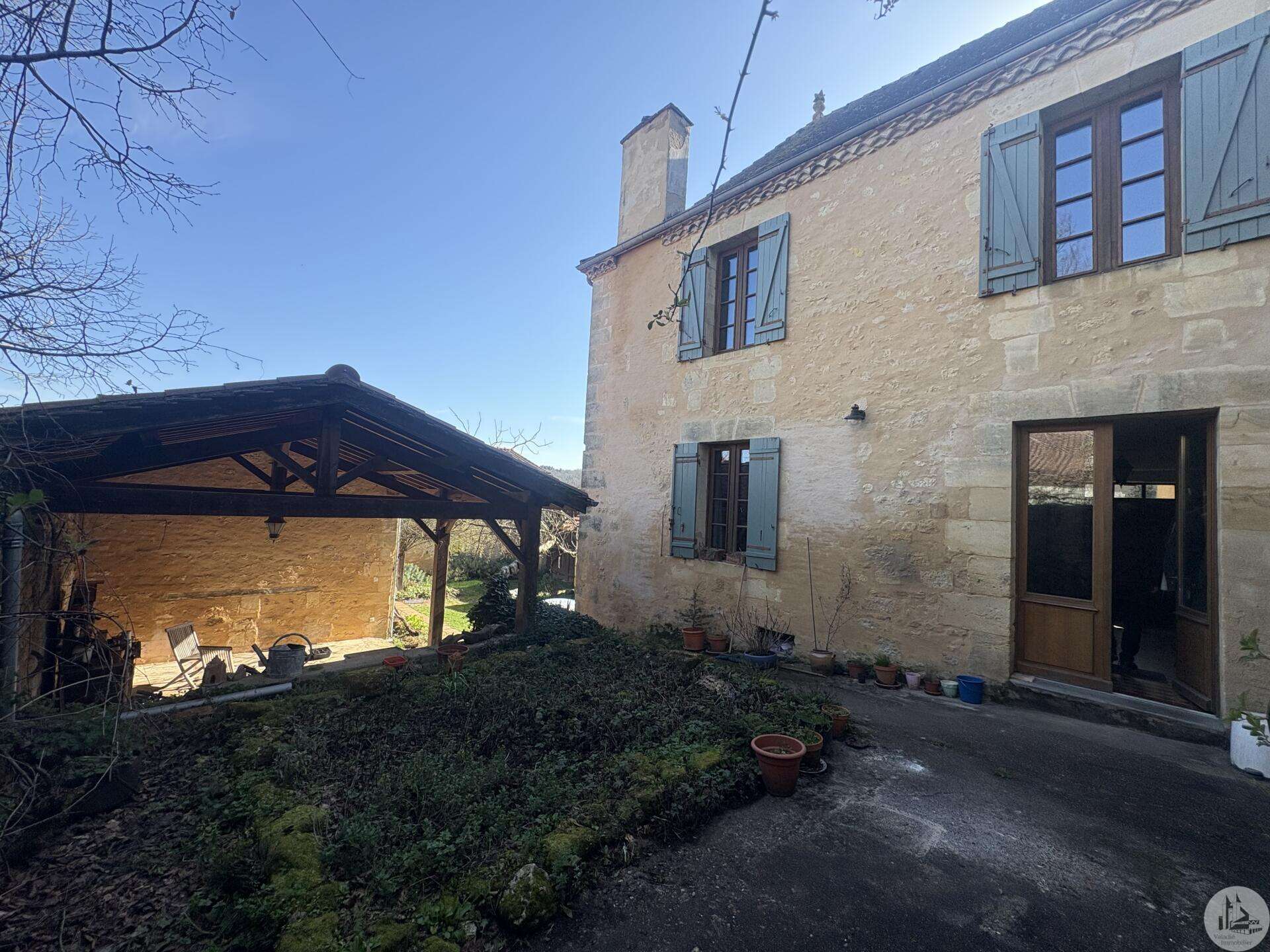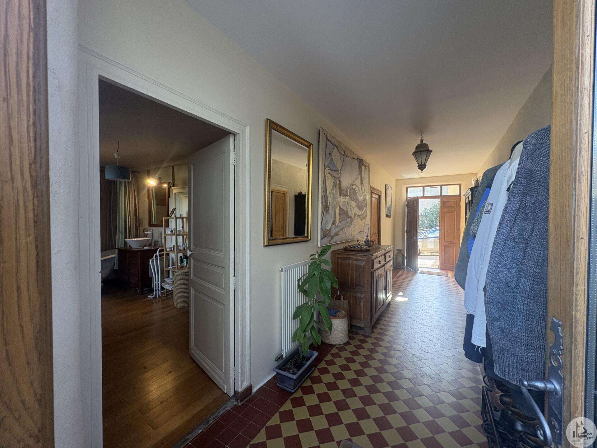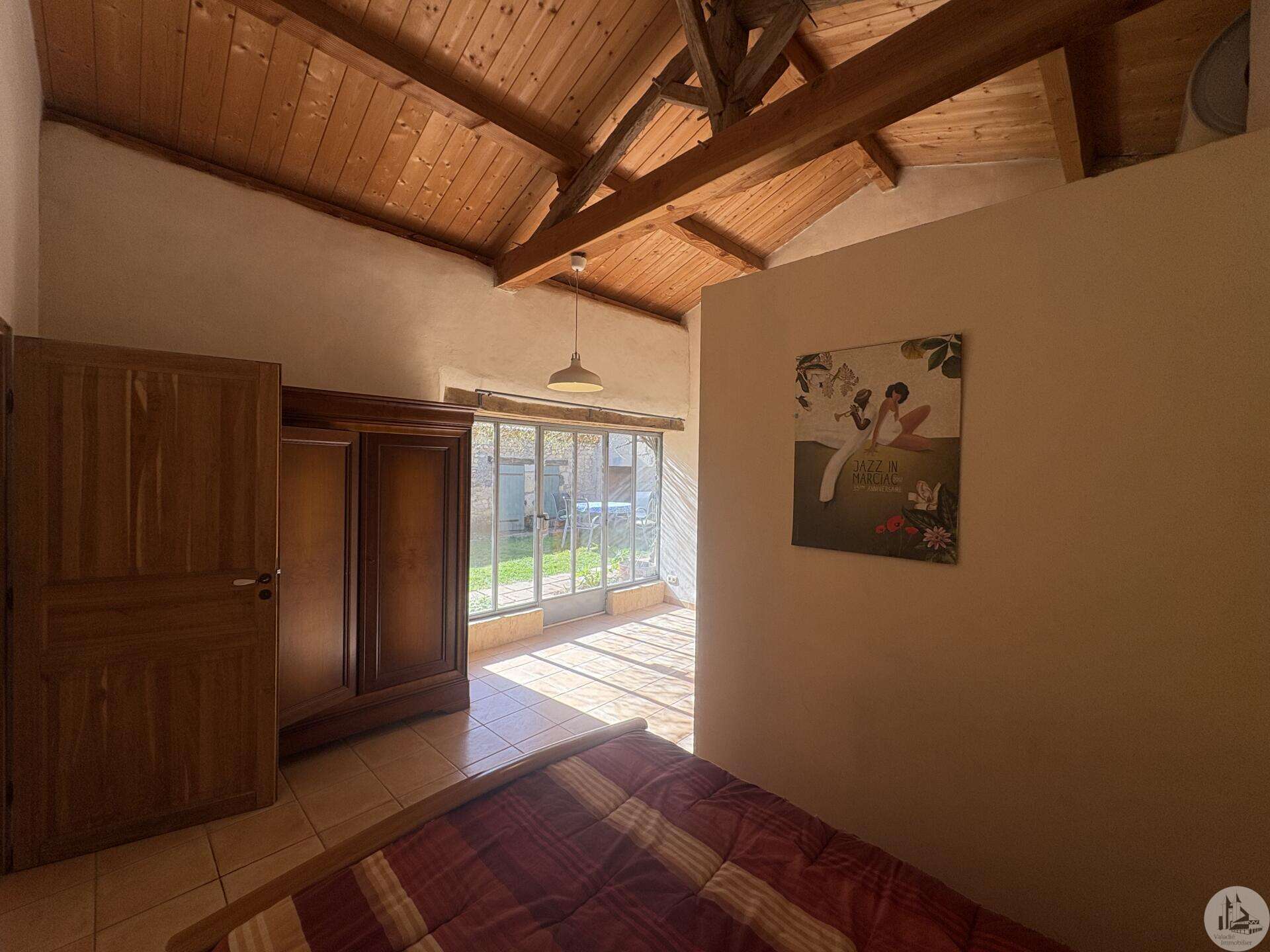 Ensemble immobilier en pierre composé de deux maisons pour un total d'environ 342 m2 sur une parcelle de 449 m2. La maison principale, d'environ 194 m2 se compose; Au rez de chaussée, d'une entrée traversante donnant sur la pièce principale avec cuisine/salle à manger équipée d’un piano, une chambre et une salle d'eau avec toilette. A l'étage, d'un salon, deux chambres, une salle d'eau avec toilette et un bureau. Au second, d'un grenier de la surface totale de la maison. Au sous sol, d'une cave, une pièce de stockage et une chaufferie avec chaudière à pellets. Les huisseries sont en double vitrage bois. La maison secondaire, d'environ 148 m2 se compose; Au rez de chaussée, d'une entrée avec véranda, une pièce principale salon/salle à manger avec plafonds cathédrales et poêle à bois, une cuisine semi ouverte ainsi qu'une suite avec salle d'eau et toilettes, et une chambre et une deuxième salle d'eau avec toilettes. A l'étage : un palier et une chambre mansardée. Chauffage électrique. Huisseries en métal et en bois double vitrage. A l'extérieur, un jardin de curé ou se trouve une terrasse abritée par un appentis et d'anciennes porcheries transformées en pièces de stockage. Vente possible seulement à partir de Décembre 2026.