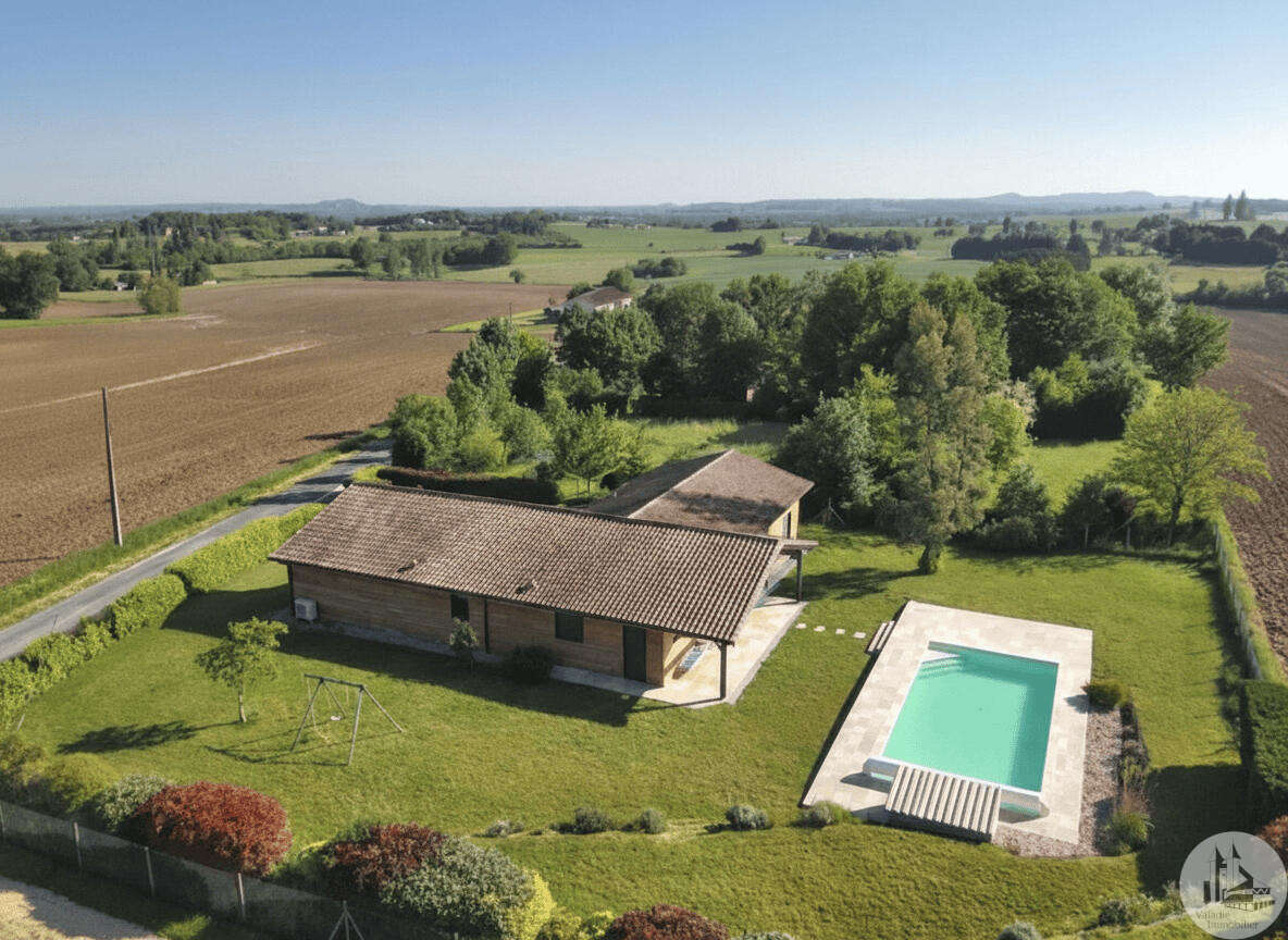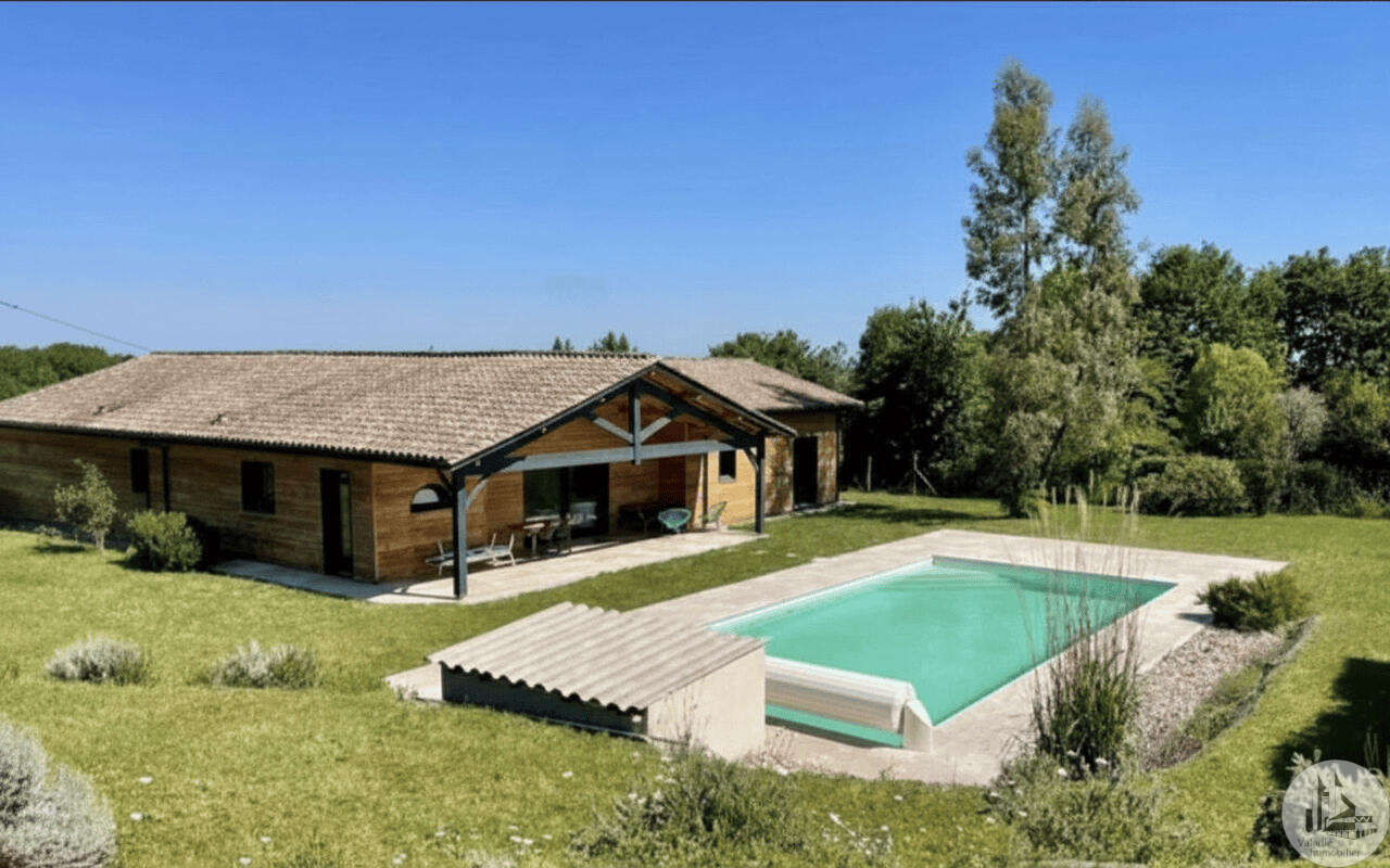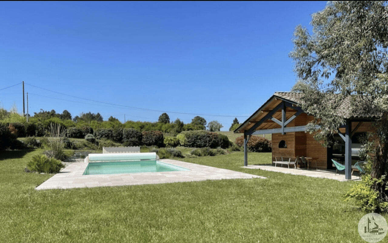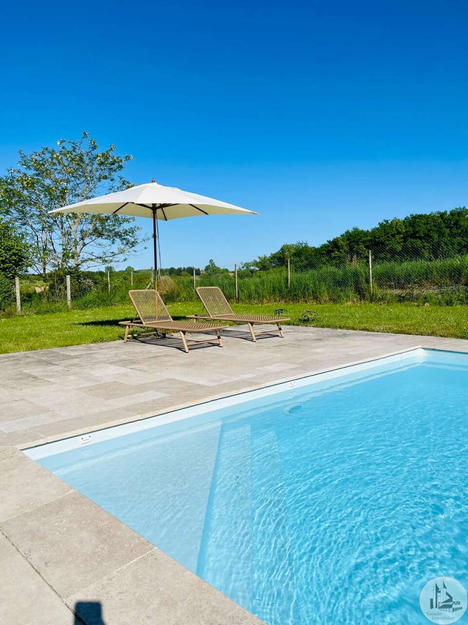 Charmante maison de plain-pied à colombages avec piscine Nichée au cœur du Lot-et-Garonne, à quelques minutes des pittoresques bastides de Monflanquin et Villeneuve-sur-Lot, cette élégante maison de plain-pied à colombages offre un cadre verdoyant et paisible, alliant confort et style. D'une surface habitable d'environ 145 m², la maison bénéficie d'une luminosité naturelle exceptionnelle et de vastes espaces de vie ouverts. Le séjour/salle à manger de 77 m² s'ouvre harmonieusement sur une cuisine moderne et entièrement équipée, créant un espace idéal pour recevoir famille et amis. La maison comprend deux chambres spacieuses avec placards intégrés, une salle de bains et des toilettes séparées. Une buanderie pratique et un garage double de 40 m² complètent ce bien. La maison est située sur un magnifique jardin clos et paysagé d'environ 1 800 m², véritable havre de paix. Profitez des beaux jours sur la terrasse couverte ou plongez dans la piscine. Caractéristiques principales : Chauffage au sol avec pompe à chaleur Climatisation réversible Poêle à bois (Jotul) Volets roulants électriques Système d'alarme Entièrement rénovée et prête à habiter, cette propriété allie charme et confort moderne. Idéale comme résidence principale ou secondaire, elle offre un havre de paix pour ceux qui souhaitent profiter de la campagne française.