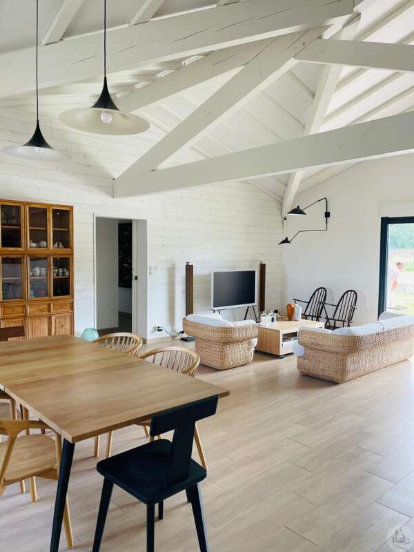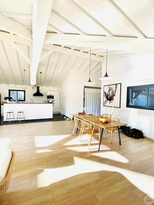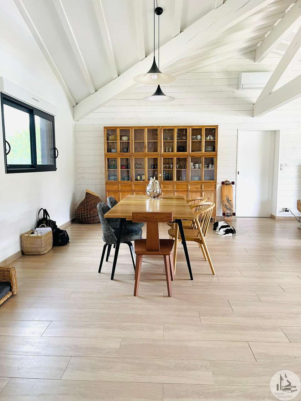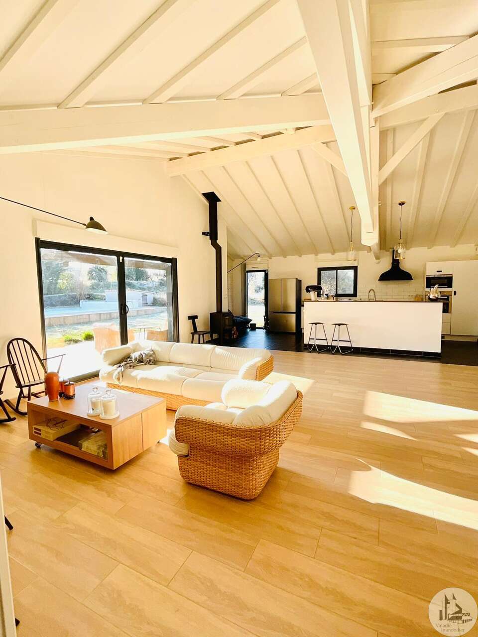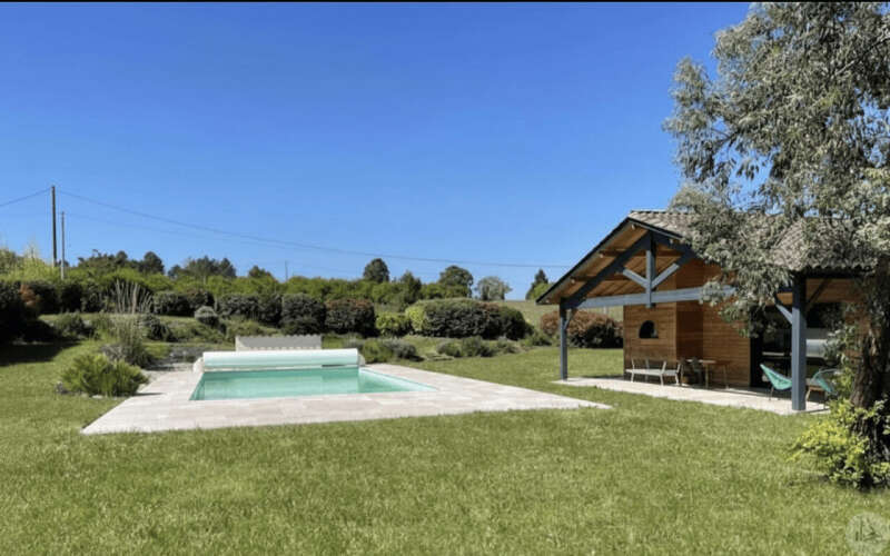 Charmante maison de plain-pied à colombages avec piscine Nichée au cœur du Lot-et-Garonne, à quelques minutes des pittoresques bastides de Monflanquin et Villeneuve-sur-Lot, cette élégante maison de plain-pied à colombages offre un cadre verdoyant et paisible, alliant confort et style. D'une surface habitable d'environ 145 m², la maison bénéficie d'une luminosité naturelle exceptionnelle et de vastes espaces de vie ouverts. Le séjour/salle à manger de 77 m² s'ouvre harmonieusement sur une cuisine moderne et entièrement équipée, créant un espace idéal pour recevoir famille et amis. La maison comprend deux chambres spacieuses avec placards intégrés, une salle de bains et des toilettes séparées. Une buanderie pratique et un garage double de 40 m² complètent ce bien. La maison est située sur un magnifique jardin clos et paysagé d'environ 1 800 m², véritable havre de paix. Profitez des beaux jours sur la terrasse couverte ou plongez dans la piscine. Caractéristiques principales : Chauffage au sol avec pompe à chaleur Climatisation réversible Poêle à bois (Jotul) Volets roulants électriques Système d'alarme Entièrement rénovée et prête à habiter, cette propriété allie charme et confort moderne. Idéale comme résidence principale ou secondaire, elle offre un havre de paix pour ceux qui souhaitent profiter de la campagne française.