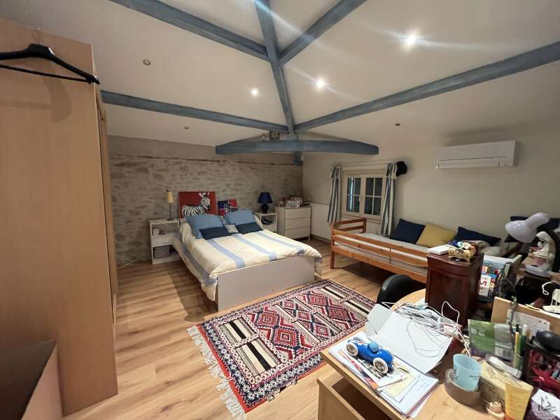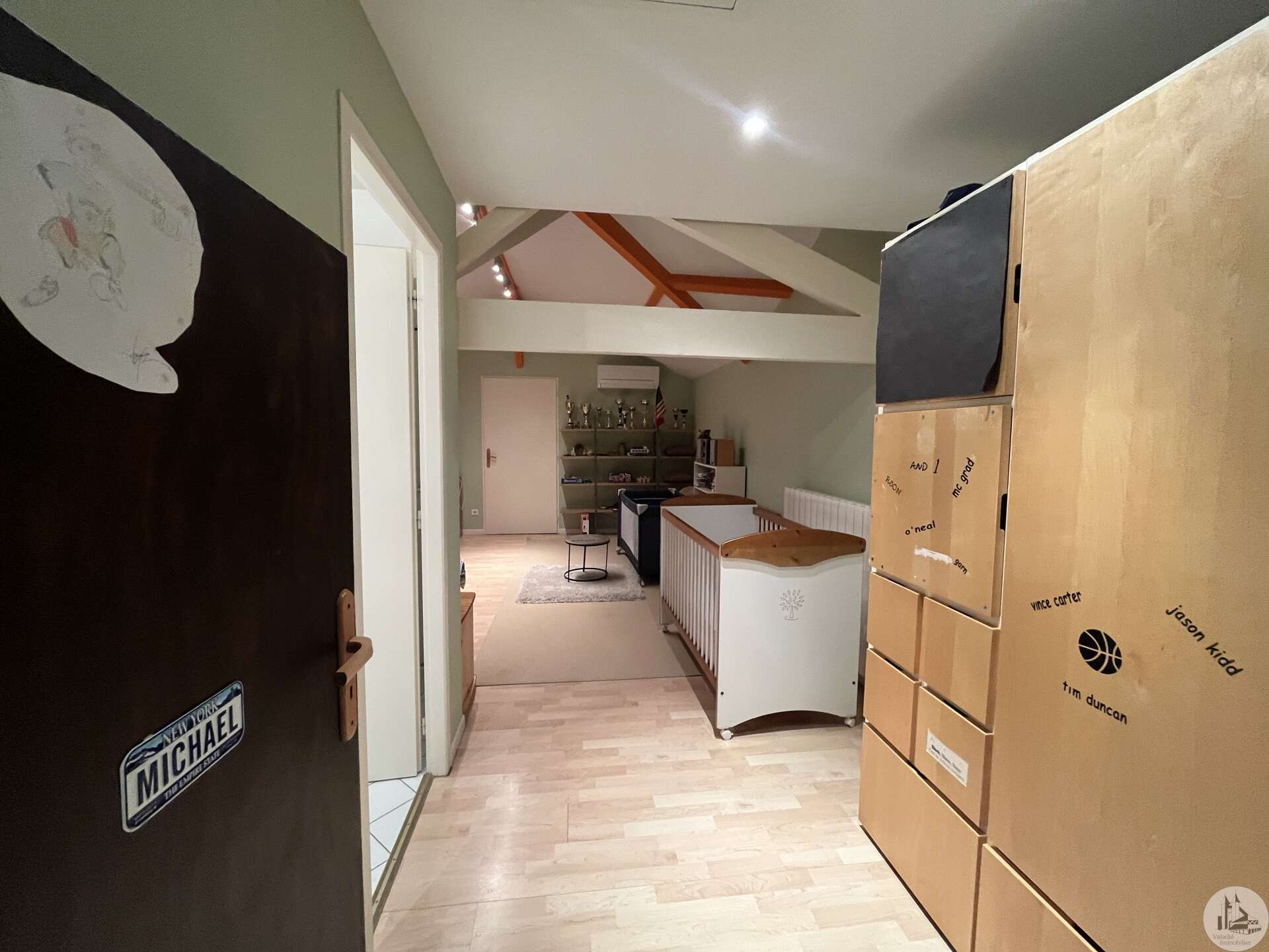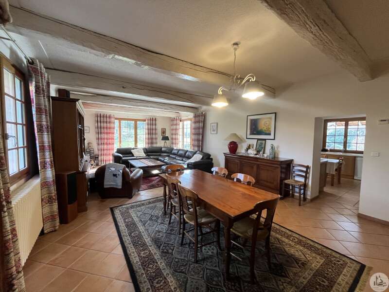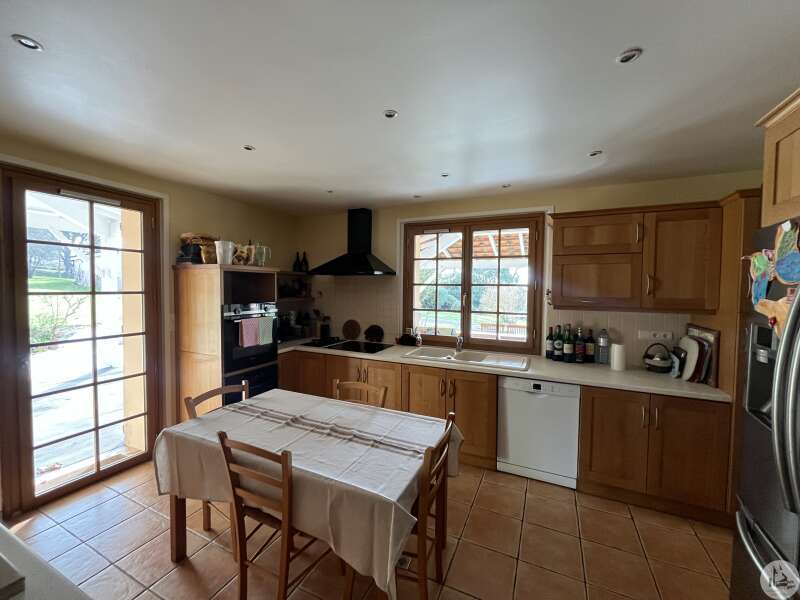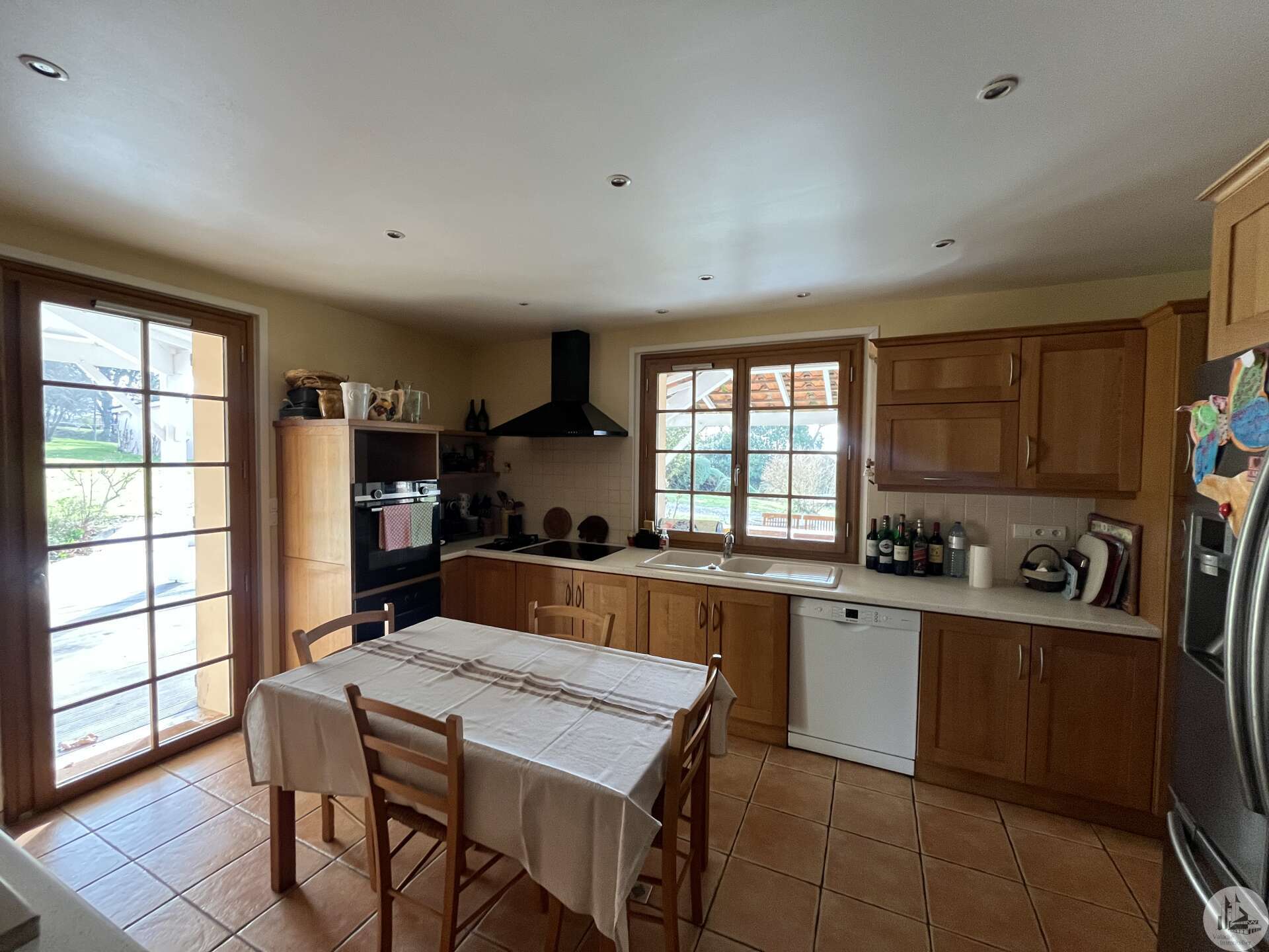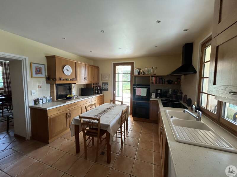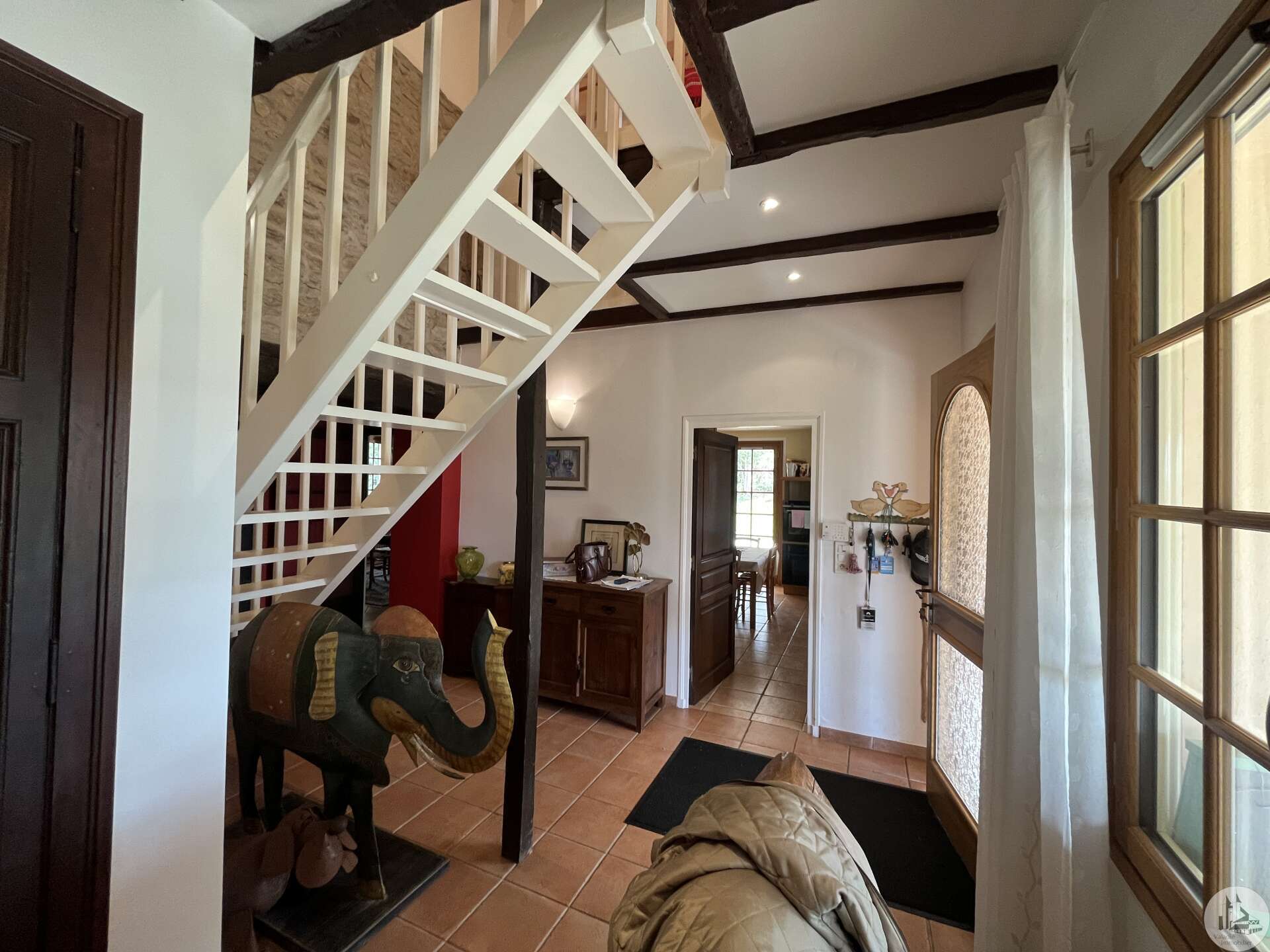 Maison de 280 m2 environ qui se compose d'une entrée de 20m2 suivie d'une cuisine équipée de 16m2, un salon avec cheminée à foyer fermé 45m2, un séjour de 13m2, en rez chaussée se trouve une buanderie de 11m2, une salle de bain avec wc de 6,8m2, une chambre de 10m2 dont une suite parentale de 13m2avec salle d'eau de 4,5m2. A l'étage une chambre de 20m2, un espace de 14m2 qui dessert une chambre de 21m2, une salle d'eau avec wc de 7m2, une chaufferie de 8m2, un bureau de 8,64m2, une suite parentale de 31m2 avec salle d'eau avec wc de 5m2. Combles de 14m2. Extérieur: Une grange avec 4 Box à chevaux de 90m2 alimenté par l'eau et l'électricité, une ancienne maison en pierre de 50m2 à restaurer entièrement. Un garage de 50m2 environ et un atelier attenant de 11m2. Une piscine au chlore avec volet roulant électrique, un pool house avec douche et toilette. Terrain de 1ha 20a 52ca Clim réversible dans les chambres.