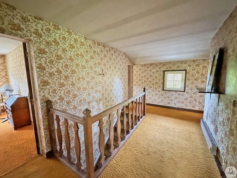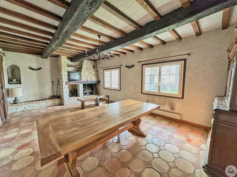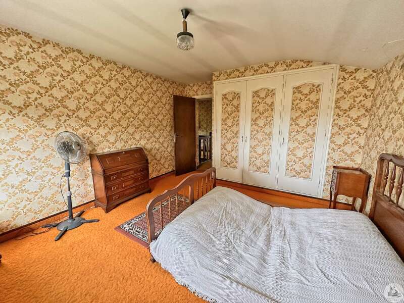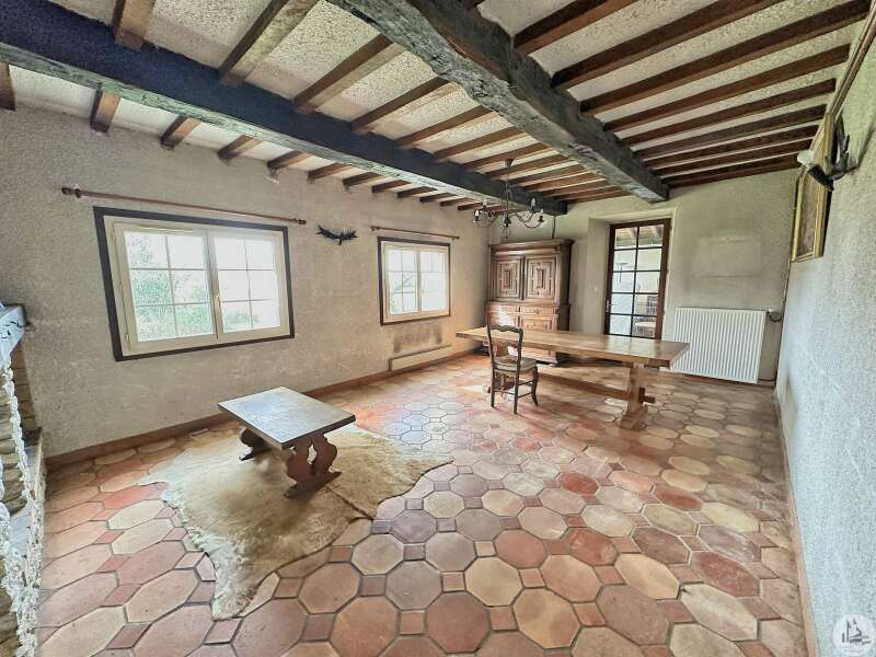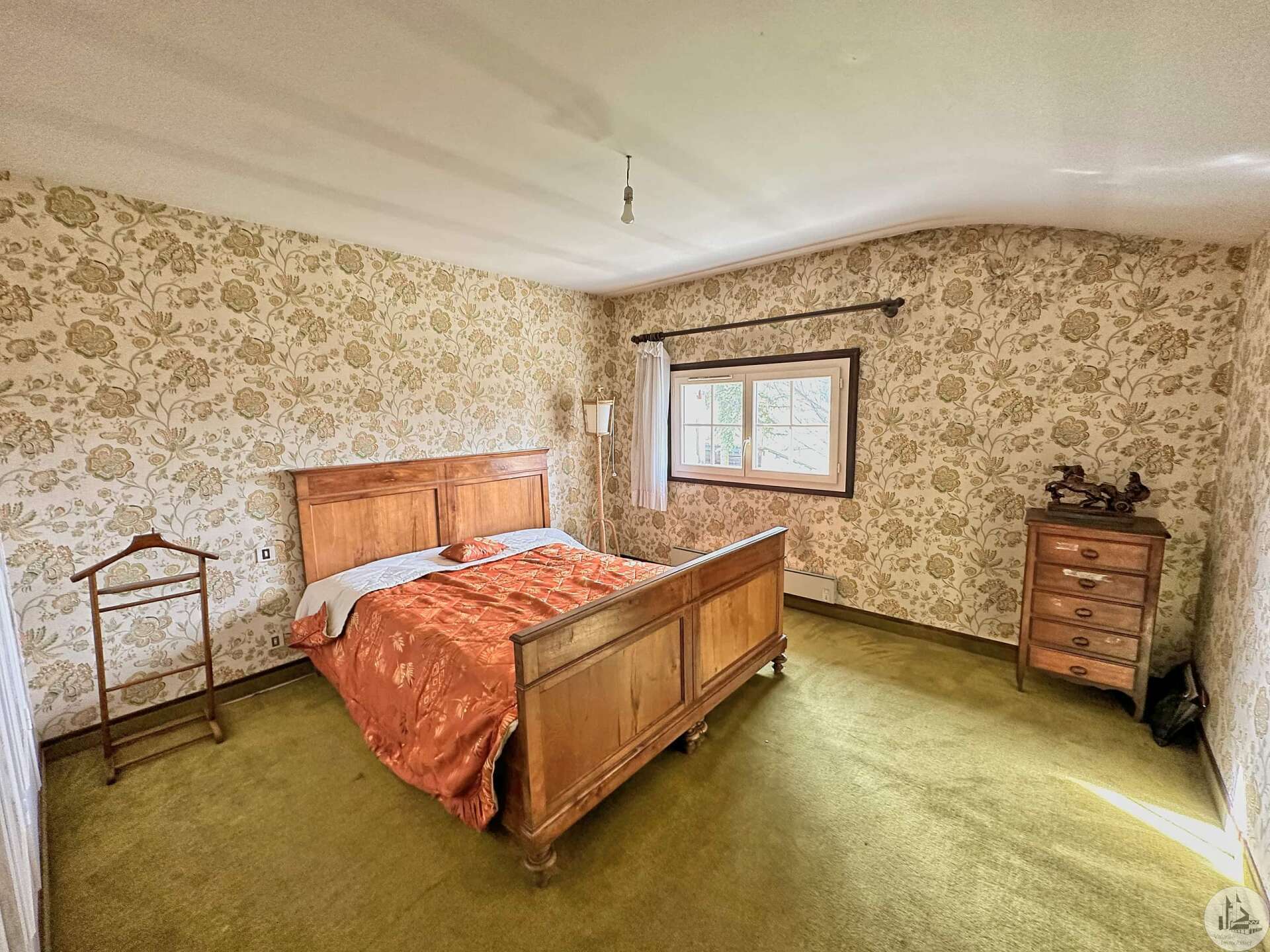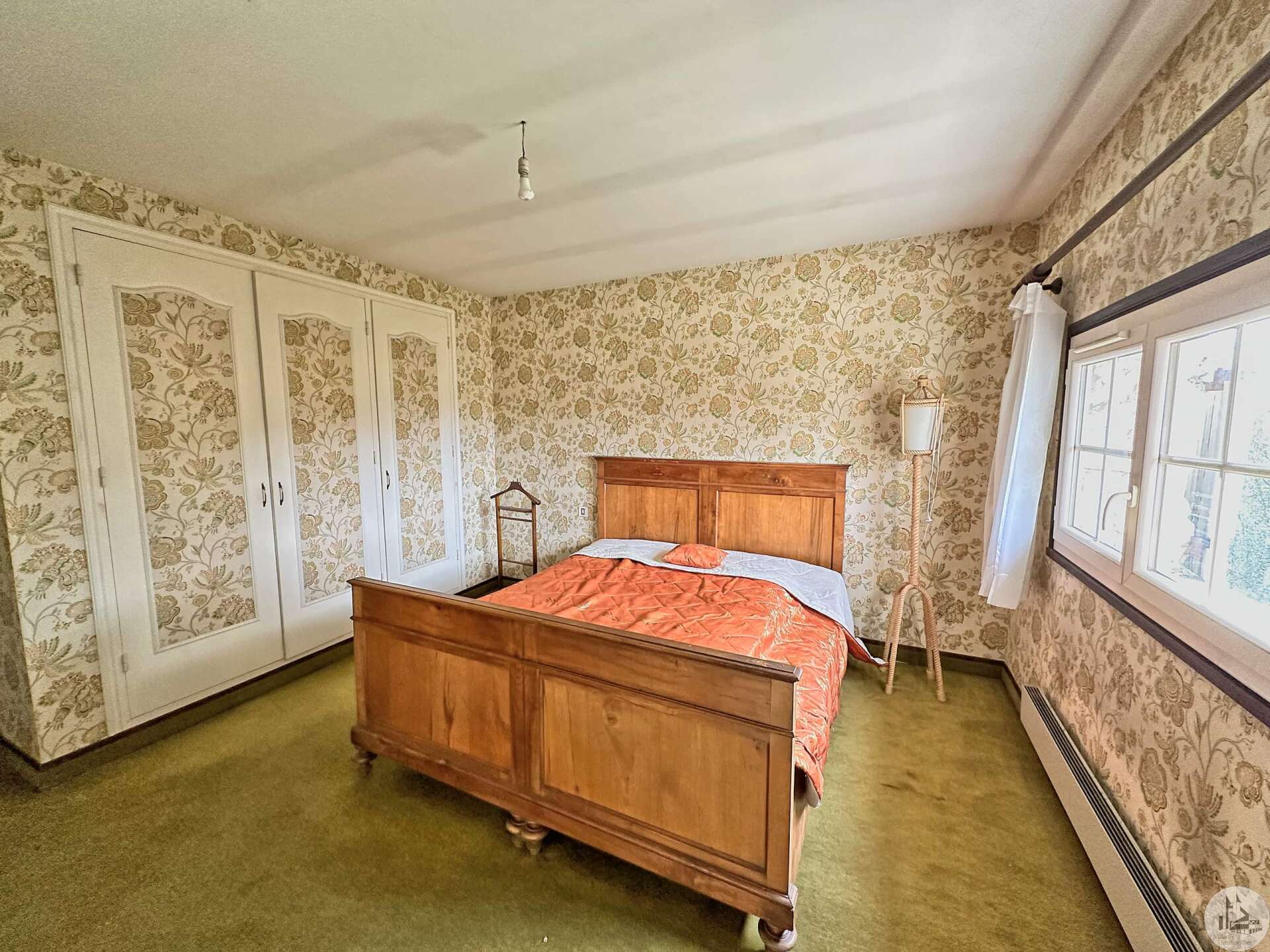 Maison d'habitation en pierres comprenant : Au rez-de-chaussée : - cuisine avec coin repas, - salon/salle à manger avec cheminée ouverte, véranda, - dégagement desservant : - 2 chambres, - douche, - wc indépendants. A l'étage : - pallier, - 4 chambres avec placards, - salle de bains avec wc. Chauffage bois (cuisinière raccordée à certains radiateurs du bas) et électrique (vétuste). Abris ouvert, grange, deux hangars ouverts. Box à chevaux.