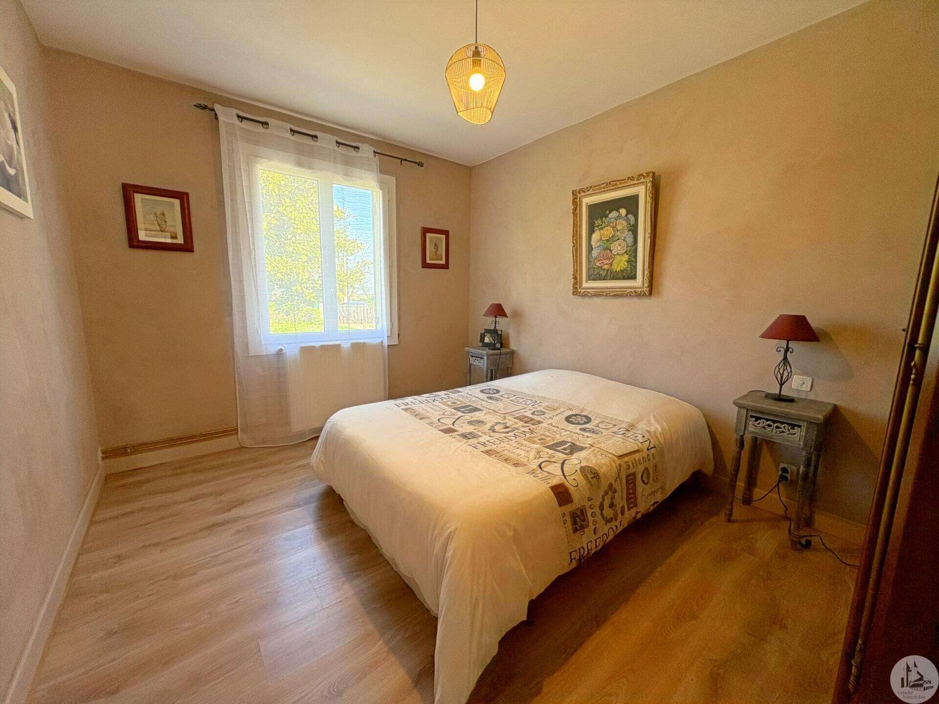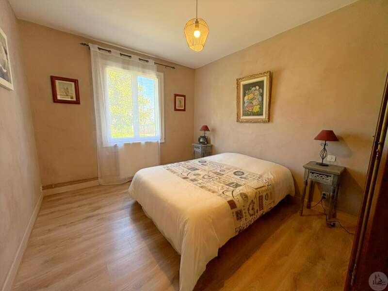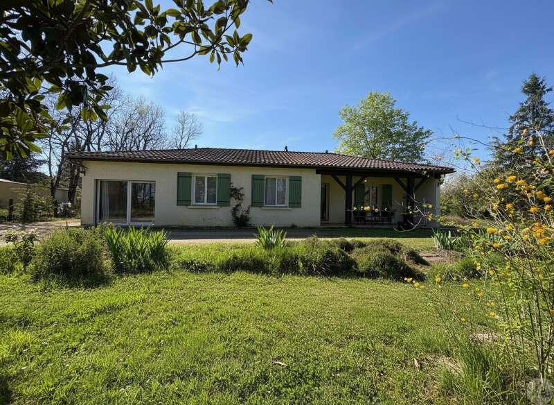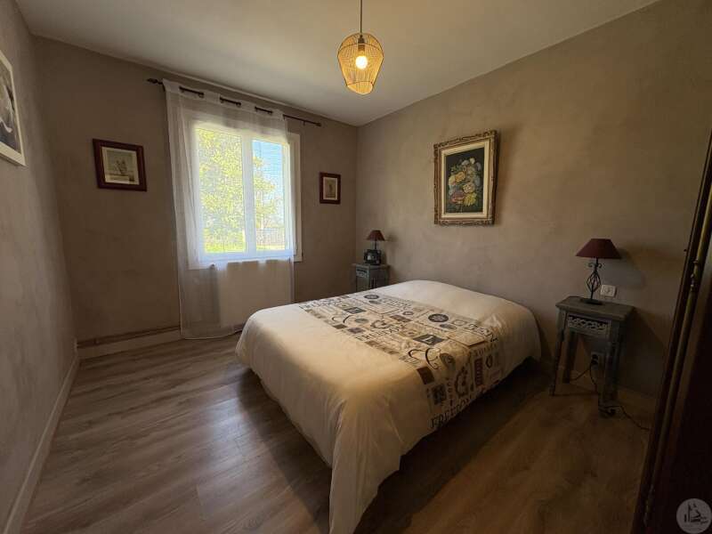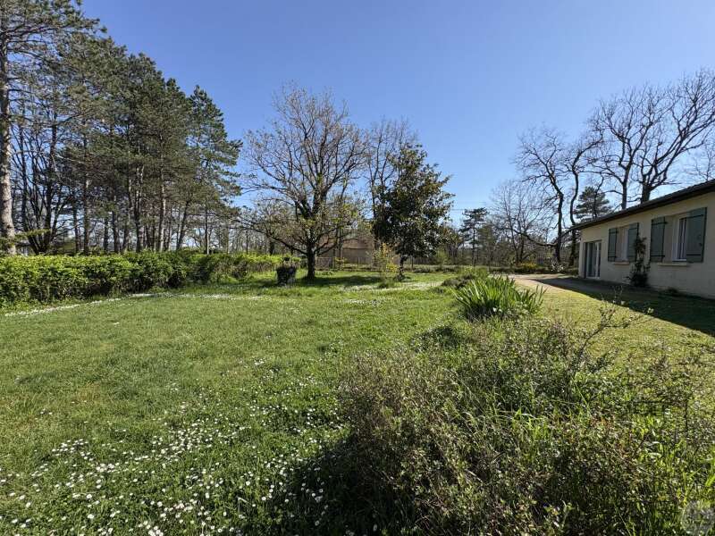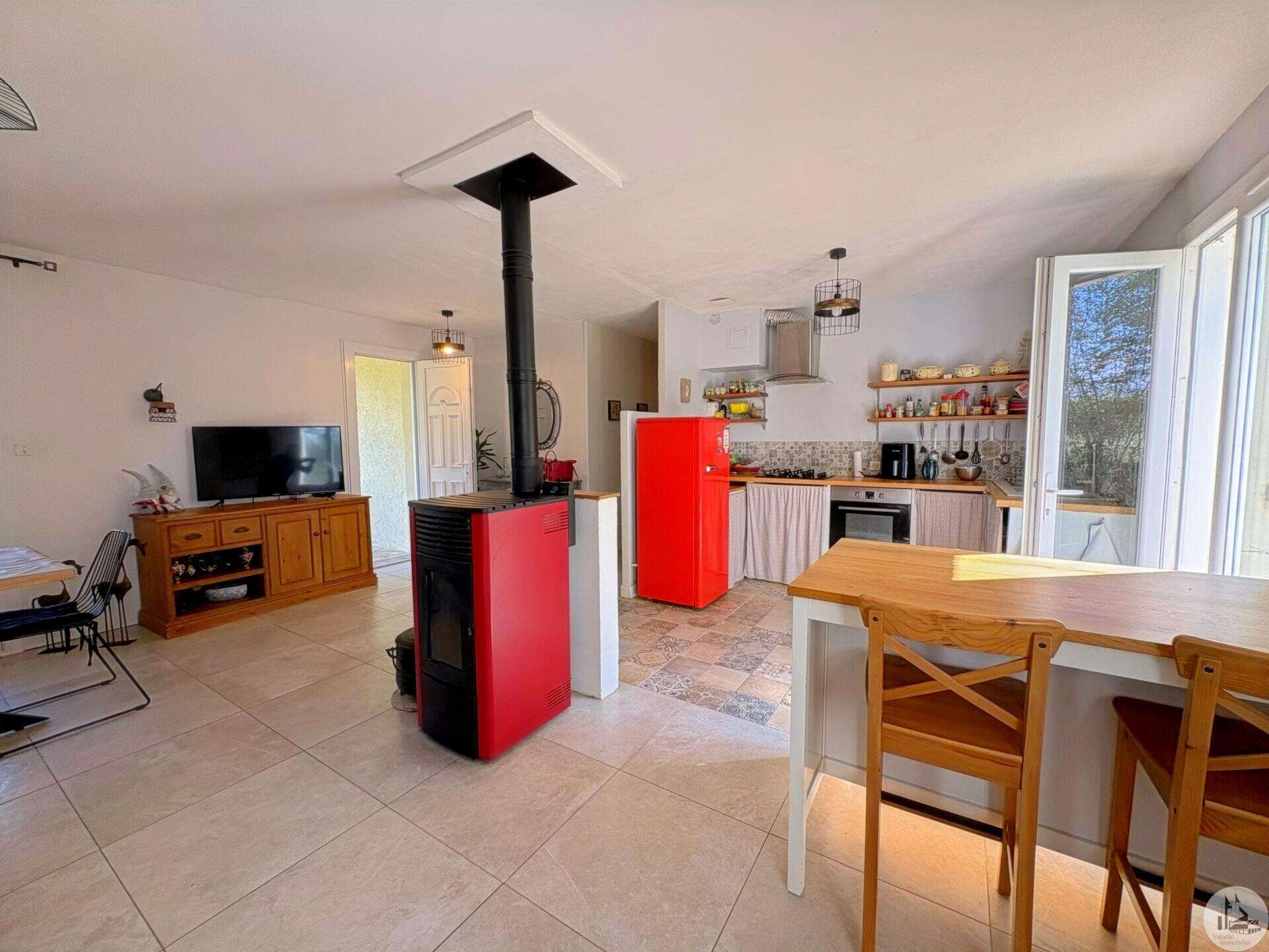 Maison de plain pied construite en 1975 avec dépendance sur un terrain de 3450 M2. L'habitation d'environ 104 M2 se compose; D'une pièce principale avec cuisine ouverte sur salon/salle à manger d'environ 39 M2 équipée d'un poêle à granulés, trois chambres, une salle d'eau, un toilette séparé et une pièce annexe (éventuelle quatrième chambre). En continuité une pièce utilisée comme buanderie et chaufferie. Les huisseries sont en double vitrage PVC. Chauffage au gaz avec citerne entérrée. Un bâtiment séparé avec un atelier et une remise. A l'extérieur, une terrasse abritée donnant sur un jardin arboré plat et clos avec espace de stationnement. Assainissement individuel.