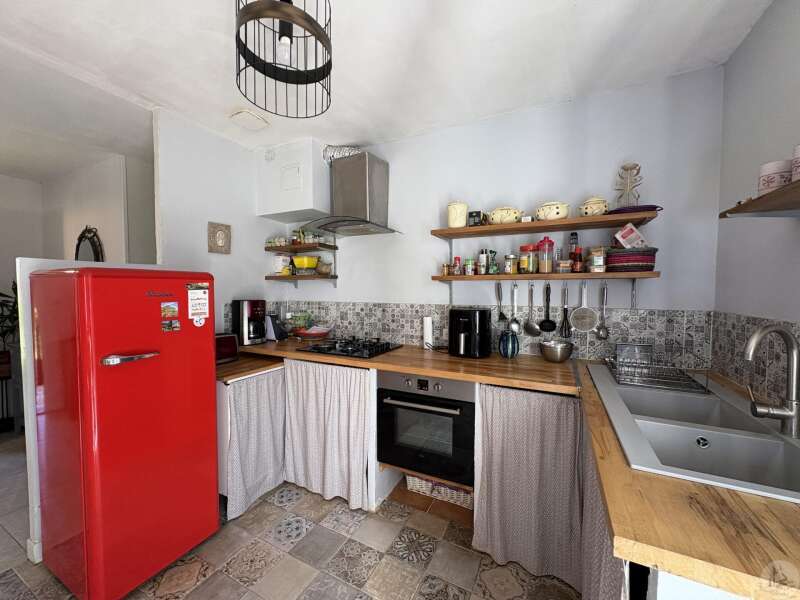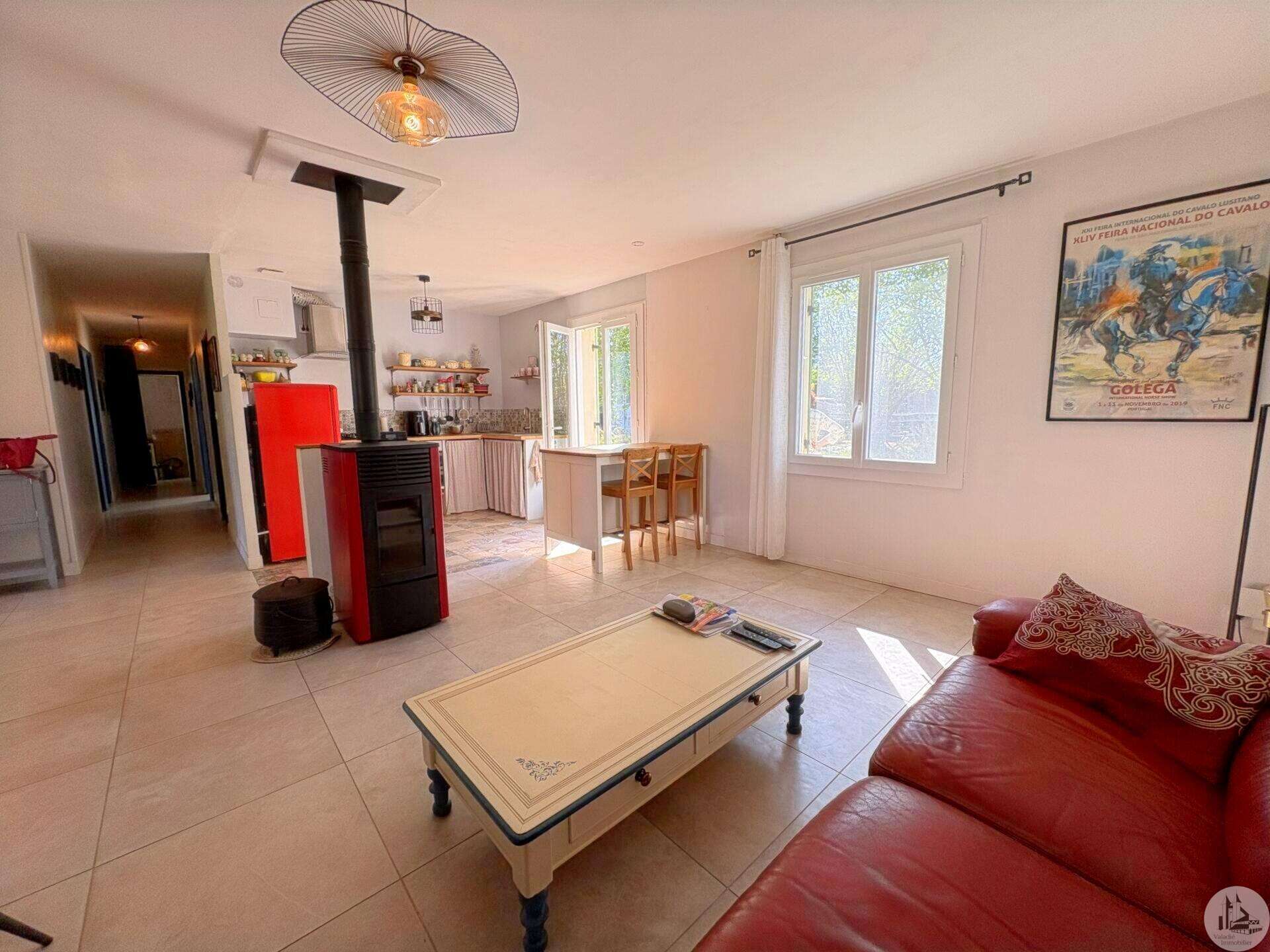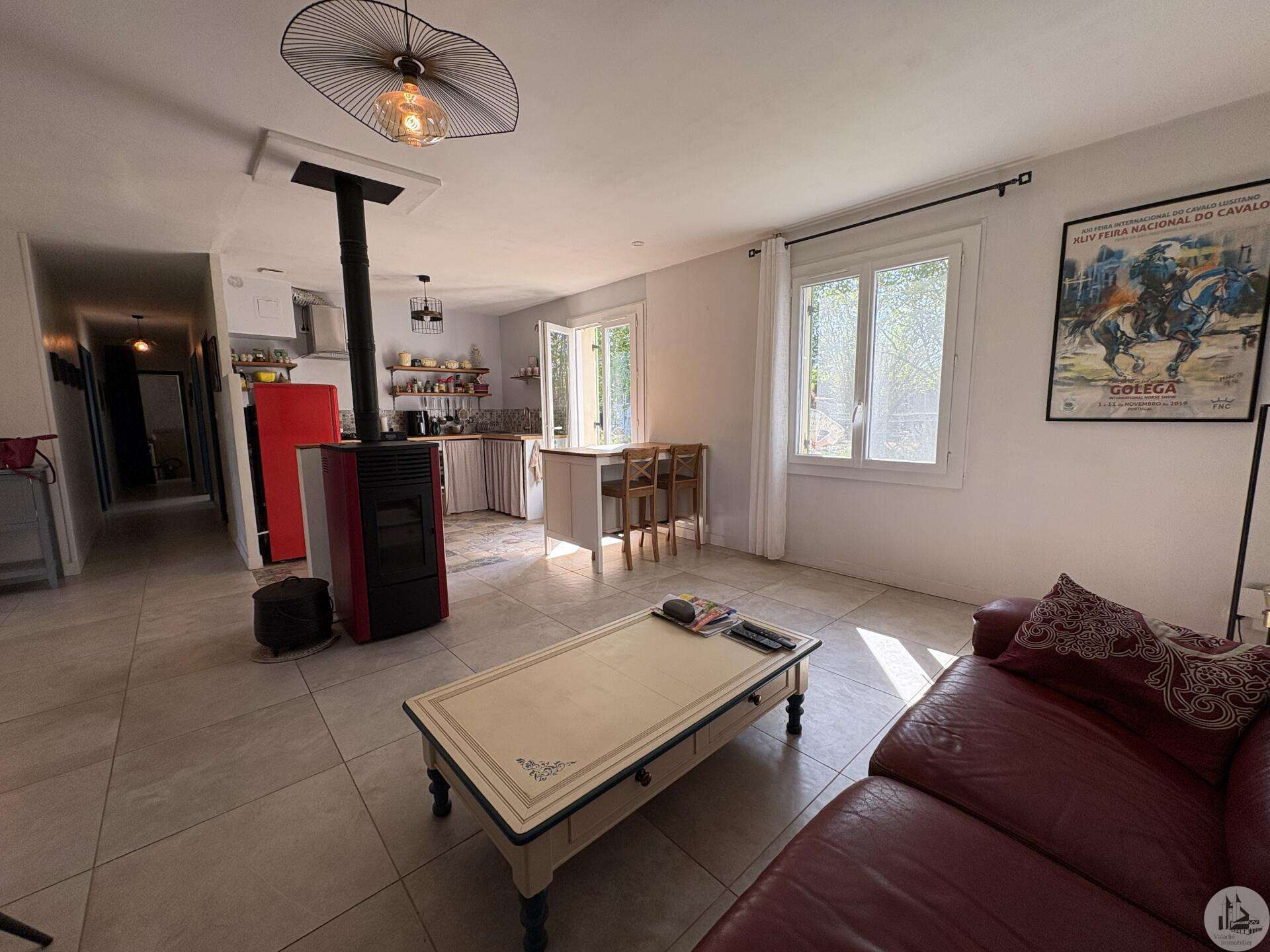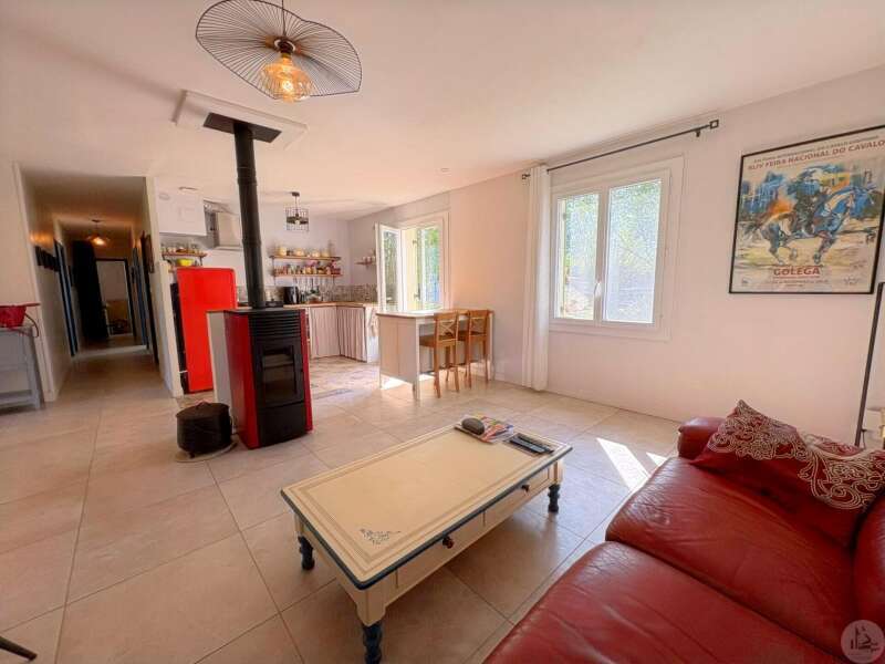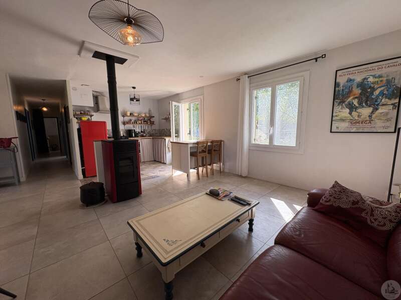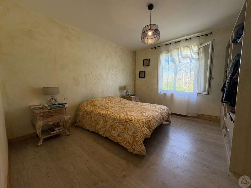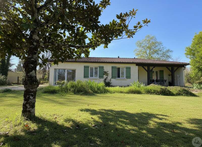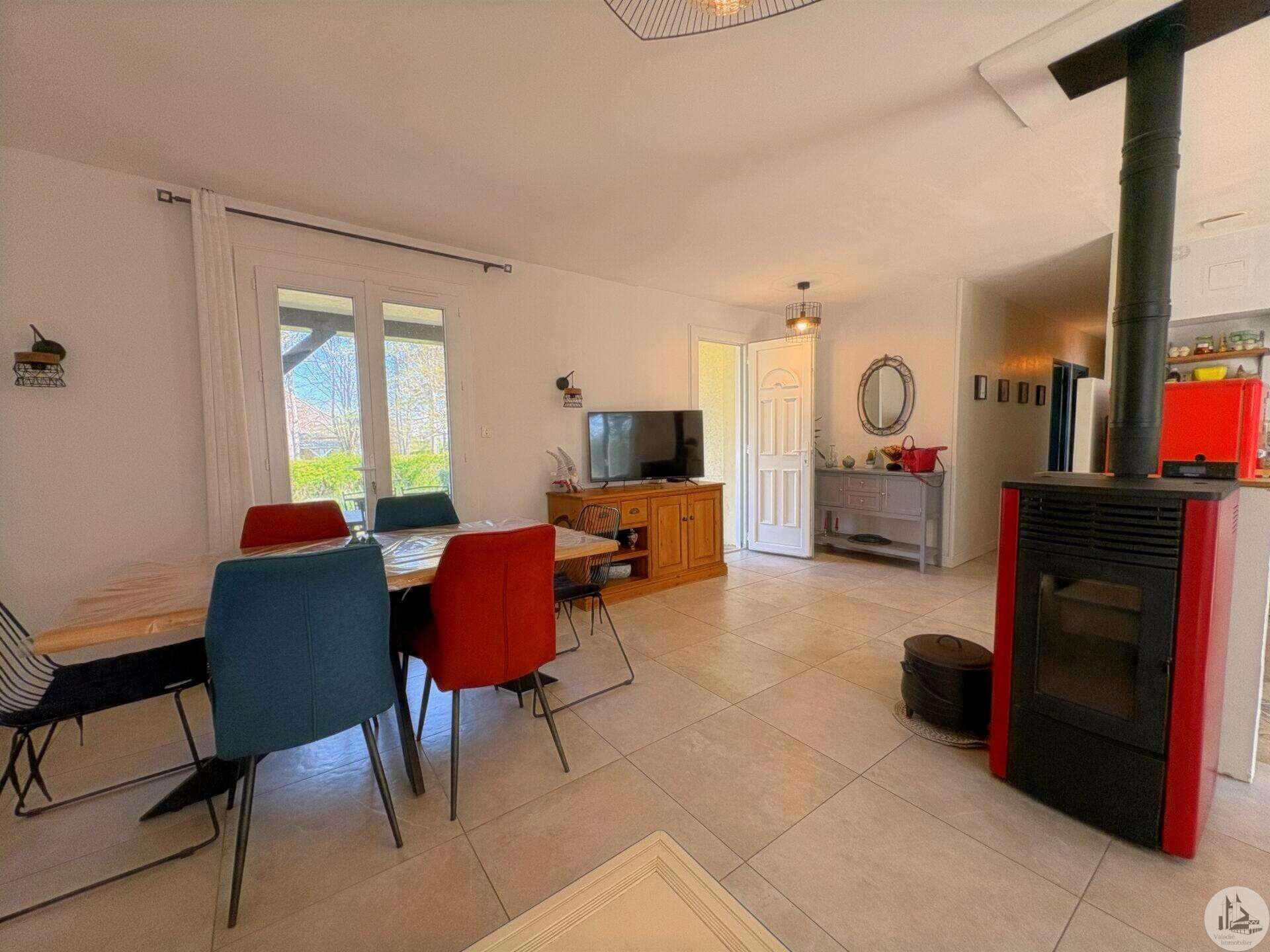 Maison de plain pied construite en 1975 avec dépendance sur un terrain de 3450 M2. L'habitation d'environ 104 M2 se compose; D'une pièce principale avec cuisine ouverte sur salon/salle à manger d'environ 39 M2 équipée d'un poêle à granulés, trois chambres, une salle d'eau, un toilette séparé et une pièce annexe (éventuelle quatrième chambre). En continuité une pièce utilisée comme buanderie et chaufferie. Les huisseries sont en double vitrage PVC. Chauffage au gaz avec citerne entérrée. Un bâtiment séparé avec un atelier et une remise. A l'extérieur, une terrasse abritée donnant sur un jardin arboré plat et clos avec espace de stationnement. Assainissement individuel.