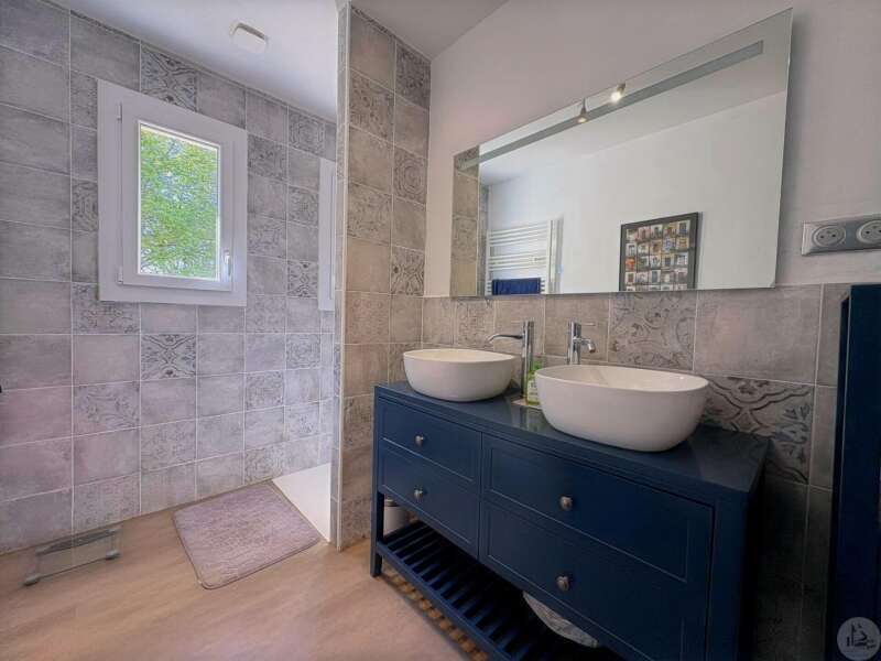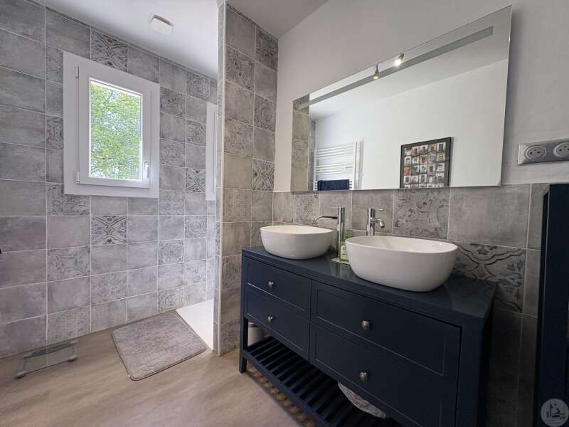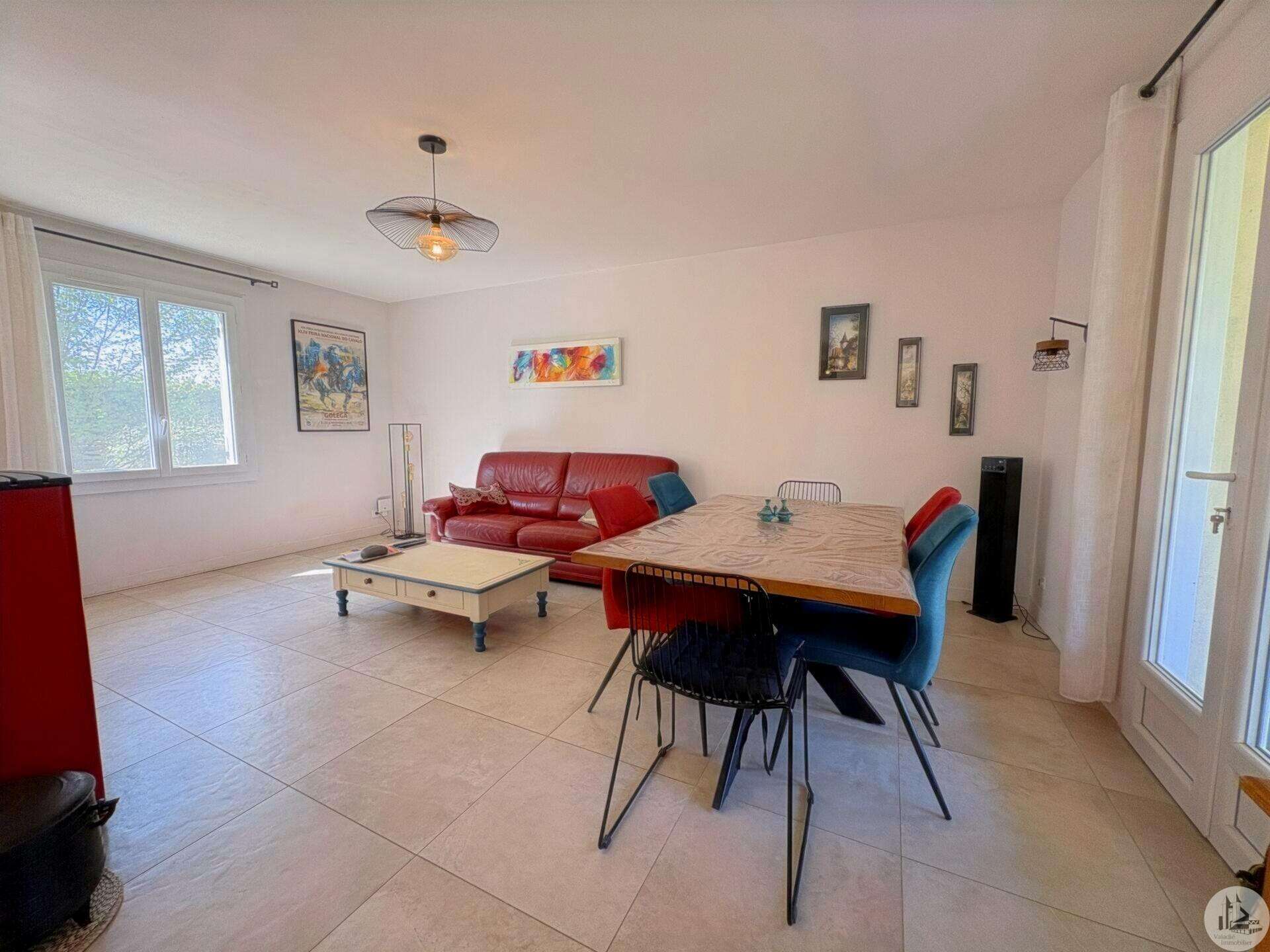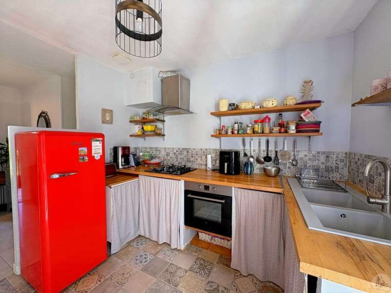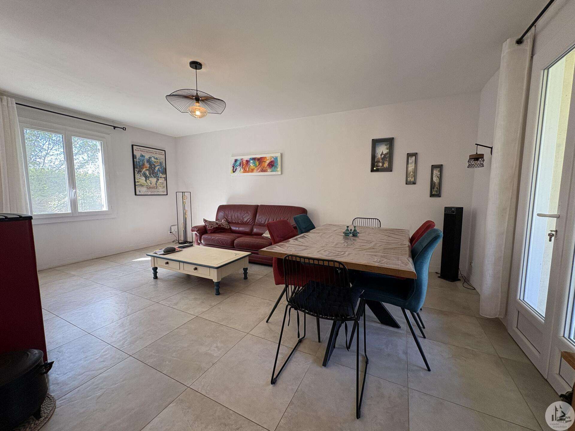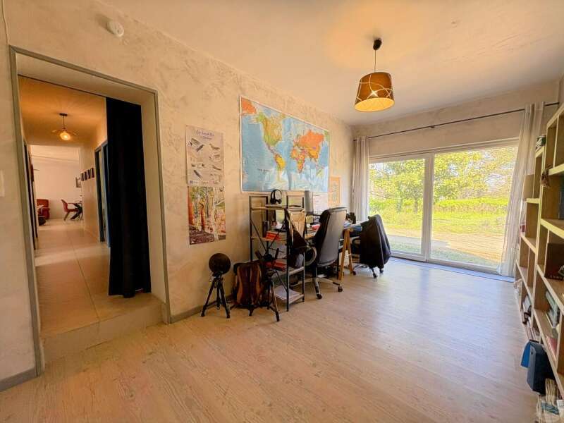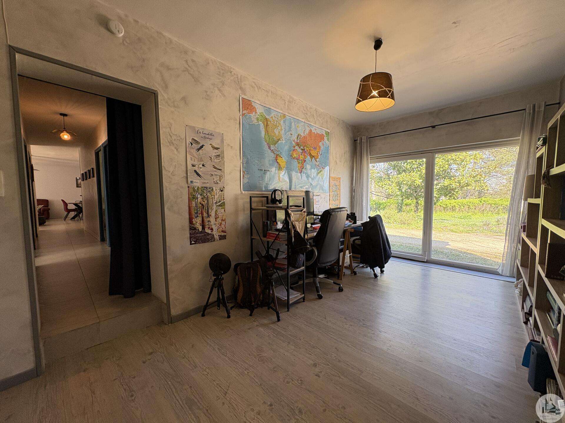 Maison de plain pied construite en 1975 avec dépendance sur un terrain de 3450 M2. L'habitation d'environ 104 M2 se compose; D'une pièce principale avec cuisine ouverte sur salon/salle à manger d'environ 39 M2 équipée d'un poêle à granulés, trois chambres, une salle d'eau, un toilette séparé et une pièce annexe (éventuelle quatrième chambre). En continuité une pièce utilisée comme buanderie et chaufferie. Les huisseries sont en double vitrage PVC. Chauffage au gaz avec citerne entérrée. Un bâtiment séparé avec un atelier et une remise. A l'extérieur, une terrasse abritée donnant sur un jardin arboré plat et clos avec espace de stationnement. Assainissement individuel.
