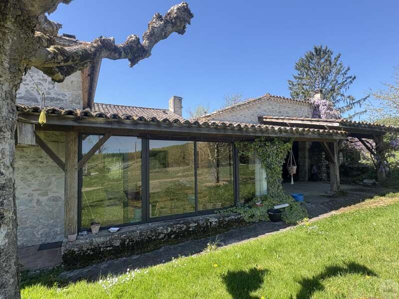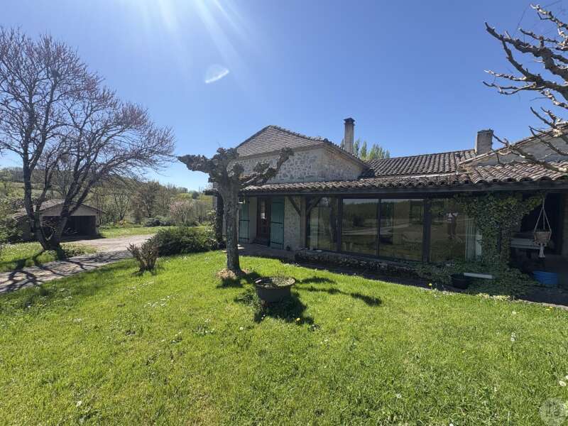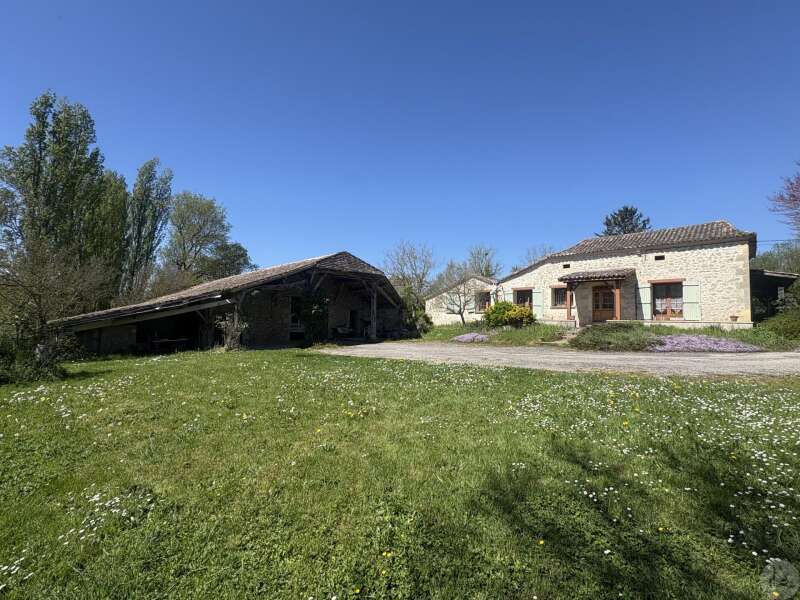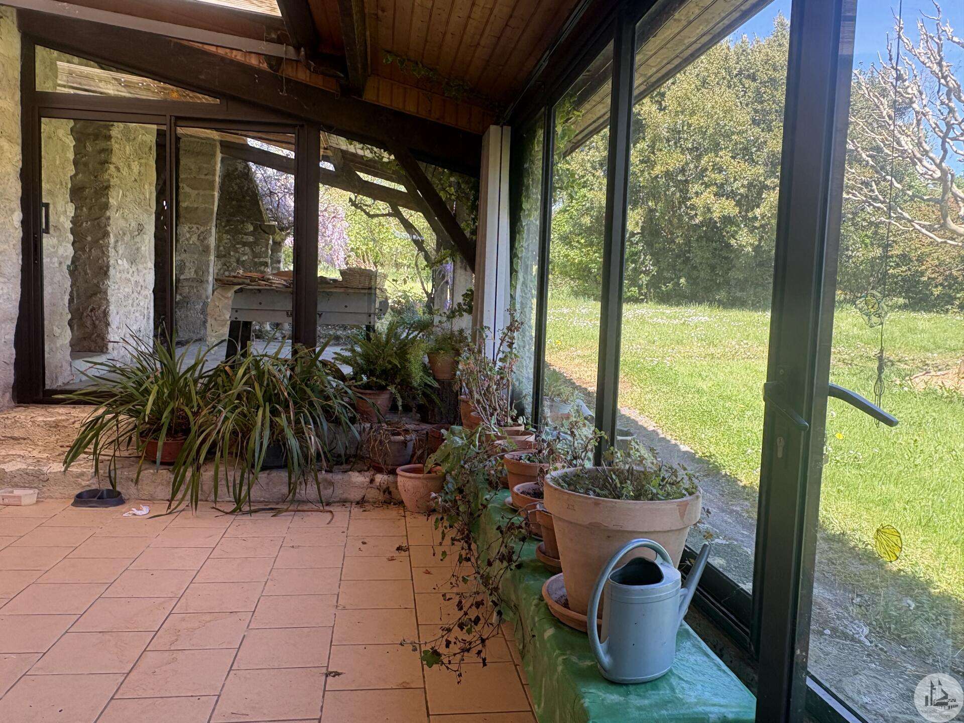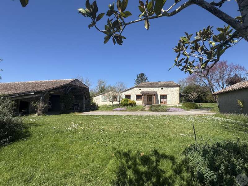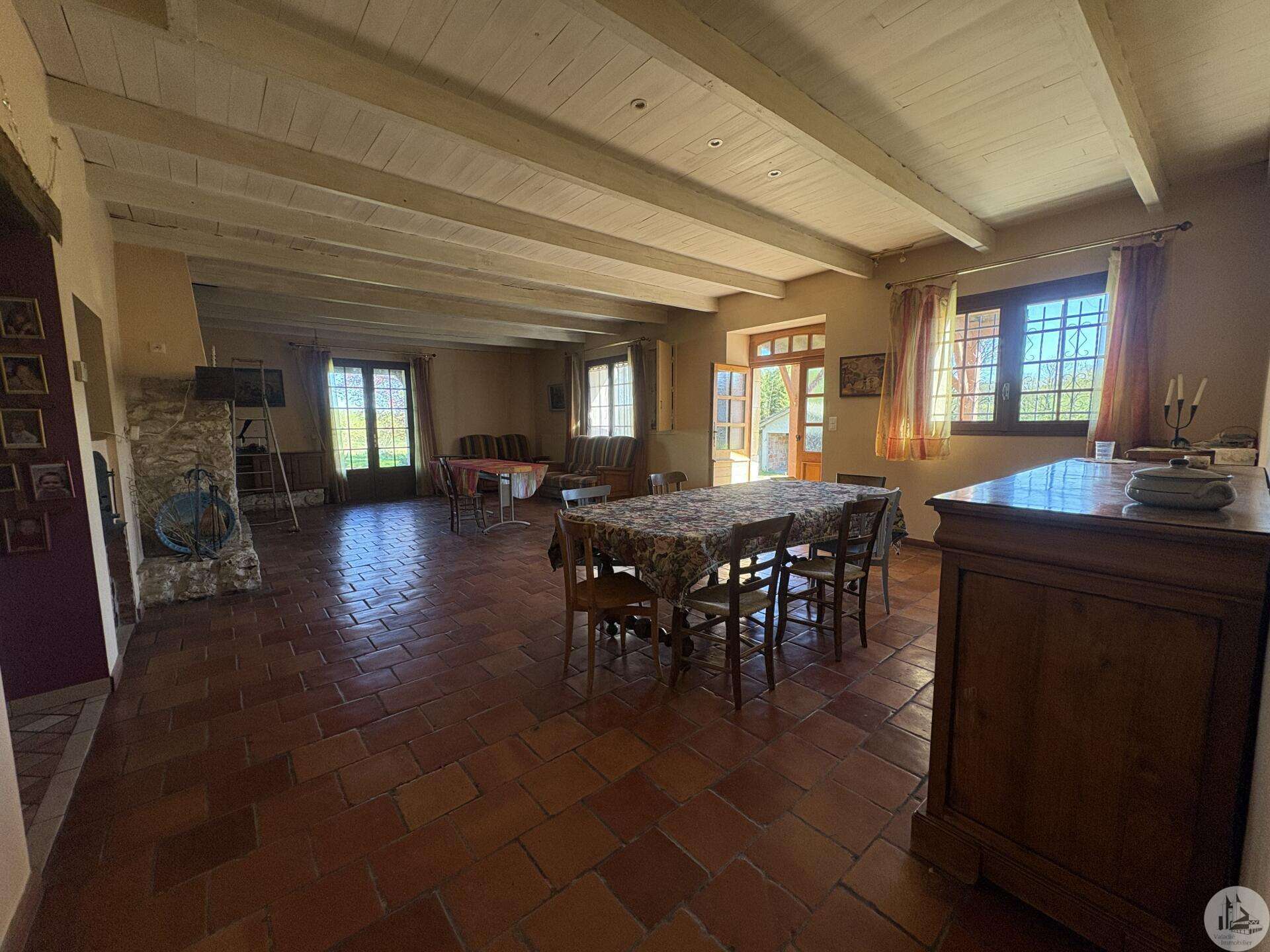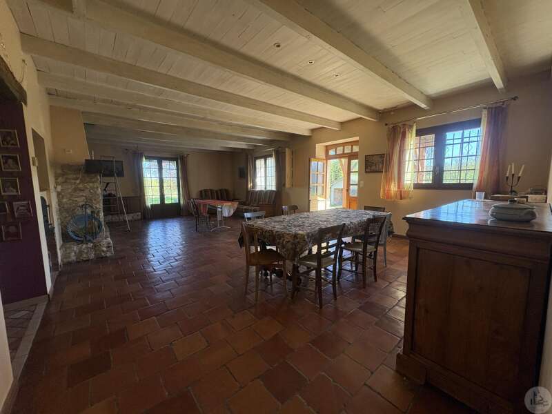 Propriété en pierre avec maison et dépendances sur un terrain de 11.885 M2. L'habitation de plain pied, d'environ 170 M2, se compose; D'une pièce principale salon/salle à manger avec insert à bois, une cuisine équipée, un cellier, cinq chambres, une véranda, deux salles de bains dont une avec toilette et un toilette séparé. Les dépendances se composent; D'une grange principale indépendante avec atelier, une grange secondaire en continuité de la maison avec chaufferie pour la chaudière à fioul, un appentis et un garage indépendant. A l'éxterieur, une cour centrale donnant sur un parc arboré ou se trouve un puits et une marre naturelle. Assainissement individuel. Les huisseries sont en double vitrage bois.