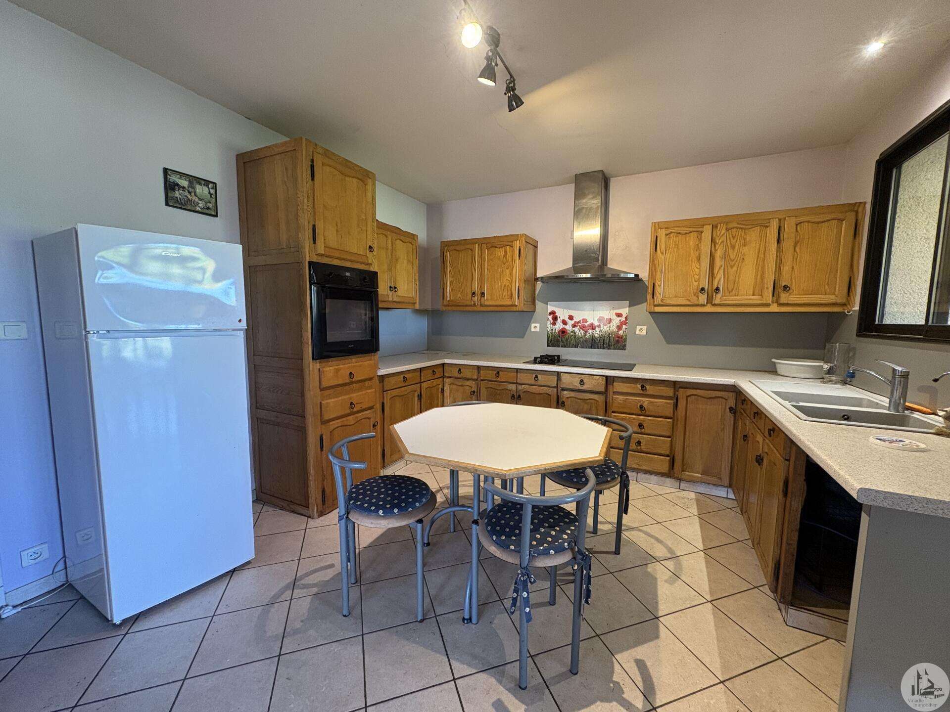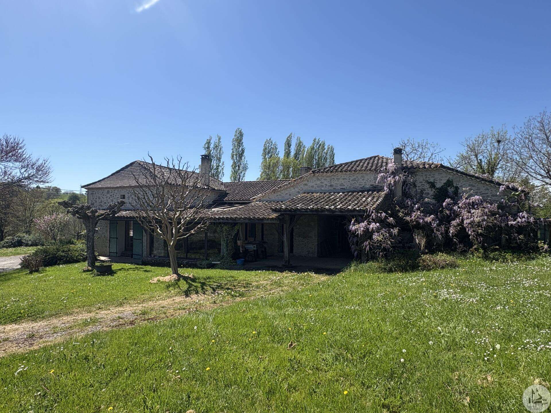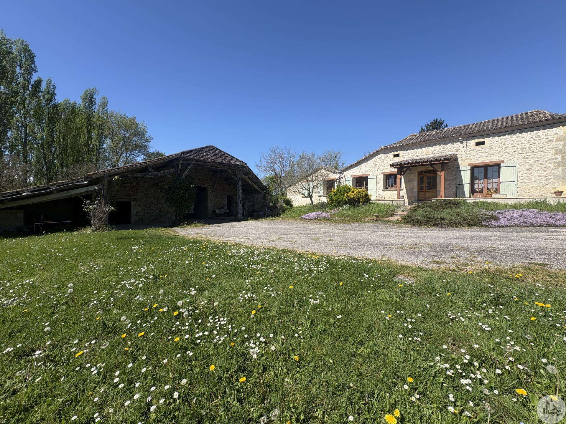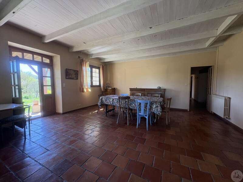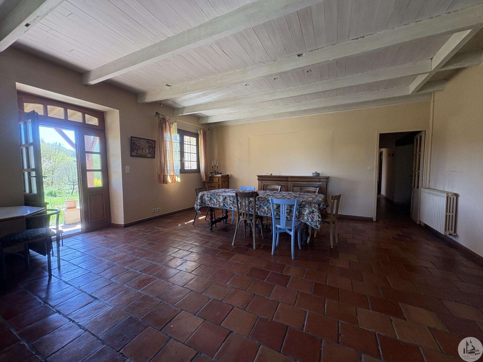 Propriété en pierre avec maison et dépendances sur un terrain de 11.885 M2. L'habitation de plain pied, d'environ 170 M2, se compose; D'une pièce principale salon/salle à manger avec insert à bois, une cuisine équipée, un cellier, cinq chambres, une véranda, deux salles de bains dont une avec toilette et un toilette séparé. Les dépendances se composent; D'une grange principale indépendante avec atelier, une grange secondaire en continuité de la maison avec chaufferie pour la chaudière à fioul, un appentis et un garage indépendant. A l'éxterieur, une cour centrale donnant sur un parc arboré ou se trouve un puits et une marre naturelle. Assainissement individuel. Les huisseries sont en double vitrage bois.