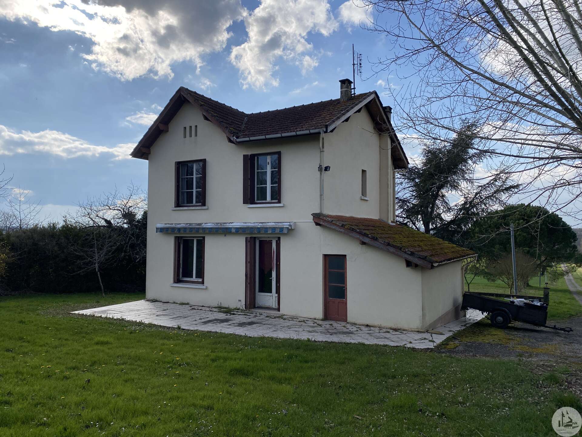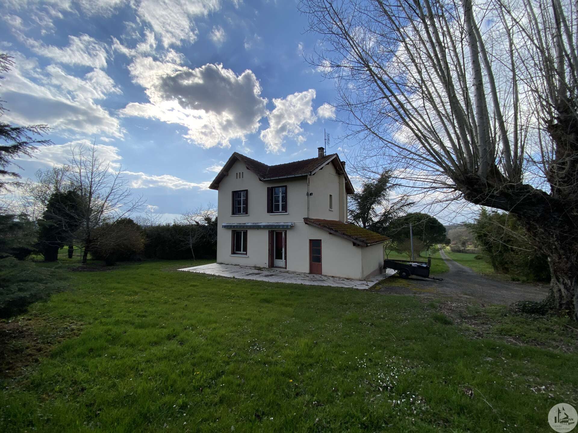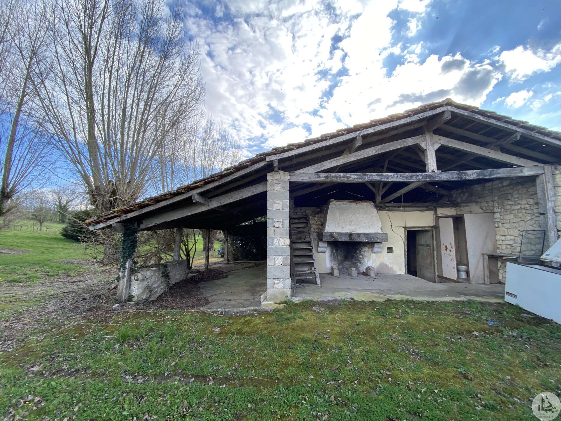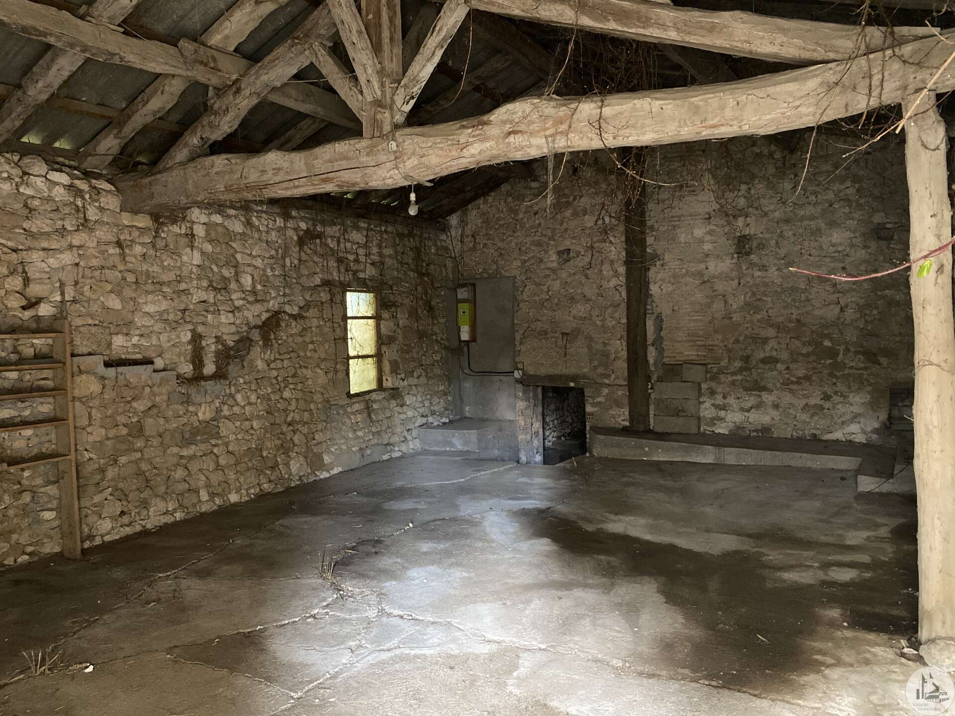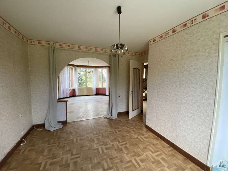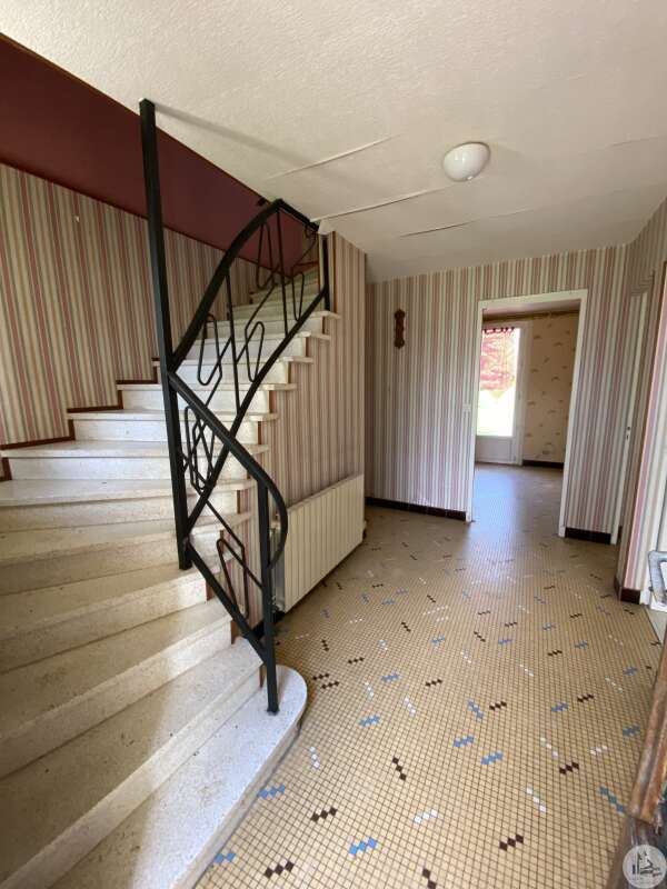Une maison d'habitation construite dans les années 1960 sur fondation et micro-pieux au niveau du garage. Une surface habitable de 93 m2 environ comprenant : - Un hall d'entrée de 7,14 m2 environ, avec une cage d'escalier desservant l'étage, les marches de l'escalier sont en granit. Un wc sani-brouyeur sous l'escalier, carrelage au sol. - Un salon de 16,13 m2 environ, 3 fenêtres formant un arrondie, carrelage au sol, tapisserie. - Une salle à manger de 14,7 m2 environ, aménagée en chambre, lino au sol sur plancher, une fenêtre, tapisseries aux murs. Un espace avec une douche et un lavabo a été aménagée. - Une cuisine de 9,11 m2 environ, carrelage au sol, une porte-fenêtre, aménagée de meubles haut et bas en chêne et équipée d'une plaque de cuisson au gaz, un lave-vaisselle, un four, un évier et une hotte aspirante. - Un garage de 17,5 m2 environ, accessible depuis le hall d'entrée. Sol cimenté, un évier, une porte coulissante pour accéder avec une voiture, et une porte de service vers le jardin arrière. A l'étage : - Un dégagement de 3,2 m2 environ, parquet au sol, tapisserie aux murs. - Une chambre de 9,6 m2 environ, parquet au sol, une fenêtre (simple vitrage), tapisserie aux murs. - Une chambre de 15,3 m2 environ, parquet au sol, une fenêtre (simple vitrage), tapisserie aux murs. - Une chambre de 14,15 m2 environ, parquet au sol, une porte-fenêtre donnant accès au balcon, tapisserie aux murs. - Une salle d'eau de 4 m2 environ, carrelage au sol, faïence aux murs et tapisserie, tapisserie au plafond. Un lavabo, un bidet, une cabine de douche, une fenêtre. La plupart des menuiseries sont en PVC double vitrage, avec des volets persiennes. Les fenêtres de deux chambres à l'étage sont en bois avec simple vitrage. Chauffage central au fuel, avec une chaudière au fuel De Dietrich de plus de 20 ans installée dans le garage, en bon état de fonctionnement et révisé chaque année (déclaration du propriétaire). Radiateurs en fonte/aluminium. Une grange en pierre d'une surface de 197 m2 au sol environ, sol cimenté en partie et terre battue au milieu. Anciennes crèches. Charpente semble en bon état mais la couverture est à revoir. Plusieurs auvent sur le devant et le côté de la grange. Un séchoir à tabac de 80 m2 environ au sol, sol en terre battue, charpente refaite suite à une tempête, couverture en tole. Bardage des murs à revoir. Un garage avec une ancienne maison attenante. Une partie garage de 52 m2 environ, sol cimenté, murs en pierres. Compteur électrique (linky), cuve à fuel raccordé à la chaudière de la maison. Une cave de 10 m2 environ (non accessible). Un auvent sur le côté droit de 30 m2 environ, sol cimenté. Un second auvent de 16,5 m2 environ avec une cheminée à foyer ouvert, ouvrant sur une pièce de 26 m2 environ, plancher au sol. Terrain de 4,12 hectares dont 1,8 de bois non attenant.