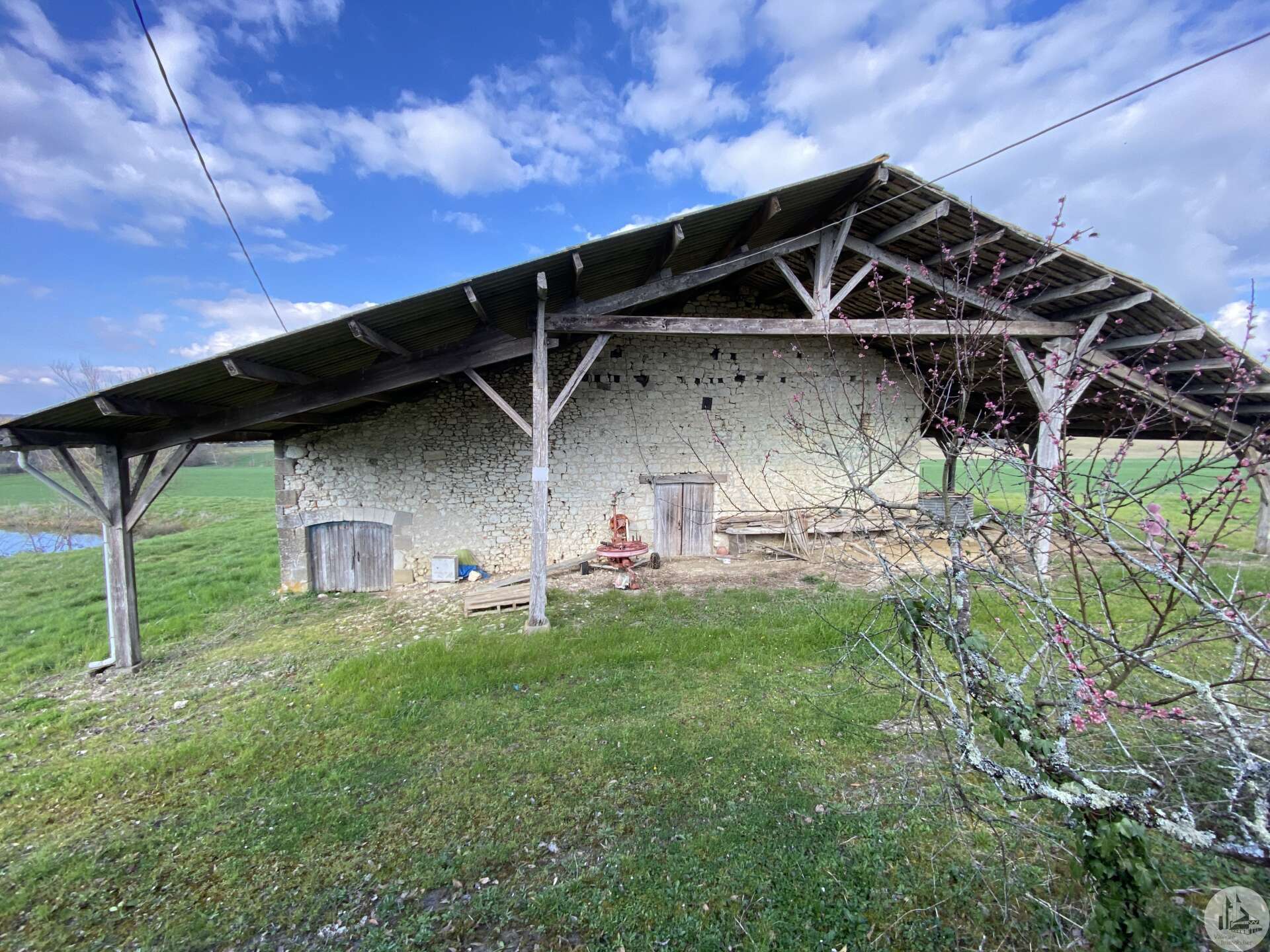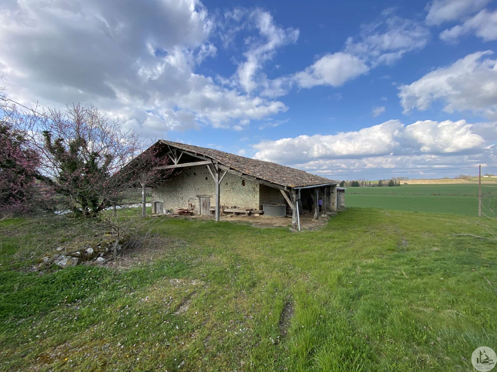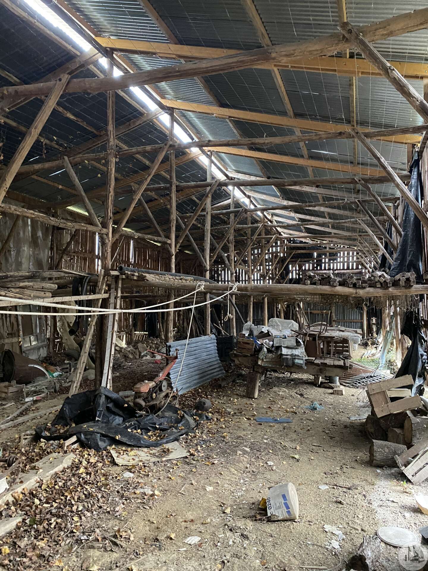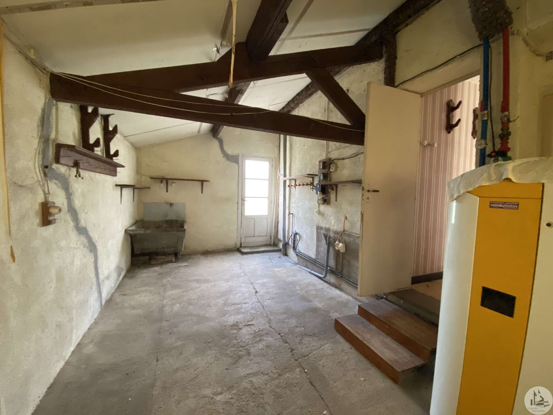 Une maison d'habitation construite dans les années 1960 sur fondation et micro-pieux au niveau du garage. Une surface habitable de 93 m2 environ comprenant : - Un hall d'entrée de 7,14 m2 environ, avec une cage d'escalier desservant l'étage, les marches de l'escalier sont en granit. Un wc sani-brouyeur sous l'escalier, carrelage au sol. - Un salon de 16,13 m2 environ, 3 fenêtres formant un arrondie, carrelage au sol, tapisserie. - Une salle à manger de 14,7 m2 environ, aménagée en chambre, lino au sol sur plancher, une fenêtre, tapisseries aux murs. Un espace avec une douche et un lavabo a été aménagée. - Une cuisine de 9,11 m2 environ, carrelage au sol, une porte-fenêtre, aménagée de meubles haut et bas en chêne et équipée d'une plaque de cuisson au gaz, un lave-vaisselle, un four, un évier et une hotte aspirante. - Un garage de 17,5 m2 environ, accessible depuis le hall d'entrée. Sol cimenté, un évier, une porte coulissante pour accéder avec une voiture, et une porte de service vers le jardin arrière. A l'étage : - Un dégagement de 3,2 m2 environ, parquet au sol, tapisserie aux murs. - Une chambre de 9,6 m2 environ, parquet au sol, une fenêtre (simple vitrage), tapisserie aux murs. - Une chambre de 15,3 m2 environ, parquet au sol, une fenêtre (simple vitrage), tapisserie aux murs. - Une chambre de 14,15 m2 environ, parquet au sol, une porte-fenêtre donnant accès au balcon, tapisserie aux murs. - Une salle d'eau de 4 m2 environ, carrelage au sol, faïence aux murs et tapisserie, tapisserie au plafond. Un lavabo, un bidet, une cabine de douche, une fenêtre. La plupart des menuiseries sont en PVC double vitrage, avec des volets persiennes. Les fenêtres de deux chambres à l'étage sont en bois avec simple vitrage. Chauffage central au fuel, avec une chaudière au fuel De Dietrich de plus de 20 ans installée dans le garage, en bon état de fonctionnement et révisé chaque année (déclaration du propriétaire). Radiateurs en fonte/aluminium. Une grange en pierre d'une surface de 197 m2 au sol environ, sol cimenté en partie et terre battue au milieu. Anciennes crèches. Charpente semble en bon état mais la couverture est à revoir. Plusieurs auvent sur le devant et le côté de la grange. Un séchoir à tabac de 80 m2 environ au sol, sol en terre battue, charpente refaite suite à une tempête, couverture en tole. Bardage des murs à revoir. Un garage avec une ancienne maison attenante. Une partie garage de 52 m2 environ, sol cimenté, murs en pierres. Compteur électrique (linky), cuve à fuel raccordé à la chaudière de la maison. Une cave de 10 m2 environ (non accessible). Un auvent sur le côté droit de 30 m2 environ, sol cimenté. Un second auvent de 16,5 m2 environ avec une cheminée à foyer ouvert, ouvrant sur une pièce de 26 m2 environ, plancher au sol. Terrain de 4,12 hectares dont 1,8 de bois non attenant.