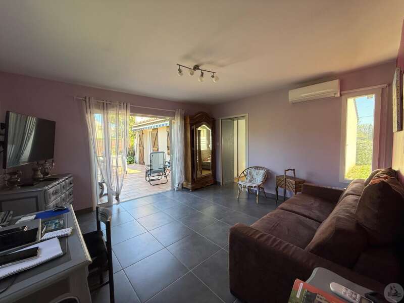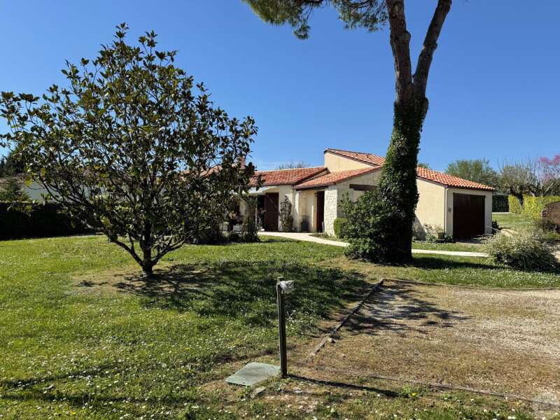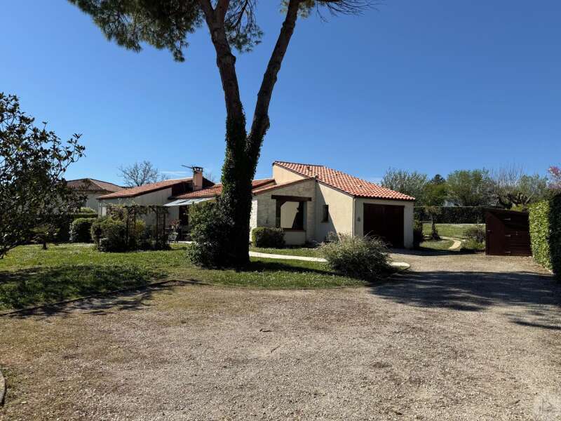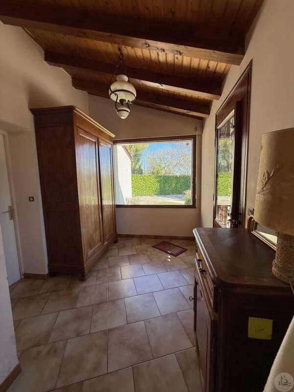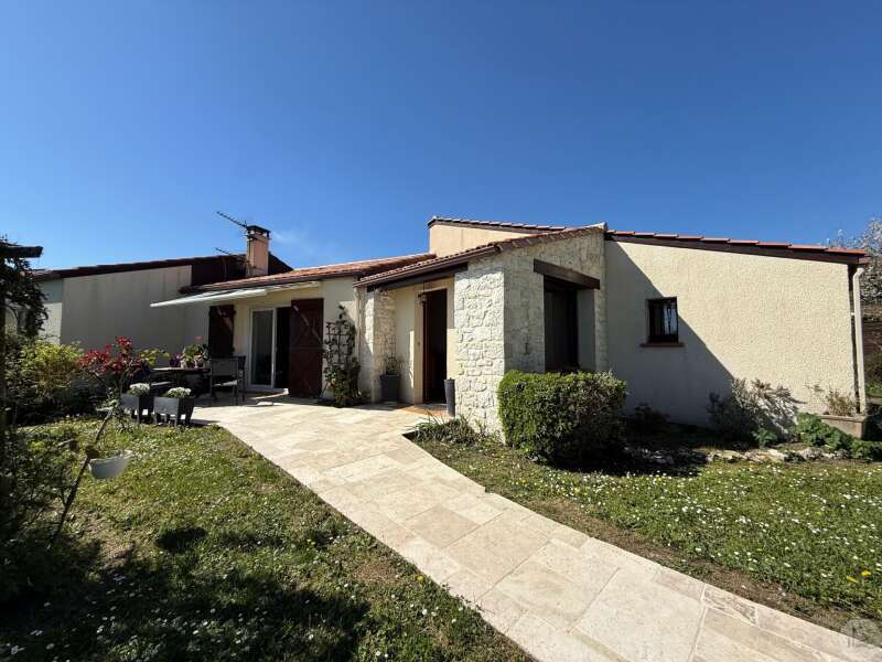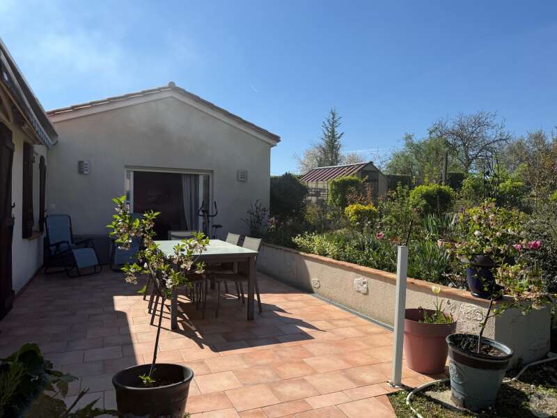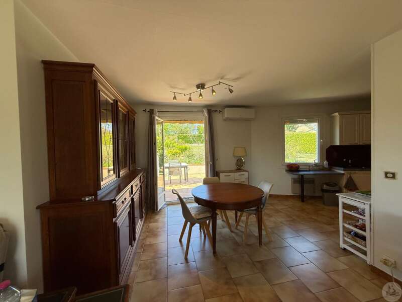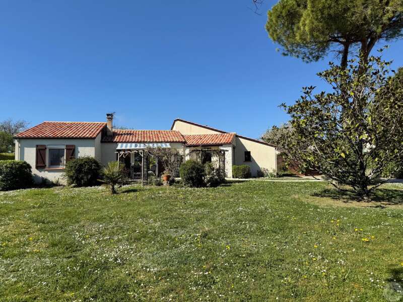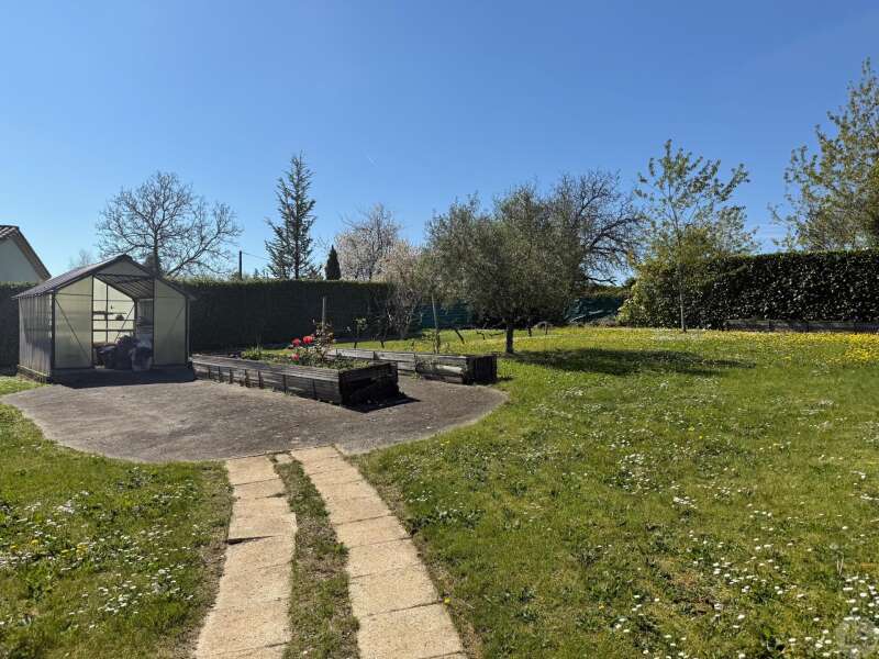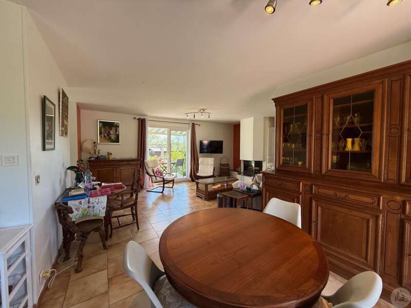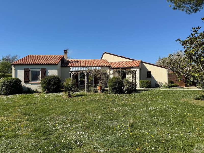 Maison de plain-pied des années 80 – Cadre verdoyant, proche commodités Charmante maison de plain-pied construite à la fin des années 80, offrant des volumes fonctionnels et une belle luminosité. Elle se compose d’un hall d’entrée ouvrant sur une pièce de vie traversante et lumineuse, avec cuisine équipée et insert, idéale pour des moments conviviaux. L’espace nuit propose trois chambres, dont une suite avec accès direct à la terrasse arrière, sans vis-à-vis, ainsi qu’un bureau. Une salle d’eau avec WC complète l’ensemble. Les prestations assurent un confort optimal : double vitrage, chauffage par climatisation réversible, raccordement au tout-à-l’égout, portail. À l’extérieur, vous profiterez de deux terrasses, d’un garage attenant, d’un abri de jardin et d’un magnifique terrain arboré d’environ 2 500 m². La maison se situe non loin des commerces, alliant tranquillité et praticité au quotidien.