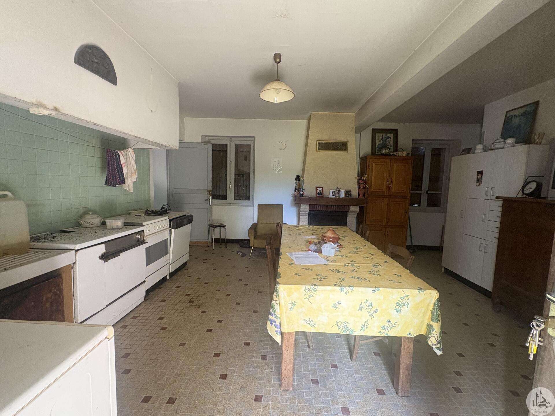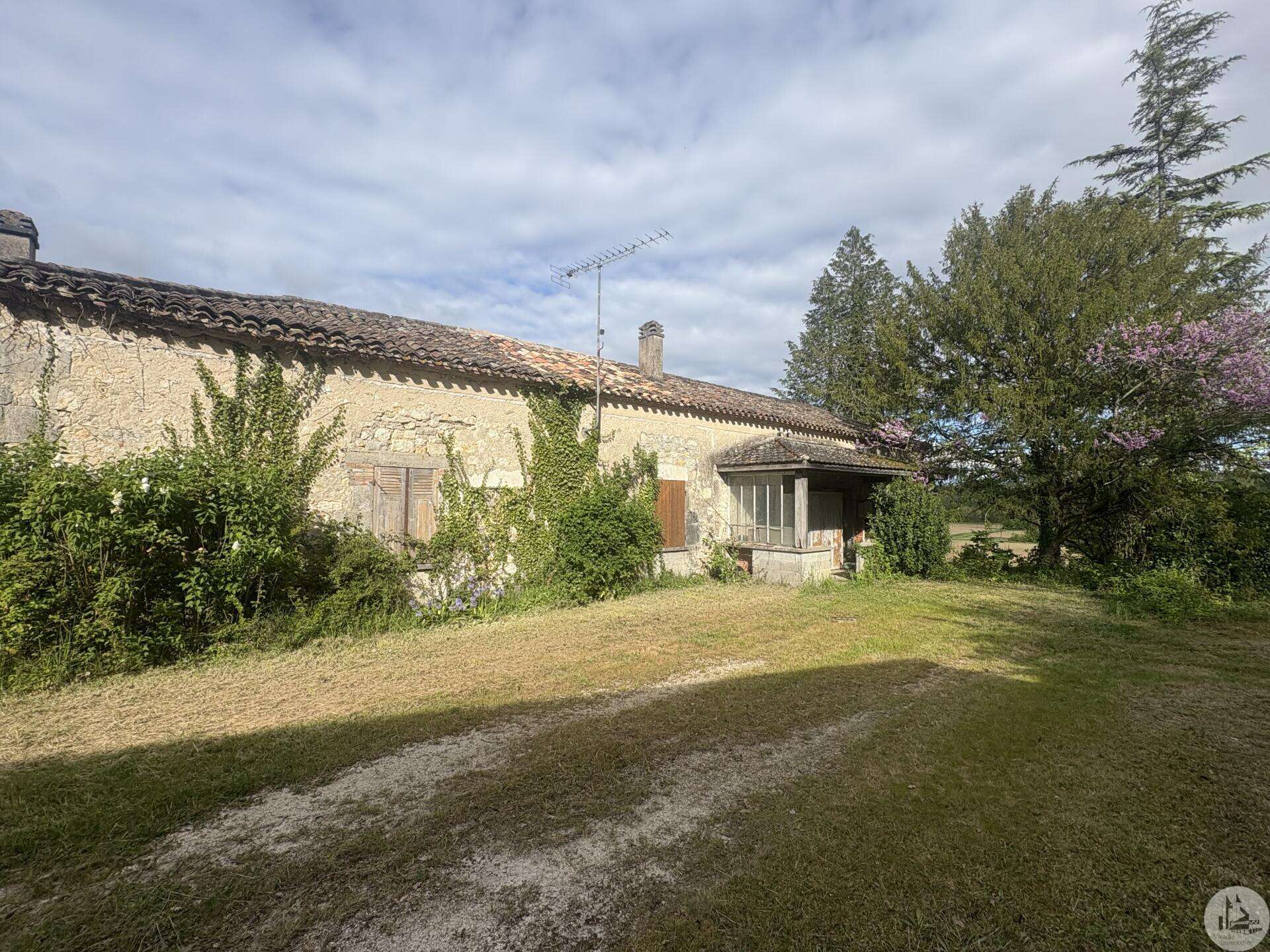 Maison en pierre à rénover avec dépendances sur un terrain de 6293 M2. L'habitation d'environ 140M2, de plain pied, se compose; D'une entrée sur cuisine/salle à manger avec insert à bois, un cellier, trois chambres, une salle de bains avec toilette, un bureau et un toilette séparé avec lavabo. En continuité, une pièce de stockage. Les huisseries sont en simple vitrage. Pas de système de chauffage. A l'étage, un grenier de la superficie totale de la maison. Les dépendances se composent; -D'un hangar fermé d'environ 300 M2 avec chape béton. -D'une cave. -D'un appentis fermé. A l'extérieur, une terrasse abritée donnant sur une cour centrale puis un parc arboré d'environ 6293 M2 non clos.