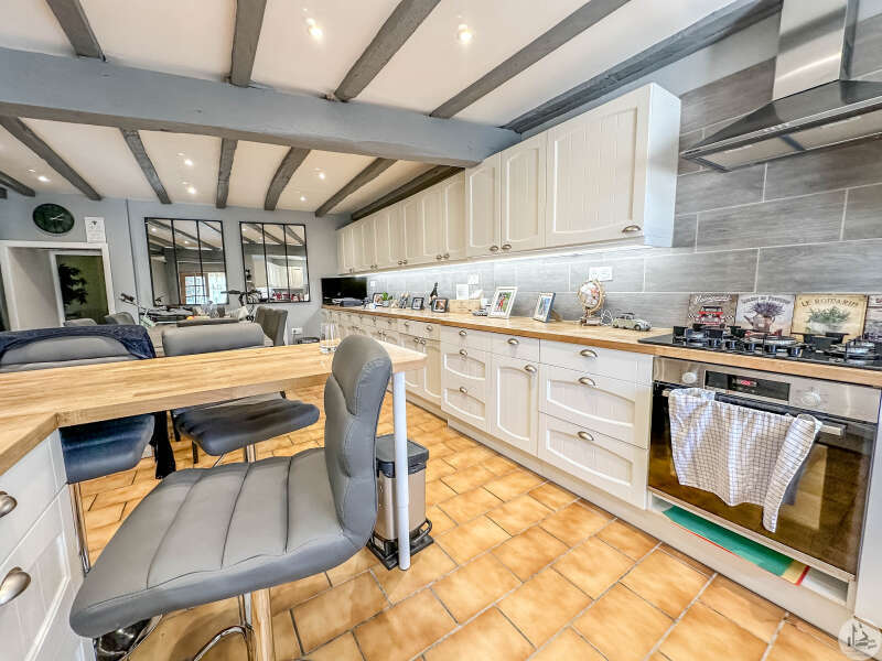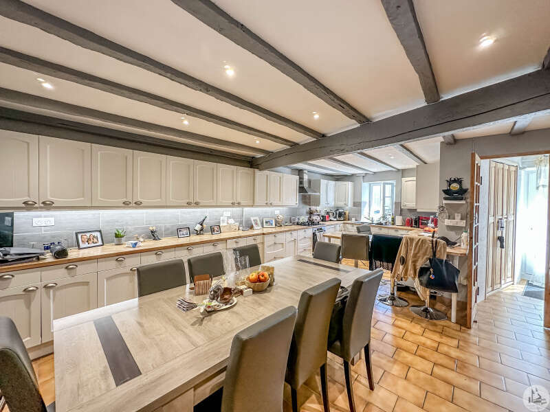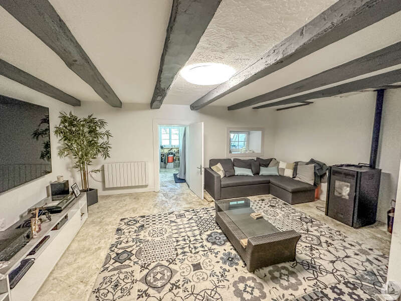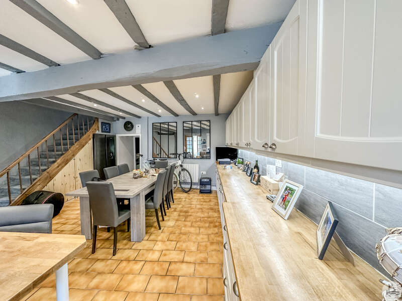 Charmante maison d'habitation entièrement rénovée comprenant : En rez-de-chaussée : - entrée avec placards (3m2) - cuisine avec coin repas (36m2) - salon (22,6m2) - salle de douches avec wc (3,7m2) Dégagement donnant sur la terrasse, une partie couverte une partie non couverte. Vue dégagée à l'arrière sur un jardin avoisinant. À l'étage : - un pallier lumineux (10,5m2) desservant une première chambre (25,2m2) avec sa propre salle de bains en suite (7,3m2), équipée d'un WC. Une terrasse (6,7m2) privée attenante à cette chambre offre un coin paisible pour profiter du soleil. - une pièce noire polyvalente, idéale pour un bureau ou une salle de loisirs (5,6m2). - une seconde chambre, également avec salle de douches en suite et WC (15,5m2 +3,3m2) Enfin, au deuxième étage, une charmante chambre mansardée (26,4m2 au sol). Divers : - double vitrage PVC - tout à l'égout - chauffage électrique