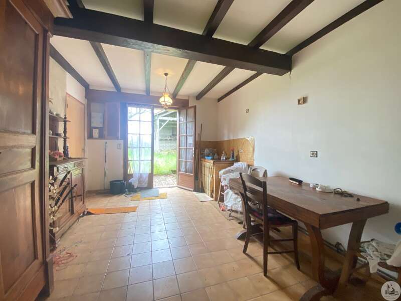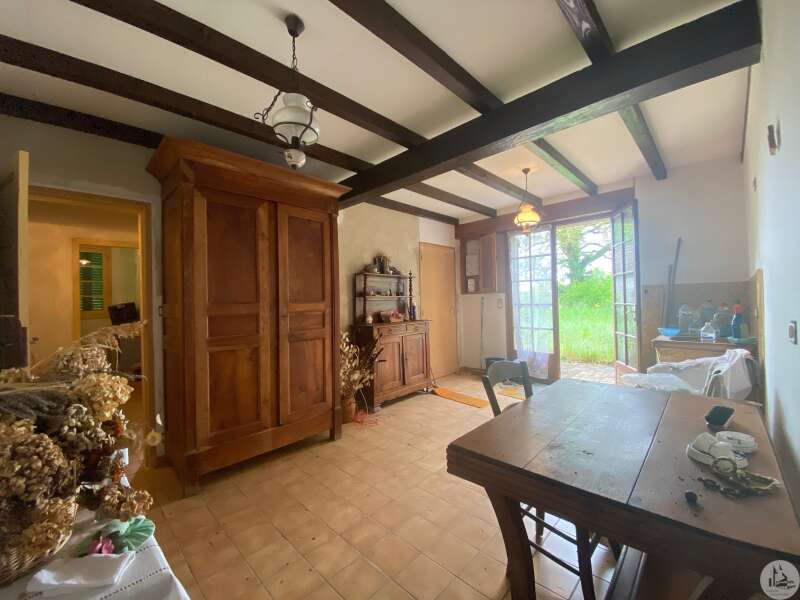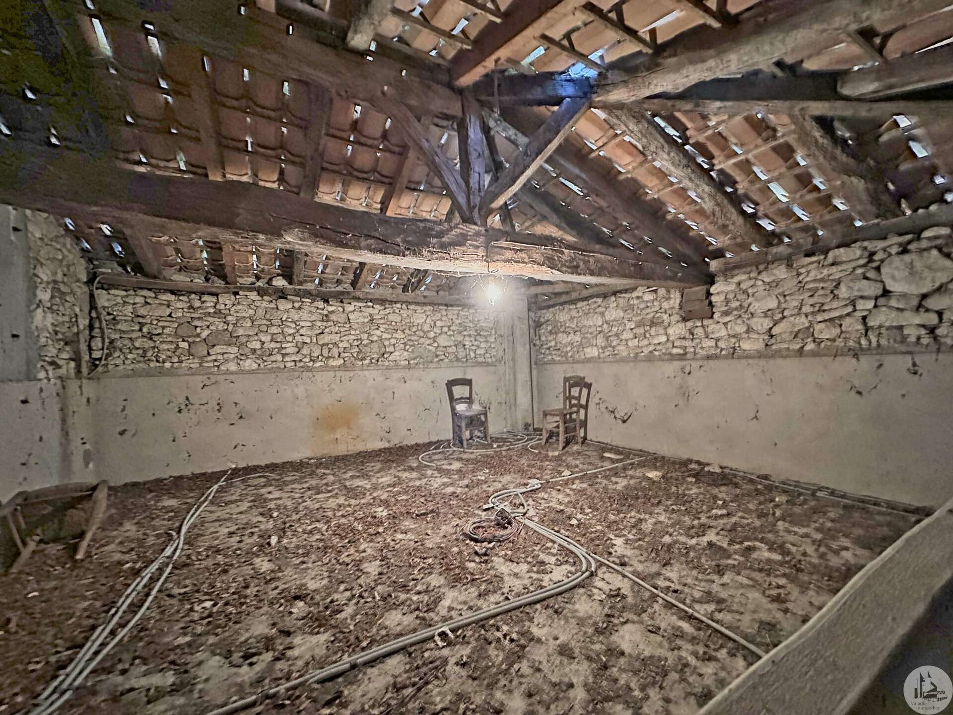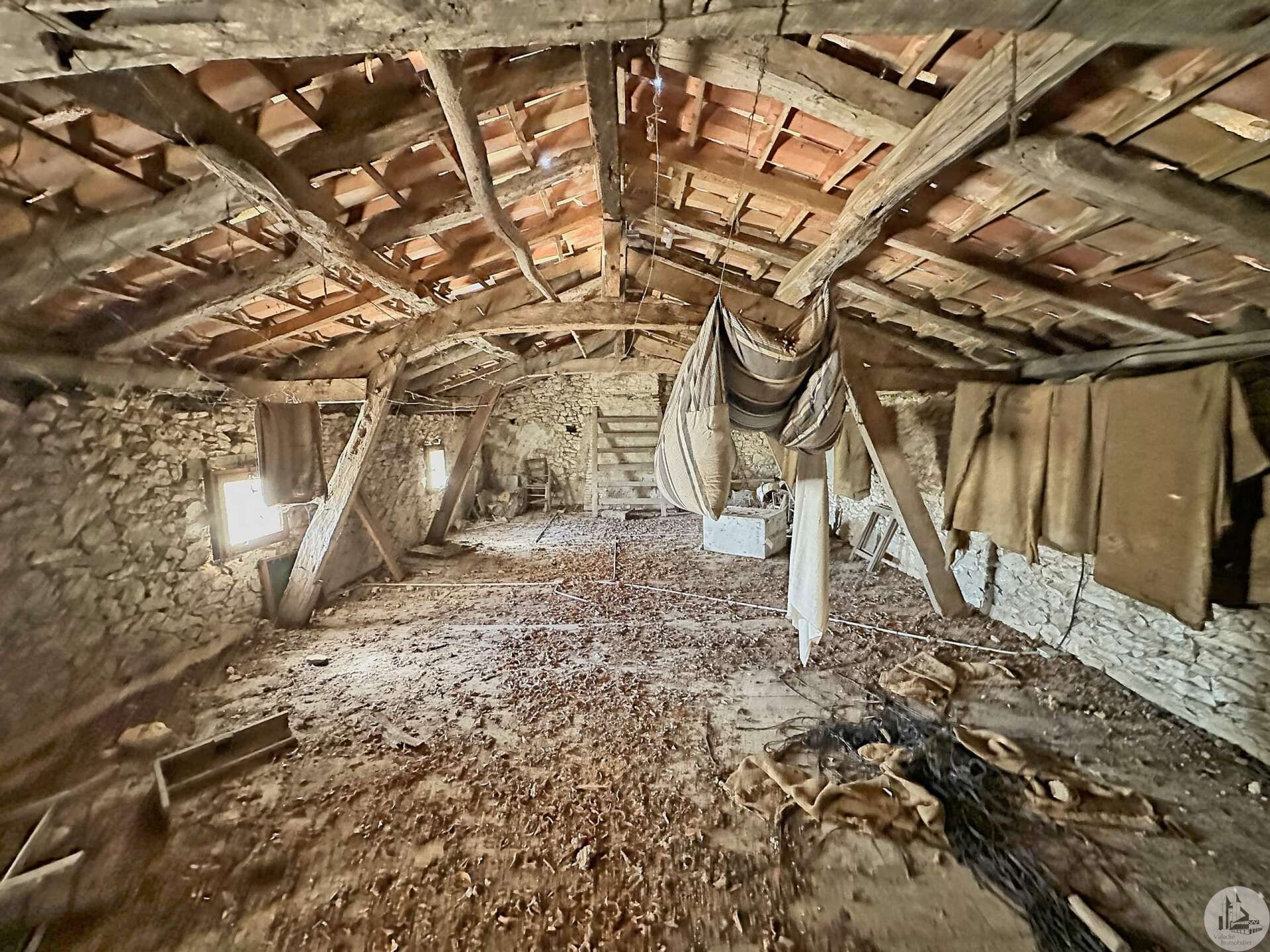 Laissez-vous séduire par cette maison d’habitation au charme rural, nichée au cœur d’un environnement paisible et verdoyant. Dès l’entrée, un hall avec tomettes au sol (8,3m2) vous accueille et vous guide vers une chaleureuse salle à manger (21,4m2) dotée d’une cheminée ouverte, idéale pour les soirées d’hiver au coin du feu. Deux marches mènent à un dégagement (2,5m2) qui dessert une première chambre lumineuse (14,6m2), un dressing pratique (4,5m2), une cuisine avec évier (16,8m2- compteur électrique) avec porte fenêtre donnant sur l'extérieur et escalier béton menant à une partie des combles (22m2), ainsi qu’une salle de bains (5,7m2) et des WC indépendants pour un confort optimal. Un débarras attenant de 25m2 avec murs en pierres apparentes et sol béton complète les pièces de vie et pourrait permettre d'agrandir la maison. A droite du hall d'entrée cette fois, une seconde chambre (23,5m2) et une autre pièce avec sol en terre battue (29,5m2) avec escalier en bois menant à l'autre partie des combles exploitables de 57m2 ce qui offre un beau potentiel d’aménagement selon vos envies. À l’extérieur, les amoureux de la pierre et des bâtis anciens seront conquis : une grande grange (185m2), un vaste hangar semi-ouvert avec garage, ainsi que d'anciens bâtis en pierres (porcheries et lavoir) apportent un cachet unique à l’ensemble. Un puits ancien devant la maison ajoute encore au charme bucolique du lieu. Ce bien rare est une opportunité idéale pour un projet de rénovation, une résidence principale avec atelier ou un rêve de maison de campagne. Venez découvrir ce cadre authentique où histoire et nature se rencontrent. Coup de cœur assuré !