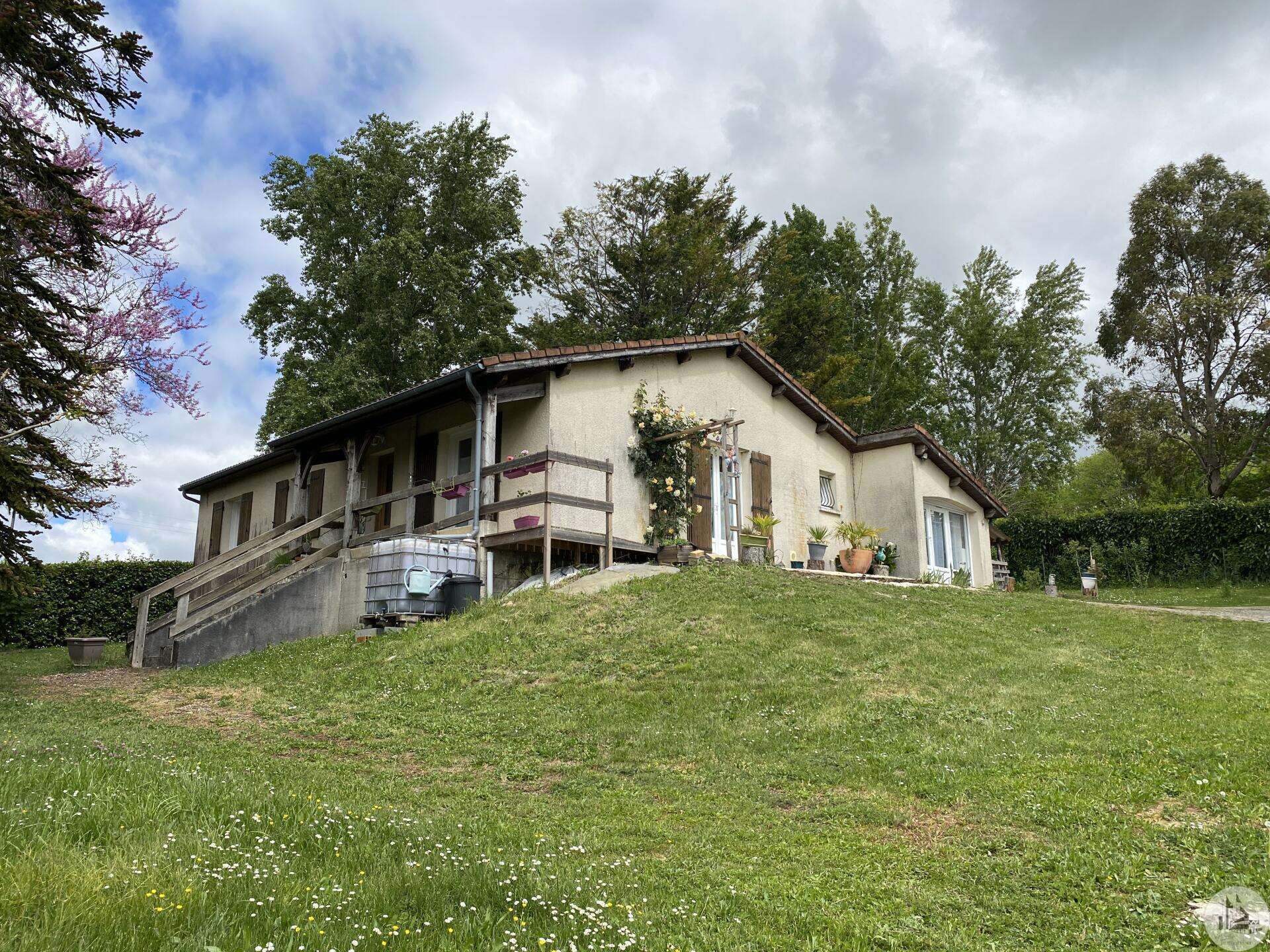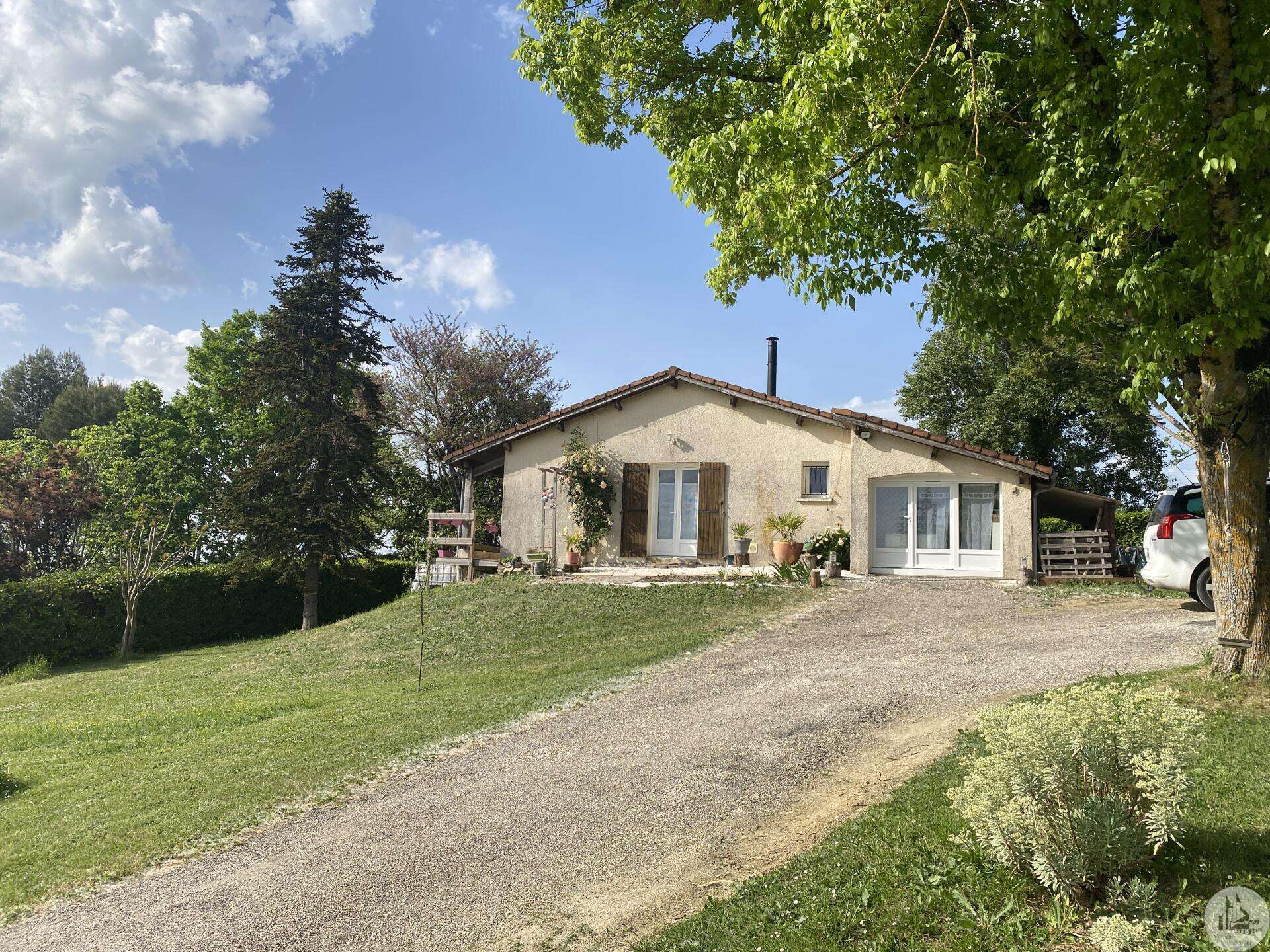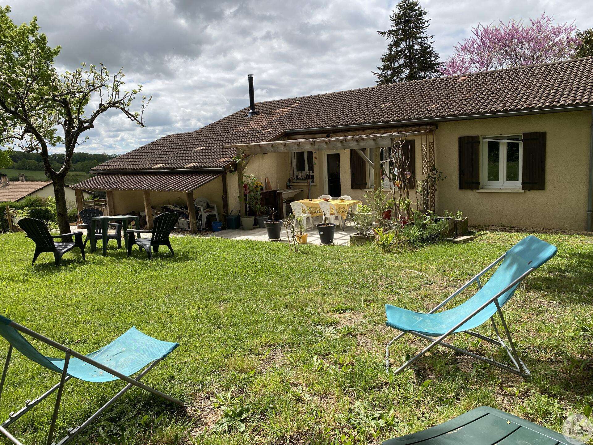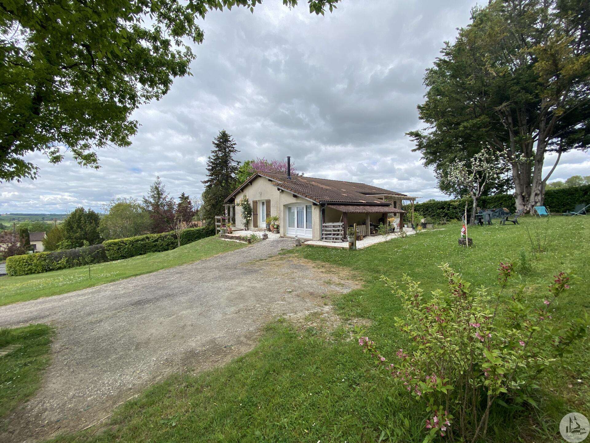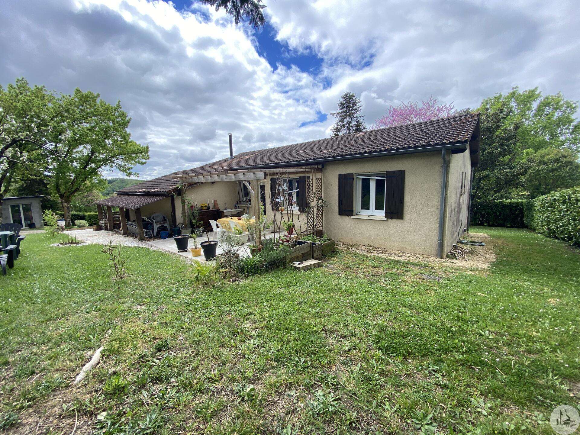 Maison de plain-pied récemment modernisée comprenant : cuisine (11,3 m2) ouverte sur salon/séjour (31,5 m2) avec poêle à bois, couloir (4,6 m2) distribuant 3 chambres (11,1 ; 9,5 et 9,3 m2) et une salle de bain - 4,1 m2 - (2 vasques, baignoire et sèche-serviette), un w.c. Une pièce à finir d'aménager (10,4 m2), une buanderie/cellier (5,4 m2) et l'ancien garage converti en chambre indépendante (13,6 m2) Ces 3 dernières pièces pourraient être aménagées pour y réaliser un studio indépendant ou recevoir du public (profession libérale par exemple) Chauffage par convecteurs électriques et poêle à bois (ce dernier chauffe toute la maison actuellement) Fenêtres en PVC double vitrage. Isolations des murs et du plafond refaites. Drains installés tout autour de la maison afin de l'assainir. Dépendance d'environ 15 m2. Jardin arboré, clôturé avec portail et portillon. Belle vue dominante.
