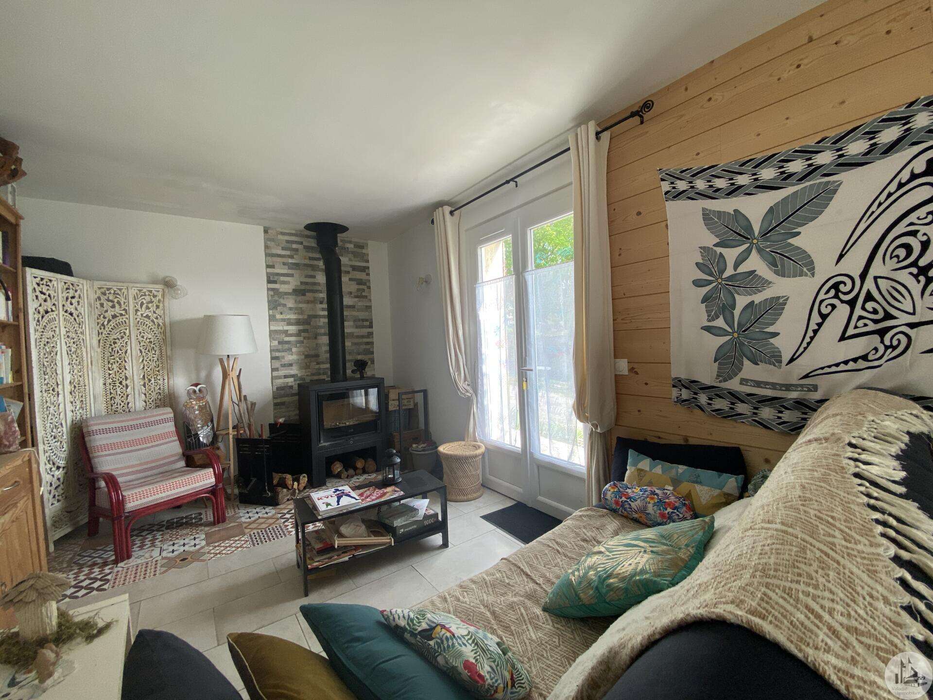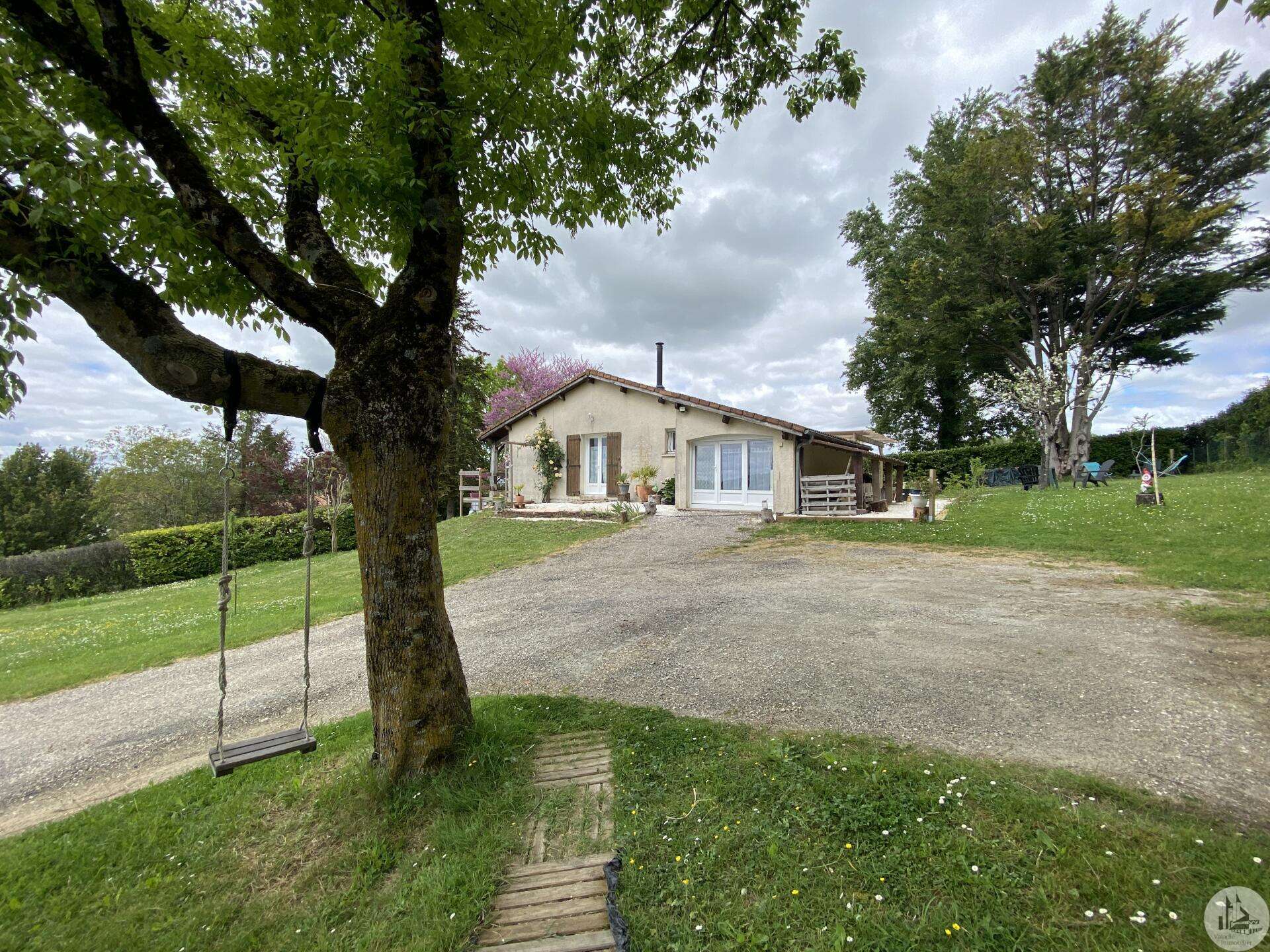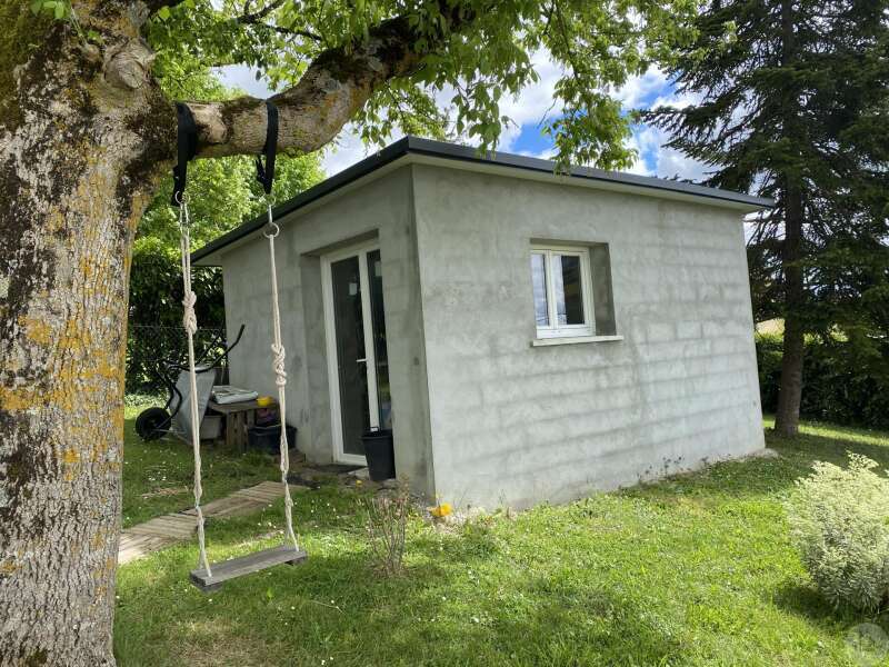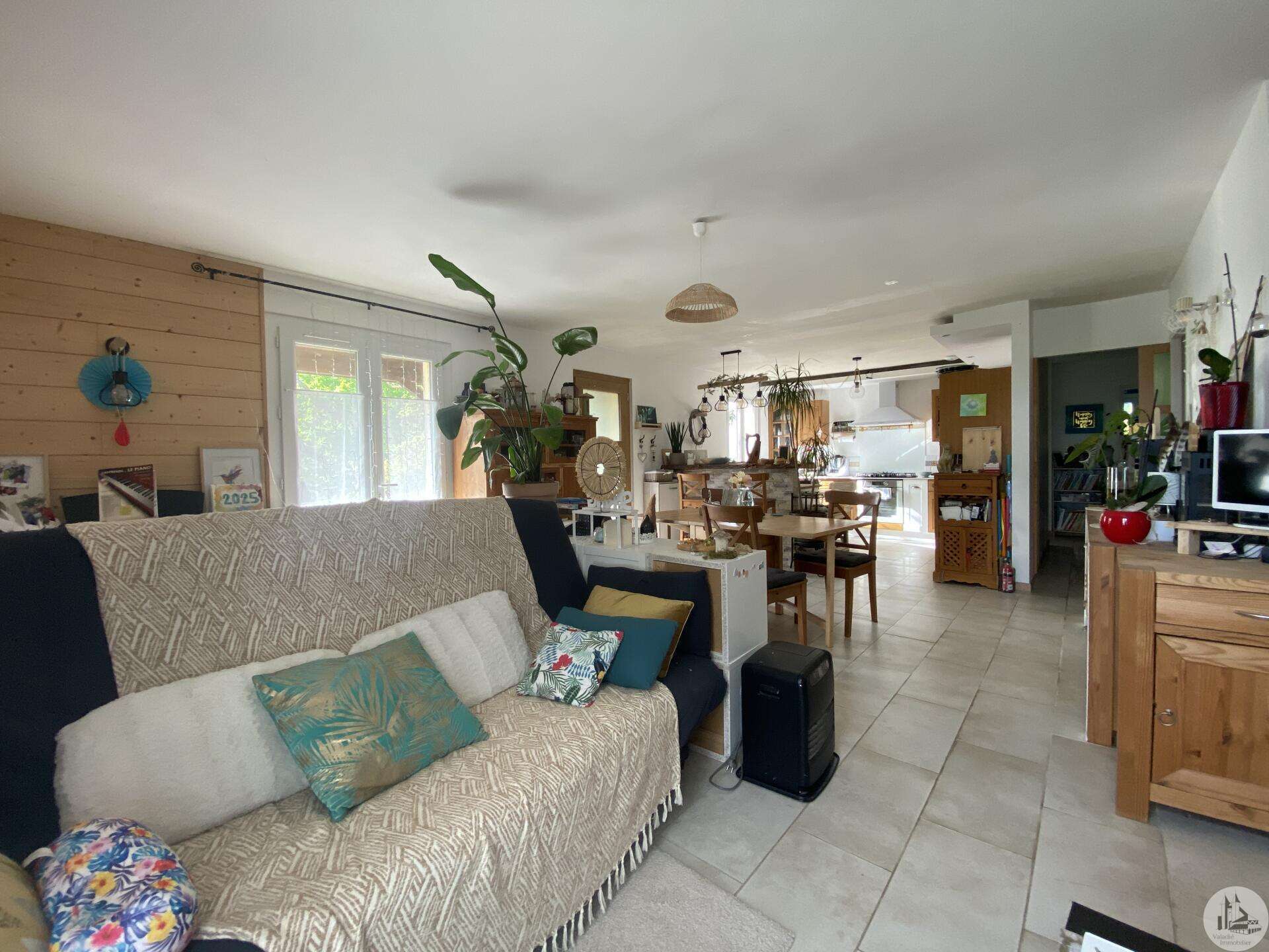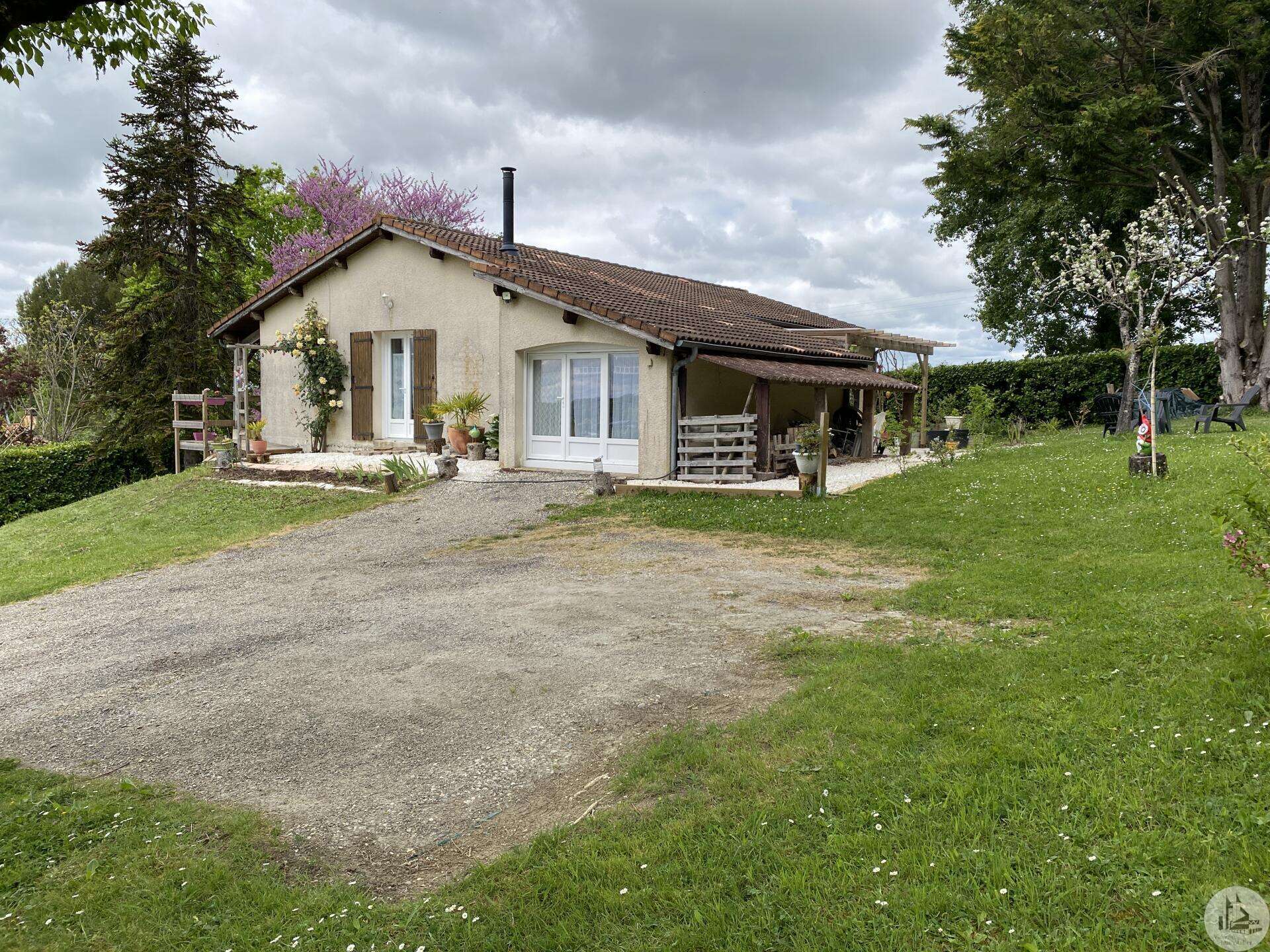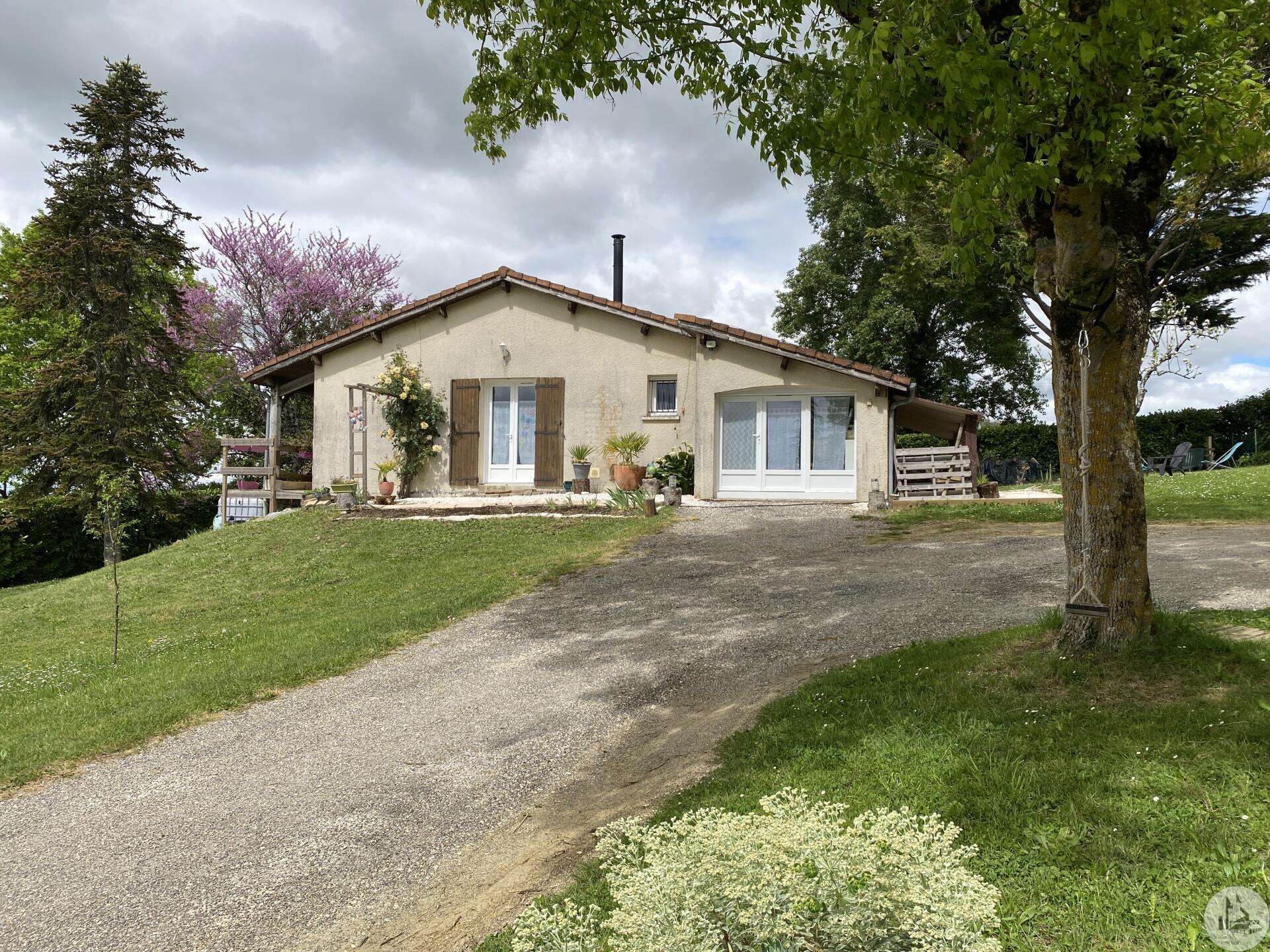 Maison de plain-pied récemment modernisée comprenant : cuisine (11,3 m2) ouverte sur salon/séjour (31,5 m2) avec poêle à bois, couloir (4,6 m2) distribuant 3 chambres (11,1 ; 9,5 et 9,3 m2) et une salle de bain - 4,1 m2 - (2 vasques, baignoire et sèche-serviette), un w.c. Une pièce à finir d'aménager (10,4 m2), une buanderie/cellier (5,4 m2) et l'ancien garage converti en chambre indépendante (13,6 m2) Ces 3 dernières pièces pourraient être aménagées pour y réaliser un studio indépendant ou recevoir du public (profession libérale par exemple) Chauffage par convecteurs électriques et poêle à bois (ce dernier chauffe toute la maison actuellement) Fenêtres en PVC double vitrage. Isolations des murs et du plafond refaites. Drains installés tout autour de la maison afin de l'assainir. Dépendance d'environ 15 m2. Jardin arboré, clôturé avec portail et portillon. Belle vue dominante.