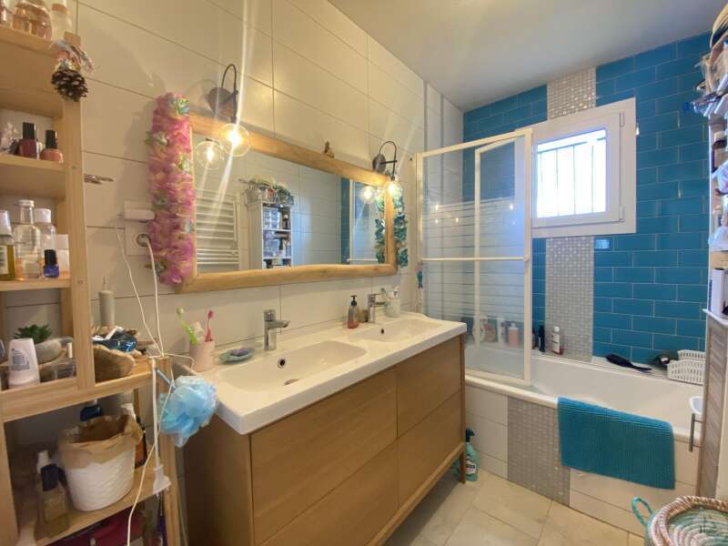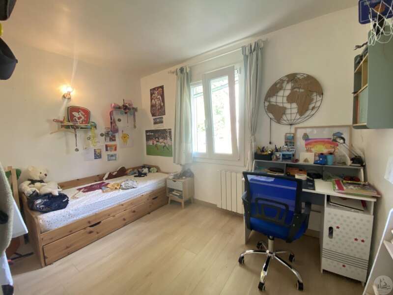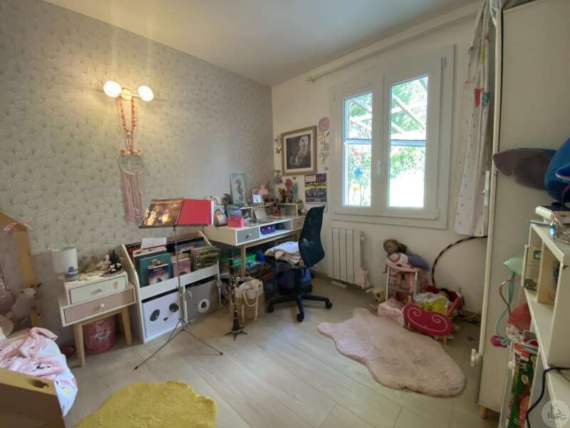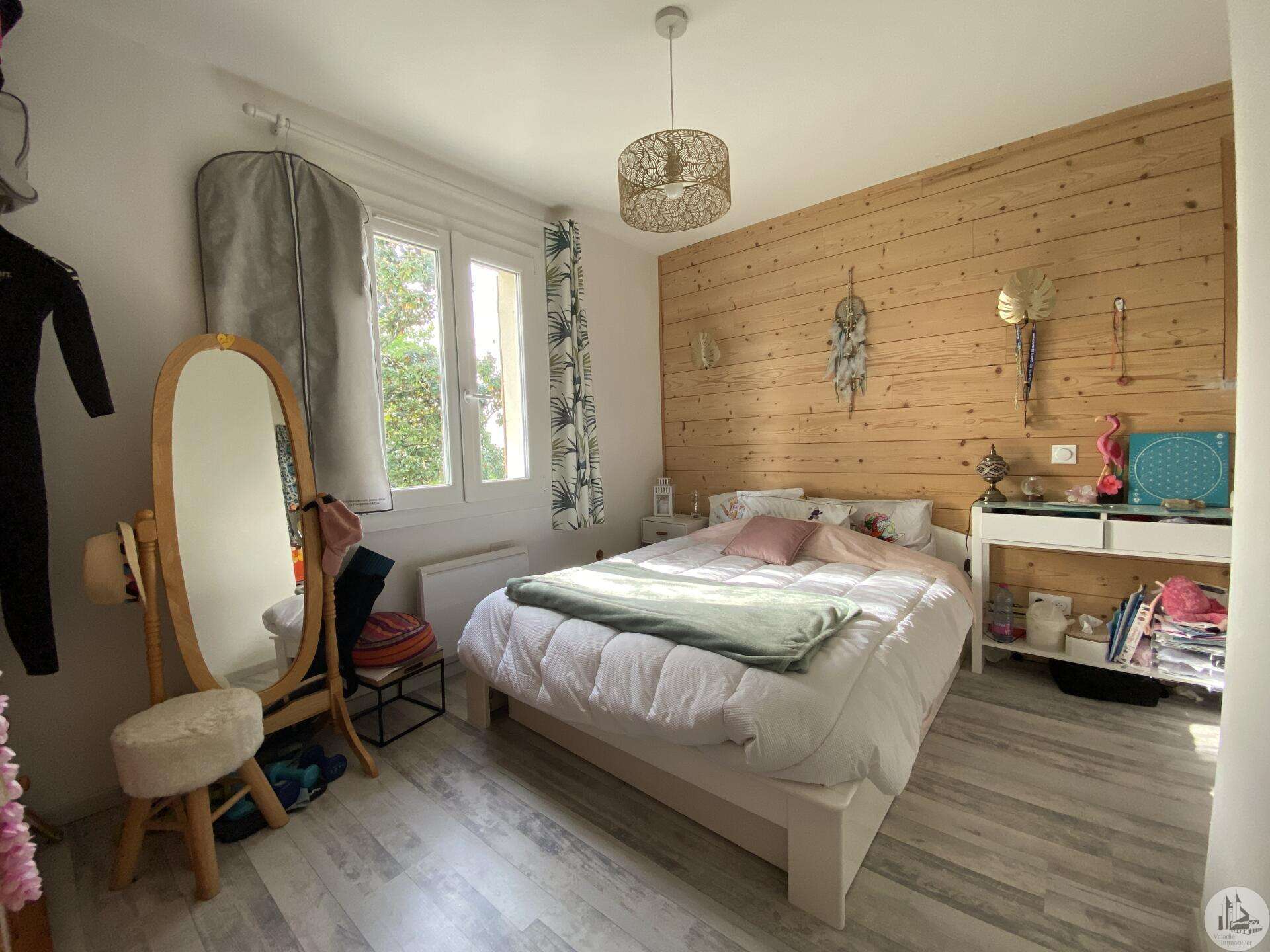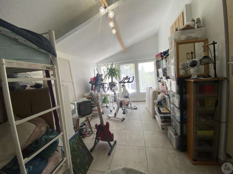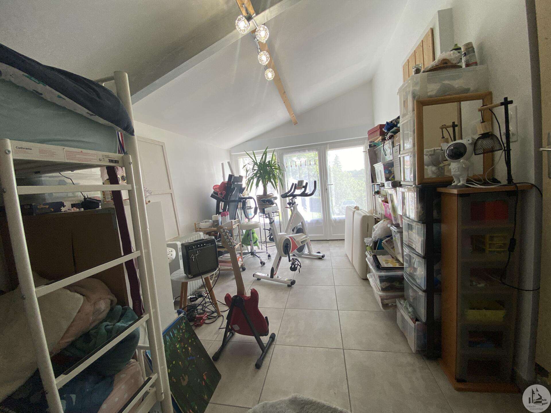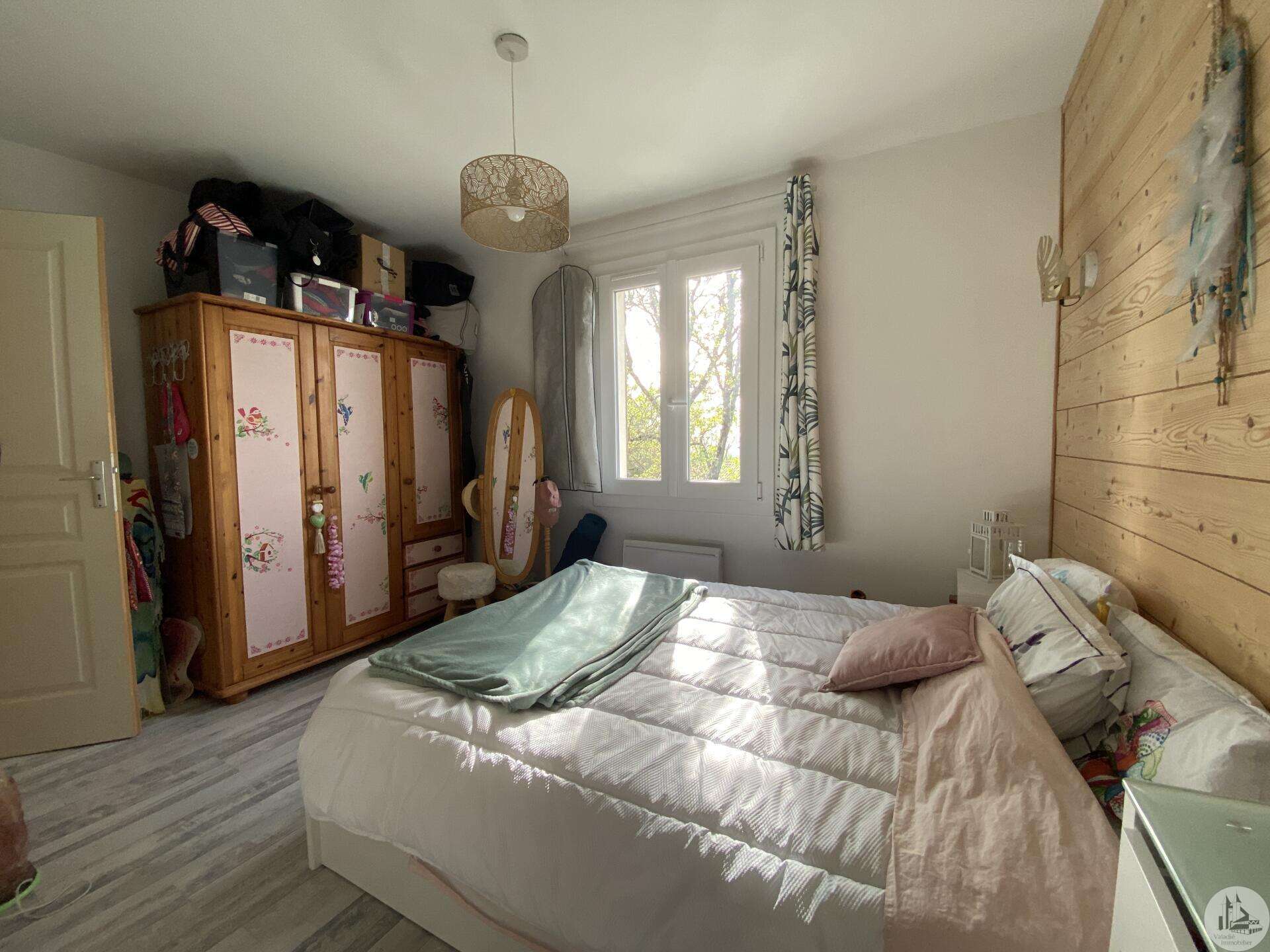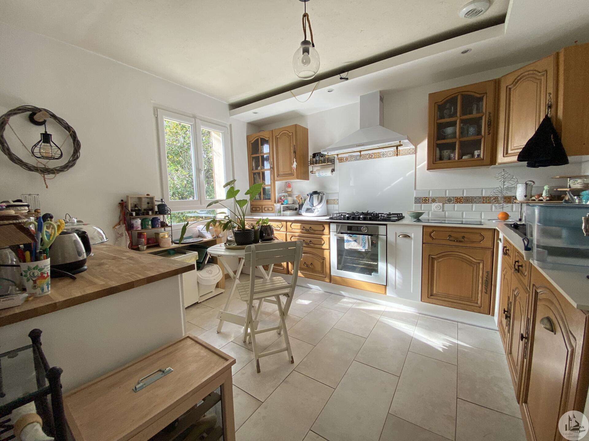 Maison de plain-pied récemment modernisée comprenant : cuisine (11,3 m2) ouverte sur salon/séjour (31,5 m2) avec poêle à bois, couloir (4,6 m2) distribuant 3 chambres (11,1 ; 9,5 et 9,3 m2) et une salle de bain - 4,1 m2 - (2 vasques, baignoire et sèche-serviette), un w.c. Une pièce à finir d'aménager (10,4 m2), une buanderie/cellier (5,4 m2) et l'ancien garage converti en chambre indépendante (13,6 m2) Ces 3 dernières pièces pourraient être aménagées pour y réaliser un studio indépendant ou recevoir du public (profession libérale par exemple) Chauffage par convecteurs électriques et poêle à bois (ce dernier chauffe toute la maison actuellement) Fenêtres en PVC double vitrage. Isolations des murs et du plafond refaites. Drains installés tout autour de la maison afin de l'assainir. Dépendance d'environ 15 m2. Jardin arboré, clôturé avec portail et portillon. Belle vue dominante.