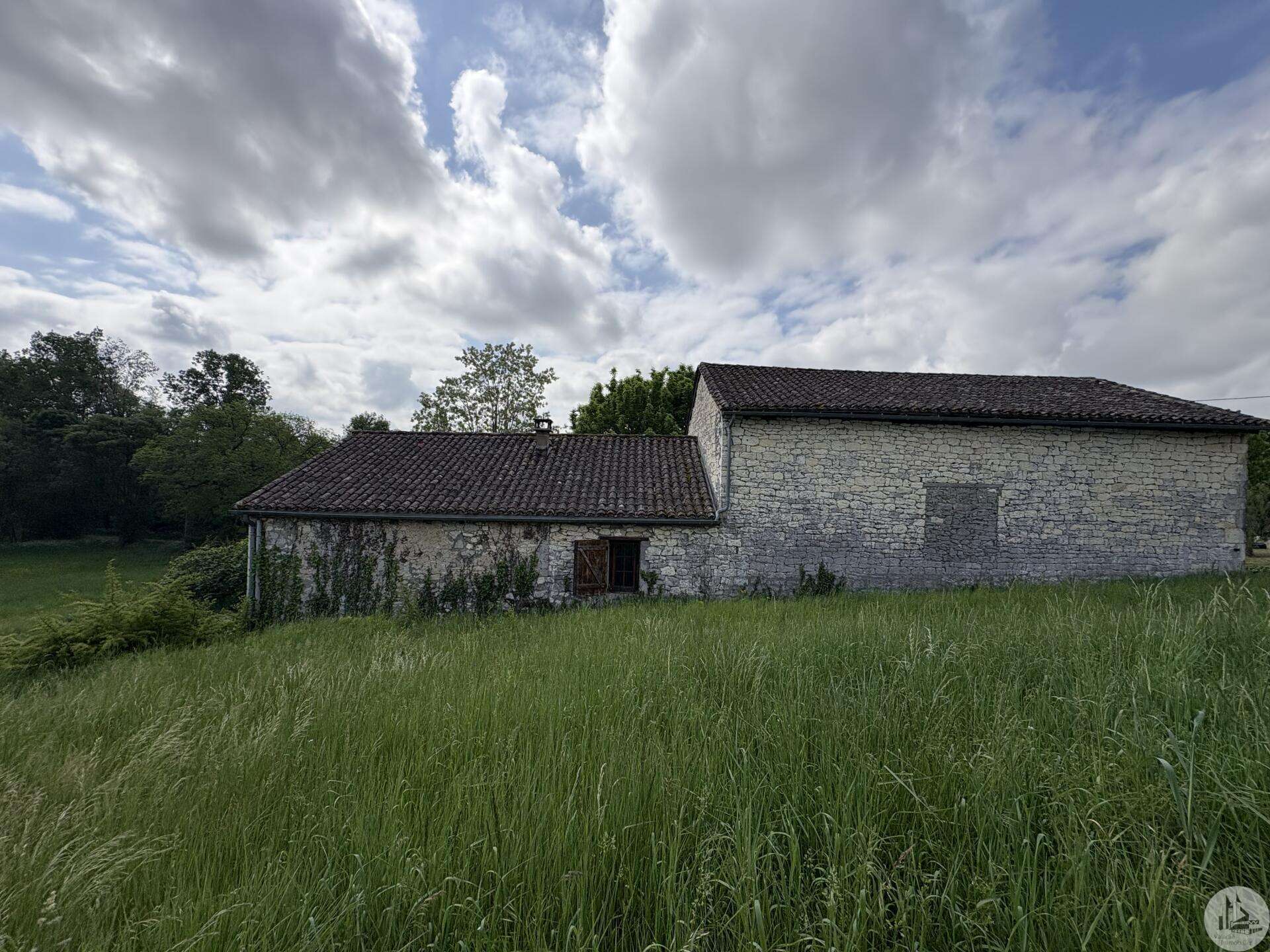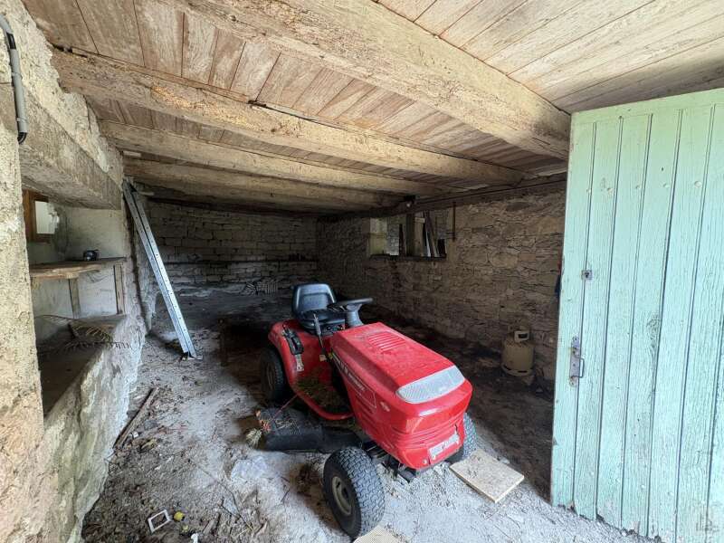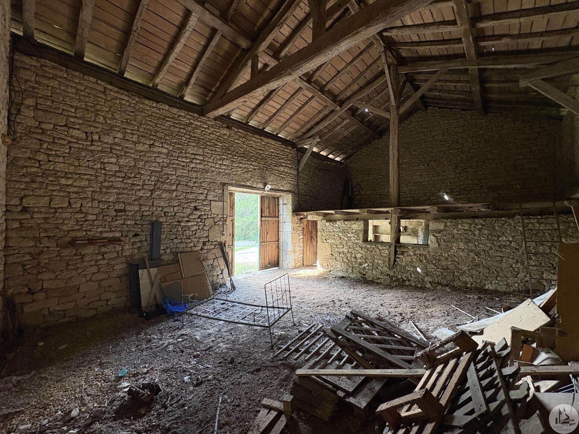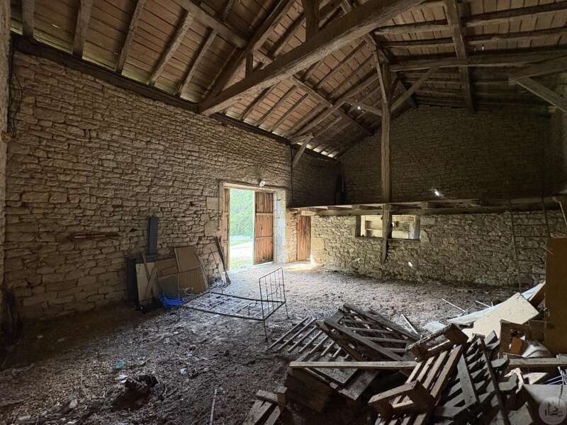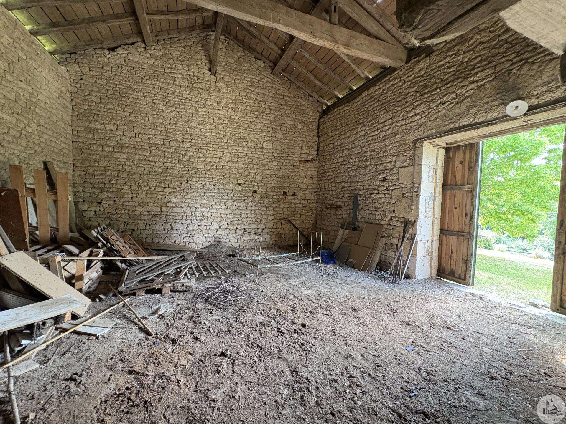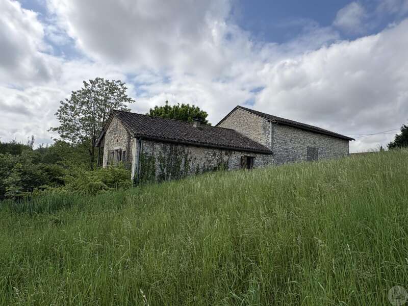 Maison en pierre avec dépendances sur un terrain de 4020 M2. L'habitation, d'environ 55 M2 de plain pied, se compose; D'une entrée sur salon/salle à manger avec cuisine ouverte et poêle à bois, deux chambres, une salle d'eau et un toilette séparé. Les huisseries sont en simple vitrage bois. Chauffage electrique. Les dépendances, en continuité de la maison, se composent; -D'une grange. -D'un atelier séparé. A l'exterieur, une terrasse abritée donnant sur un parc arboré avec puits. Systéme d'assainissement individuel.