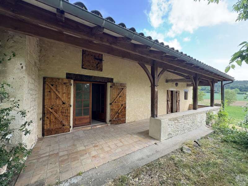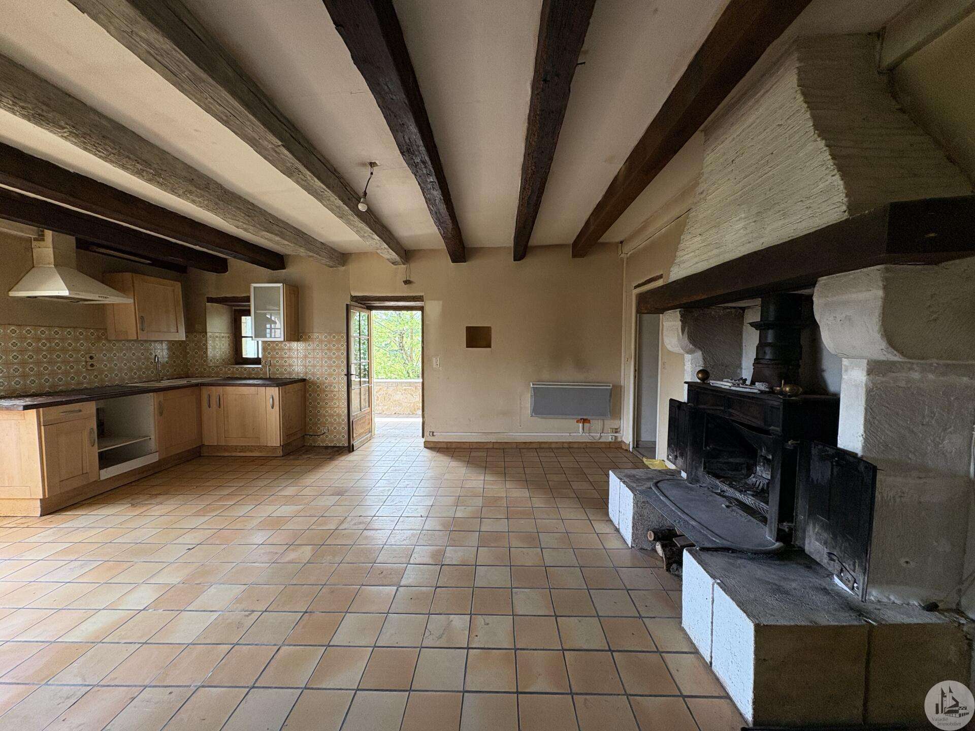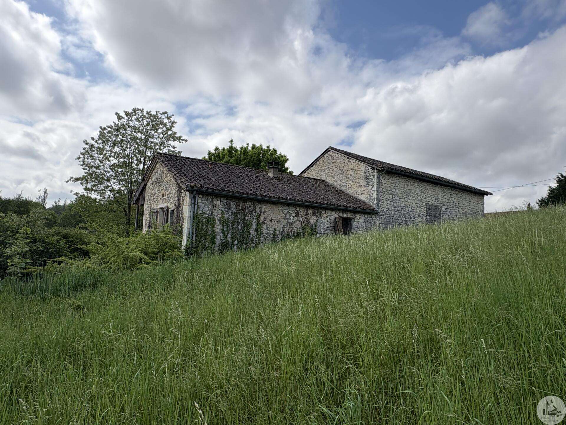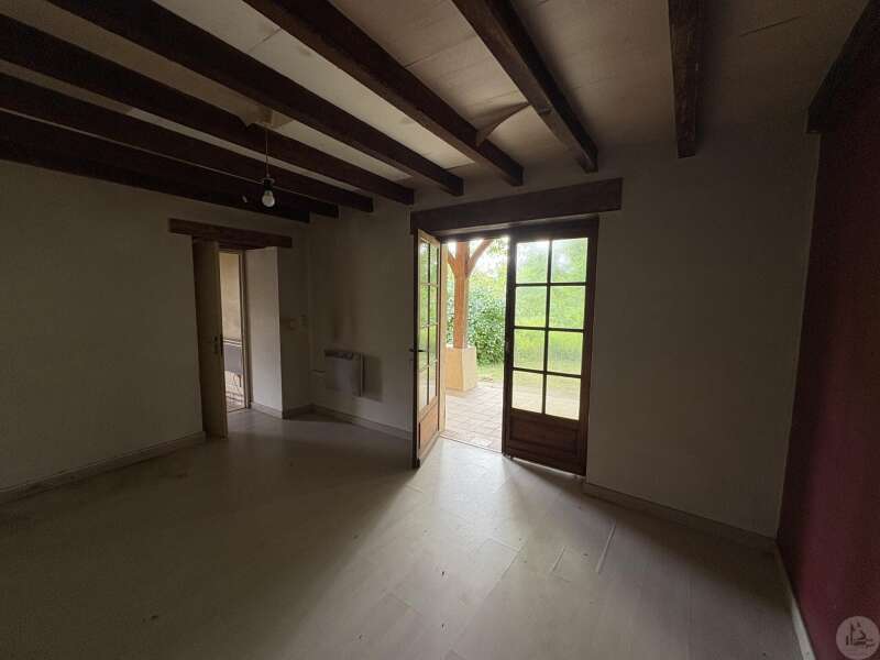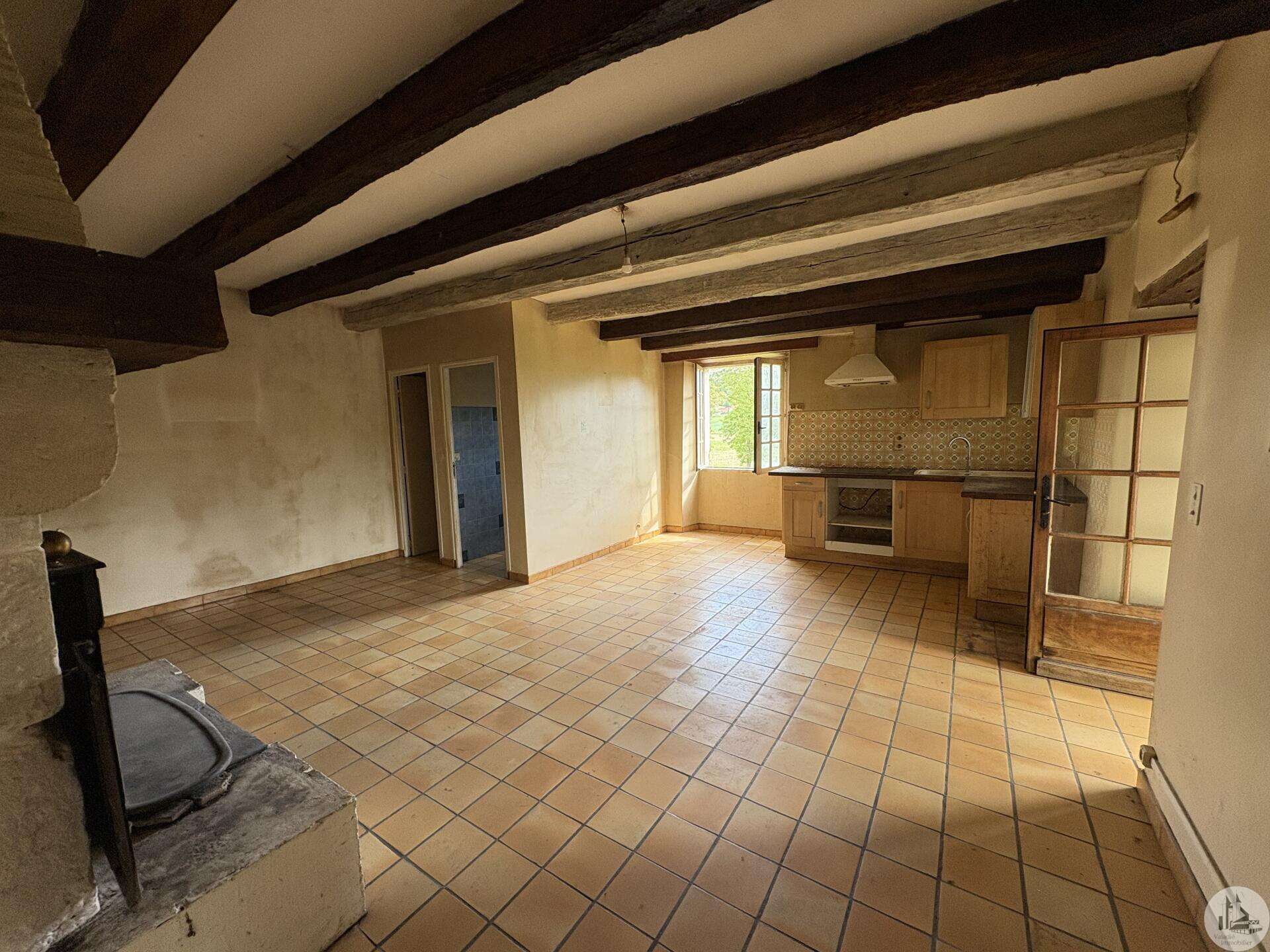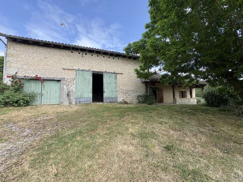 Maison en pierre avec dépendances sur un terrain de 4020 M2. L'habitation, d'environ 55 M2 de plain pied, se compose; D'une entrée sur salon/salle à manger avec cuisine ouverte et poêle à bois, deux chambres, une salle d'eau et un toilette séparé. Les huisseries sont en simple vitrage bois. Chauffage electrique. Les dépendances, en continuité de la maison, se composent; -D'une grange. -D'un atelier séparé. A l'exterieur, une terrasse abritée donnant sur un parc arboré avec puits. Systéme d'assainissement individuel.