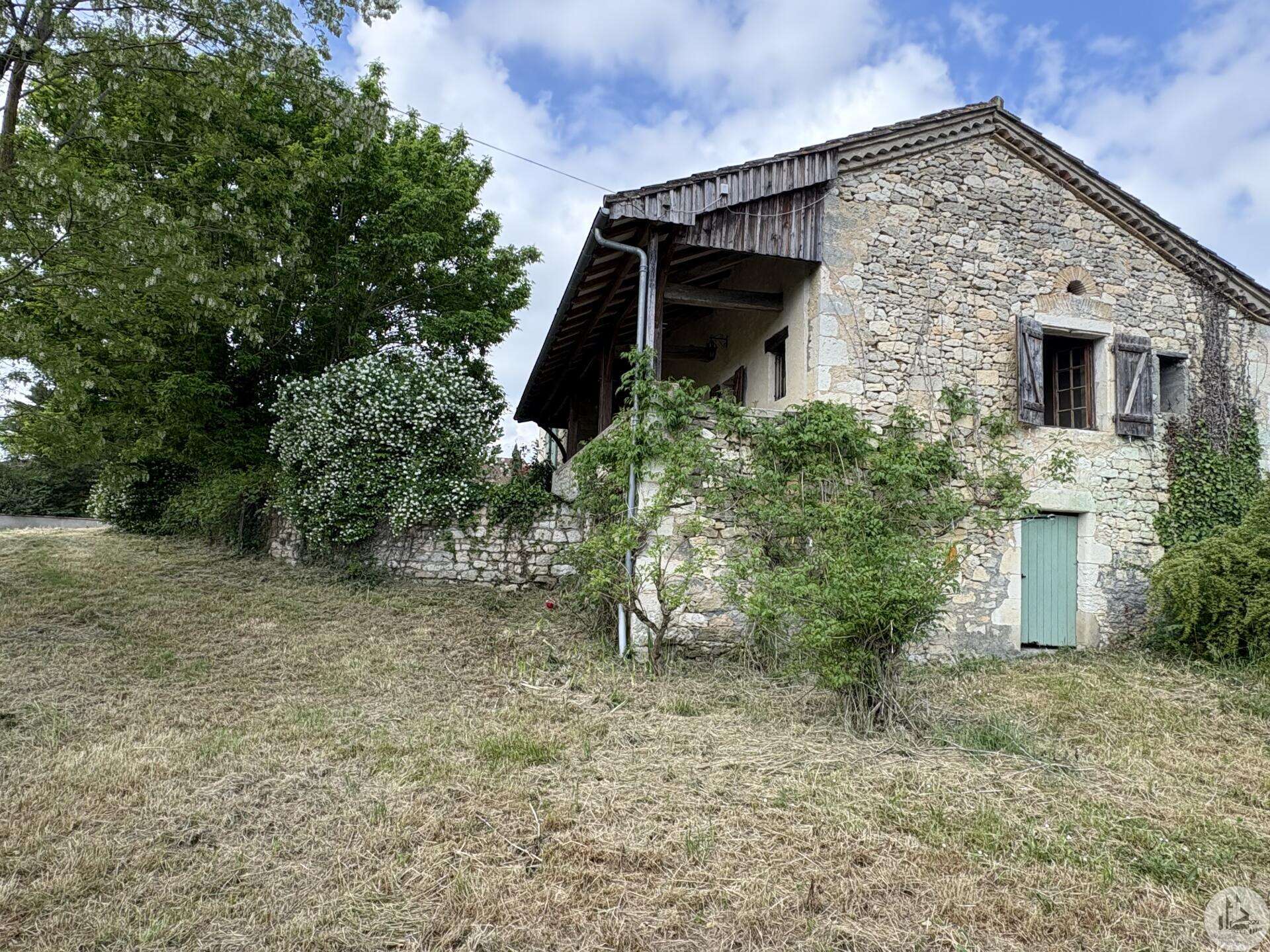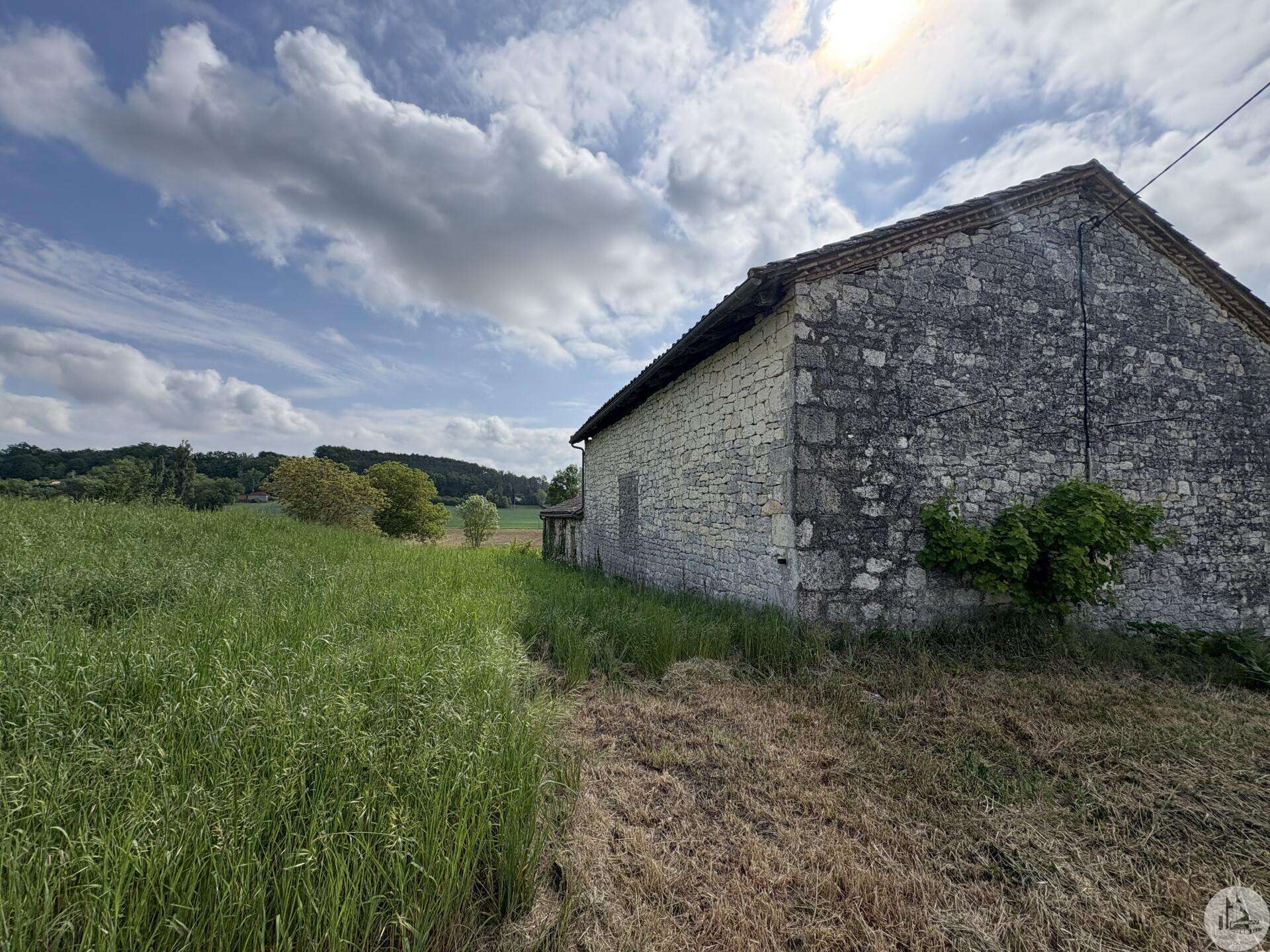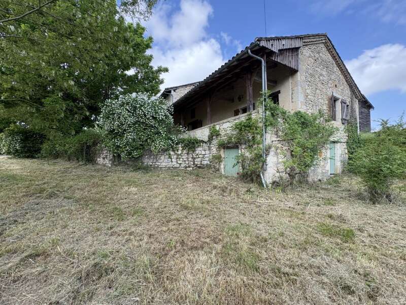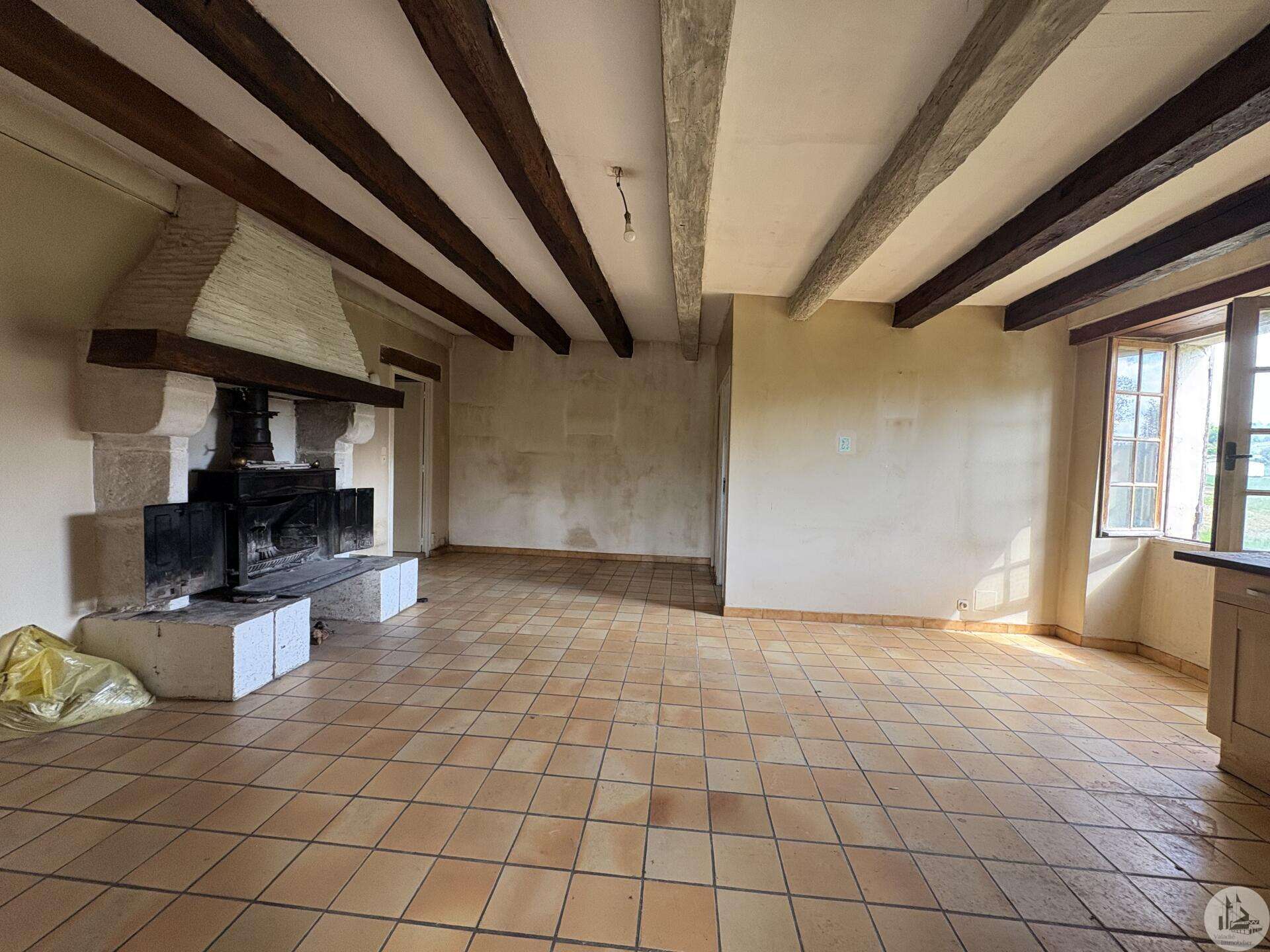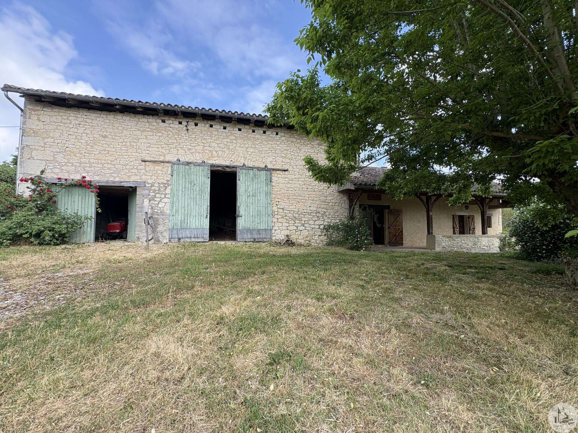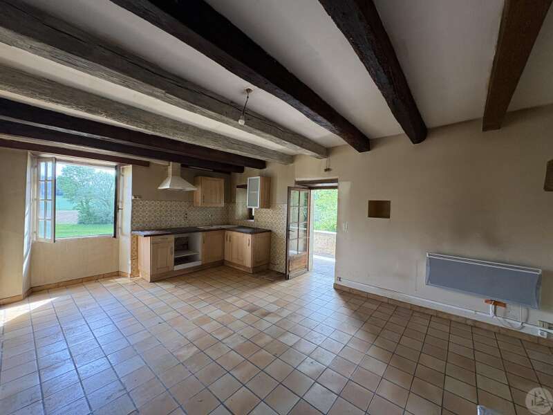 Maison en pierre avec dépendances sur un terrain de 4020 M2. L'habitation, d'environ 55 M2 de plain pied, se compose; D'une entrée sur salon/salle à manger avec cuisine ouverte et poêle à bois, deux chambres, une salle d'eau et un toilette séparé. Les huisseries sont en simple vitrage bois. Chauffage electrique. Les dépendances, en continuité de la maison, se composent; -D'une grange. -D'un atelier séparé. A l'exterieur, une terrasse abritée donnant sur un parc arboré avec puits. Systéme d'assainissement individuel.