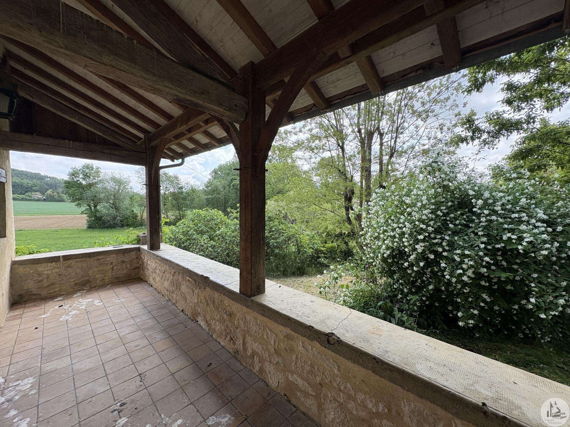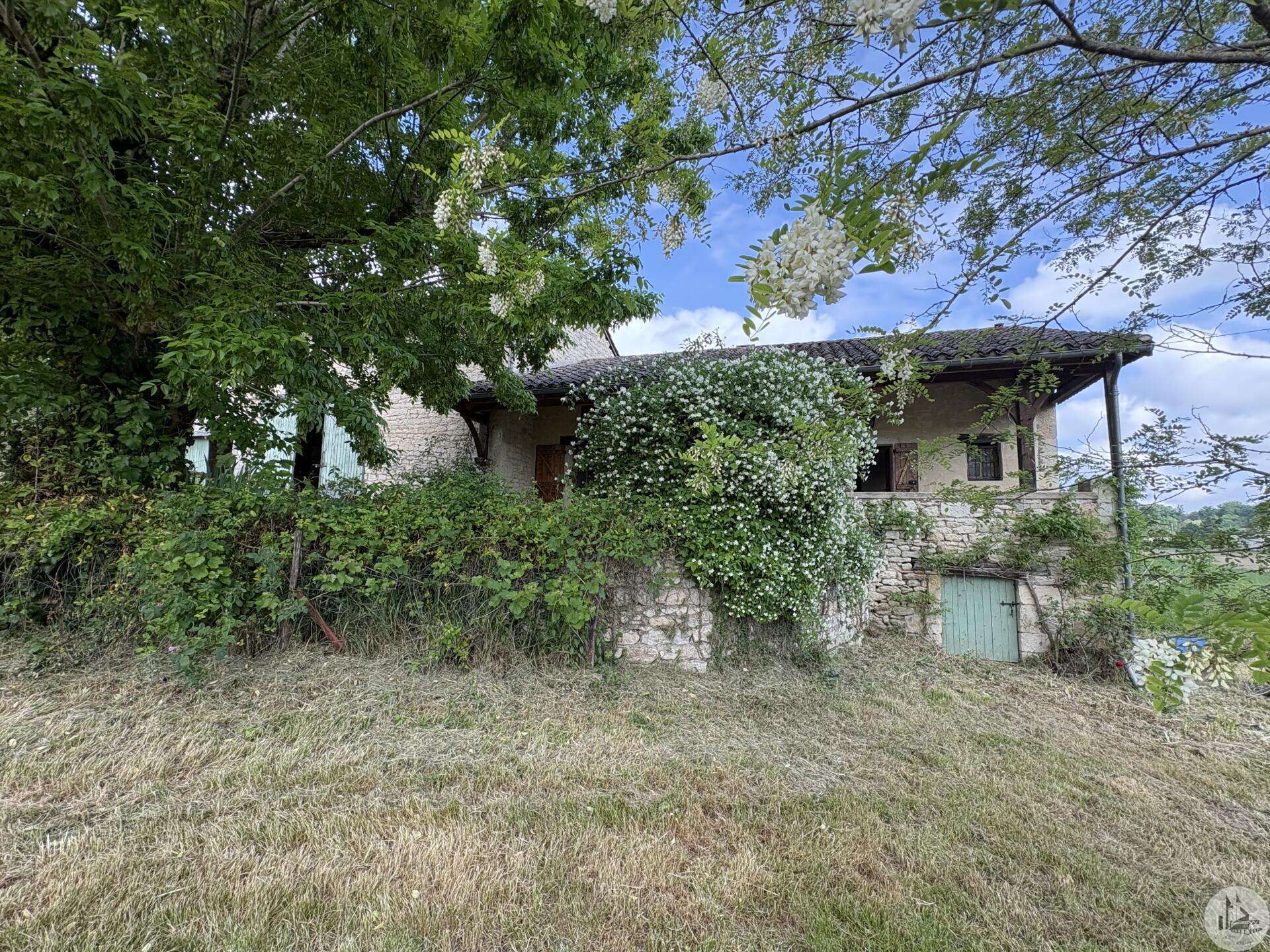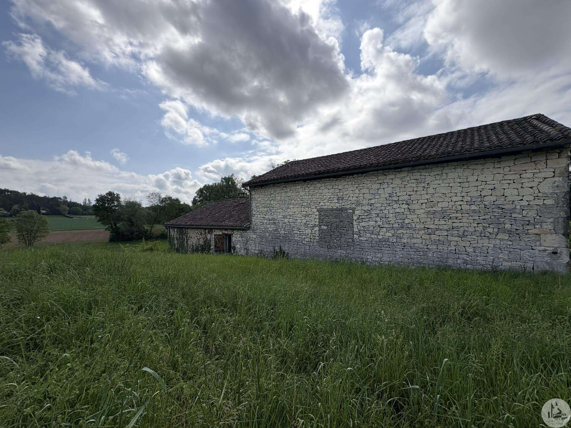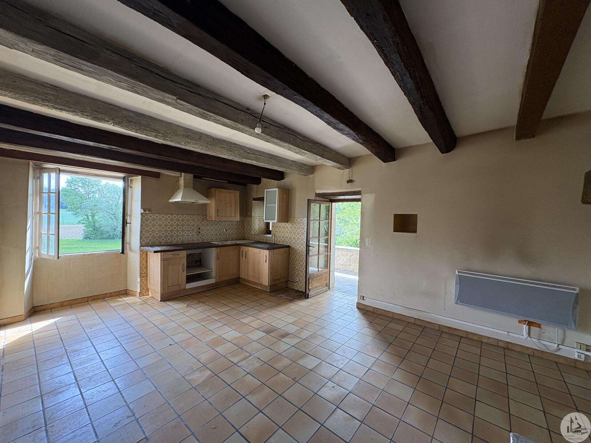 Maison en pierre avec dépendances sur un terrain de 4020 M2. L'habitation, d'environ 55 M2 de plain pied, se compose; D'une entrée sur salon/salle à manger avec cuisine ouverte et poêle à bois, deux chambres, une salle d'eau et un toilette séparé. Les huisseries sont en simple vitrage bois. Chauffage electrique. Les dépendances, en continuité de la maison, se composent; -D'une grange. -D'un atelier séparé. A l'exterieur, une terrasse abritée donnant sur un parc arboré avec puits. Systéme d'assainissement individuel.