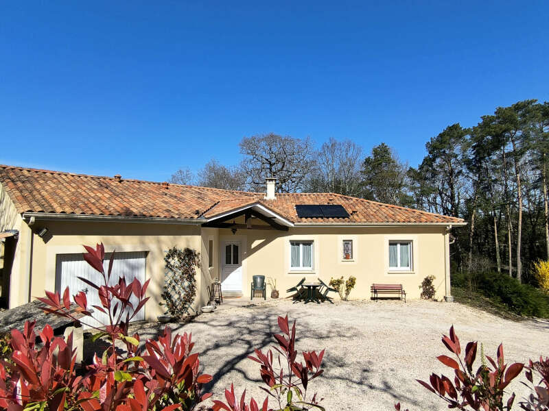 Entre Sarlat et Souillac, à 10 minutes d'une ville avec tous commerces, maison 112 m², de plain pied, grande pièce à vivre lumineuse, 3 chambres et 1 bureau, garage isolé . Piscine et abri voiture sur terrain paysagé et boisé en partie.