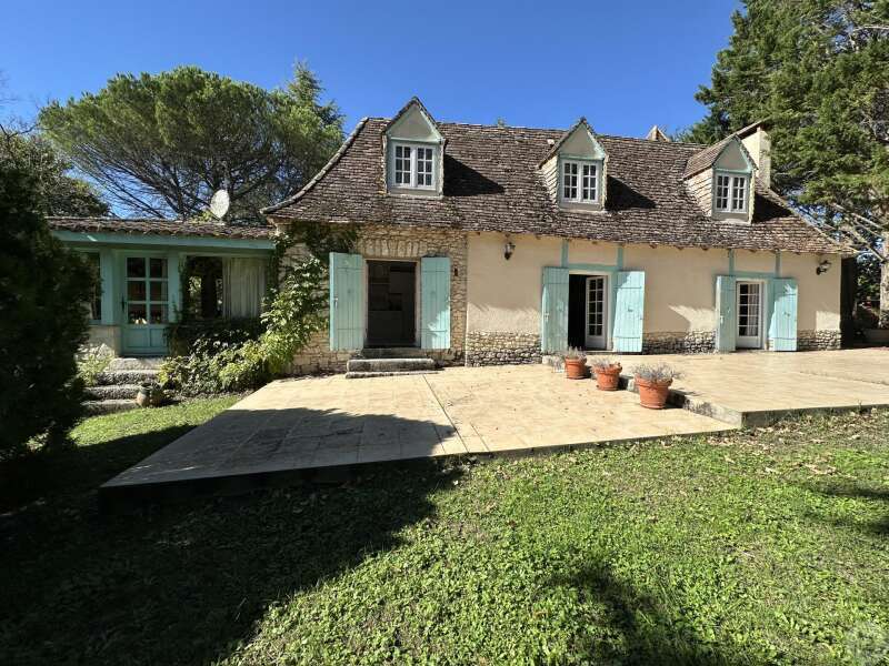Eénlaags huis op een vlak, bebost perceel van 4000 m². Nabij Villereal. Het huis, dat renovatie behoeft, is een vrijstaande bungalow van circa 100 m², gebouwd in de jaren 80 in baksteen en gepleisterd. Aangrenzende werkplaats.