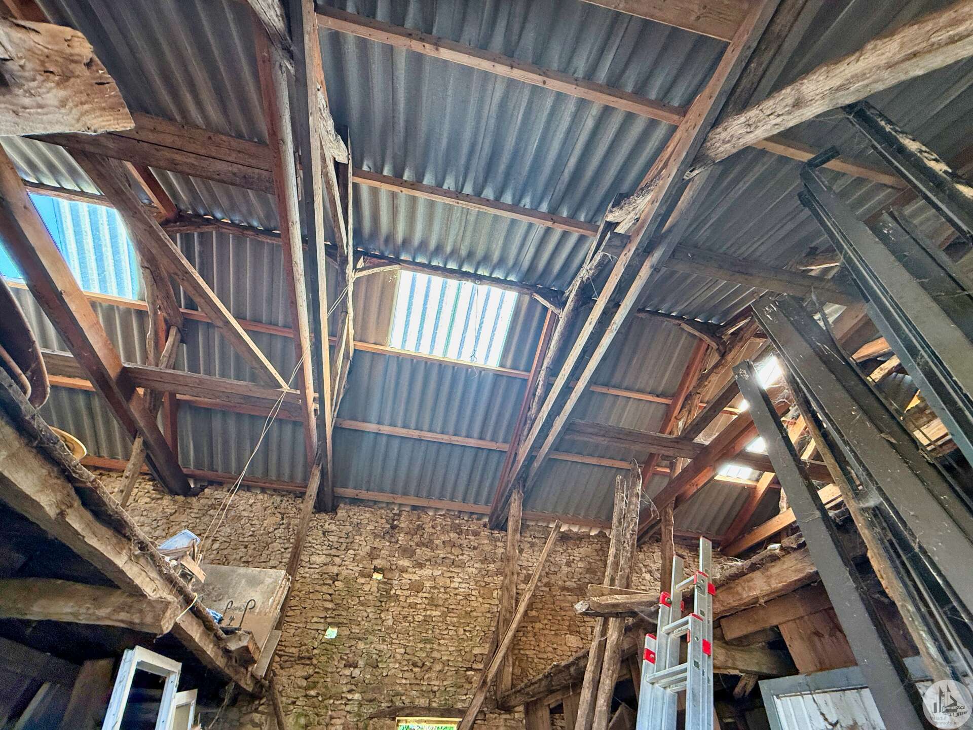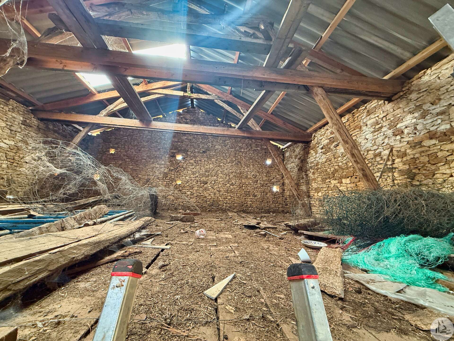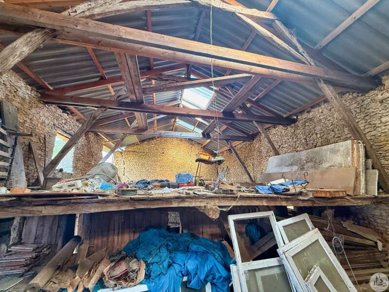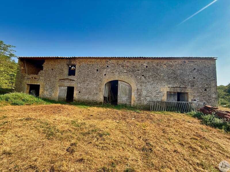In een gehucht met vijf huizen staat deze schuur, met een oppervlakte van meer dan 100 m² op de begane grond en een verdieping, op een perceel van 1683 m² midden in de natuur, zonder buren of landbouwgewassen in de buurt.