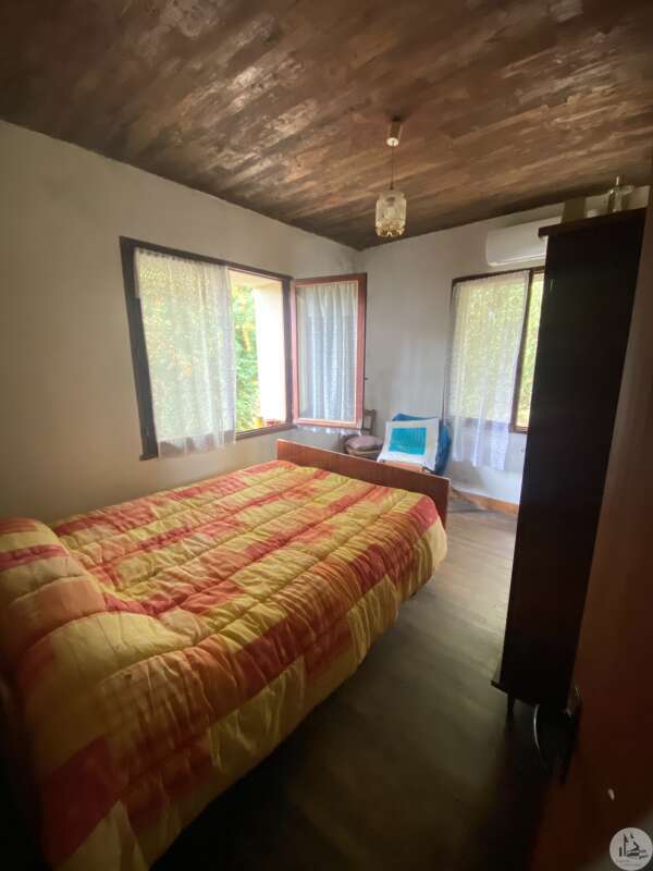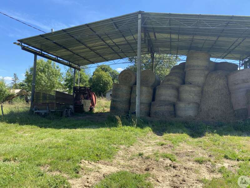 Een voormalige boerderij met een woonhuis, een schuur en twee metalen zonneschermen. Een woonhuis gebouwd in 1967, met een woonoppervlakte van circa 67 m², bestaande uit: - Een woonkamer van circa 18,2 m², betegelde vloer, openslaande deuren, een plafond met lambrisering en gepleisterde muren. - Een keuken van circa 6 m², betegelde vloer en een raam. De keuken is voorzien van een spoelbak, boven- en onderkastjes, een gasfornuis en een afzuigkap. - Een hal van circa 7,1 m², betegelde vloer, gepleisterde muren en een plafond met lambrisering. Een toegangsdeur. - Een doucheruimte van circa 3,6 m², betegelde vloer, betegelde muren en een raam. Een bad, wastafel en bidet. - Een apart toilet van circa 1,8 m² (140 sq ft), betegelde wanden, tegelvloer en een raam. - Een slaapkamer van circa 10,4 m², tegelvloer en een ladder naar de zolder. - Een slaapkamer van circa 9,5 m², houten vloer, gestuukte wanden, behangen wanden en één raam. - Een slaapkamer van circa 10 m², houten vloer, twee ramen, behangen wanden en een plafond met houten lambrisering. - Een verbouwde zolder met twee kamers van circa 22,3 m² en 26,5 m², houten vloer en een ongeïsoleerd dak. Alle ramen en deuren hebben enkel glas. Het huis heeft geen verwarming. Een vrijstaande stenen schuur van 15,7 m x 19 m, met een aangestampte leemvloer. Het dak heeft een asbesthoudend afschot (naar verwachting) en een afschot van tegels. Aangrenzend aan de schuur bevindt zich een overkapping van 7 x 15 meter op de grond, met een nieuwe dakbedekking. Een overkapping van hout en metaal voor de opslag van landbouwmachines en een werkplaats. Een metalen overkapping voor de opslag van hooi.