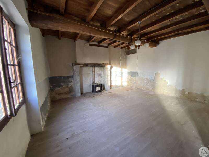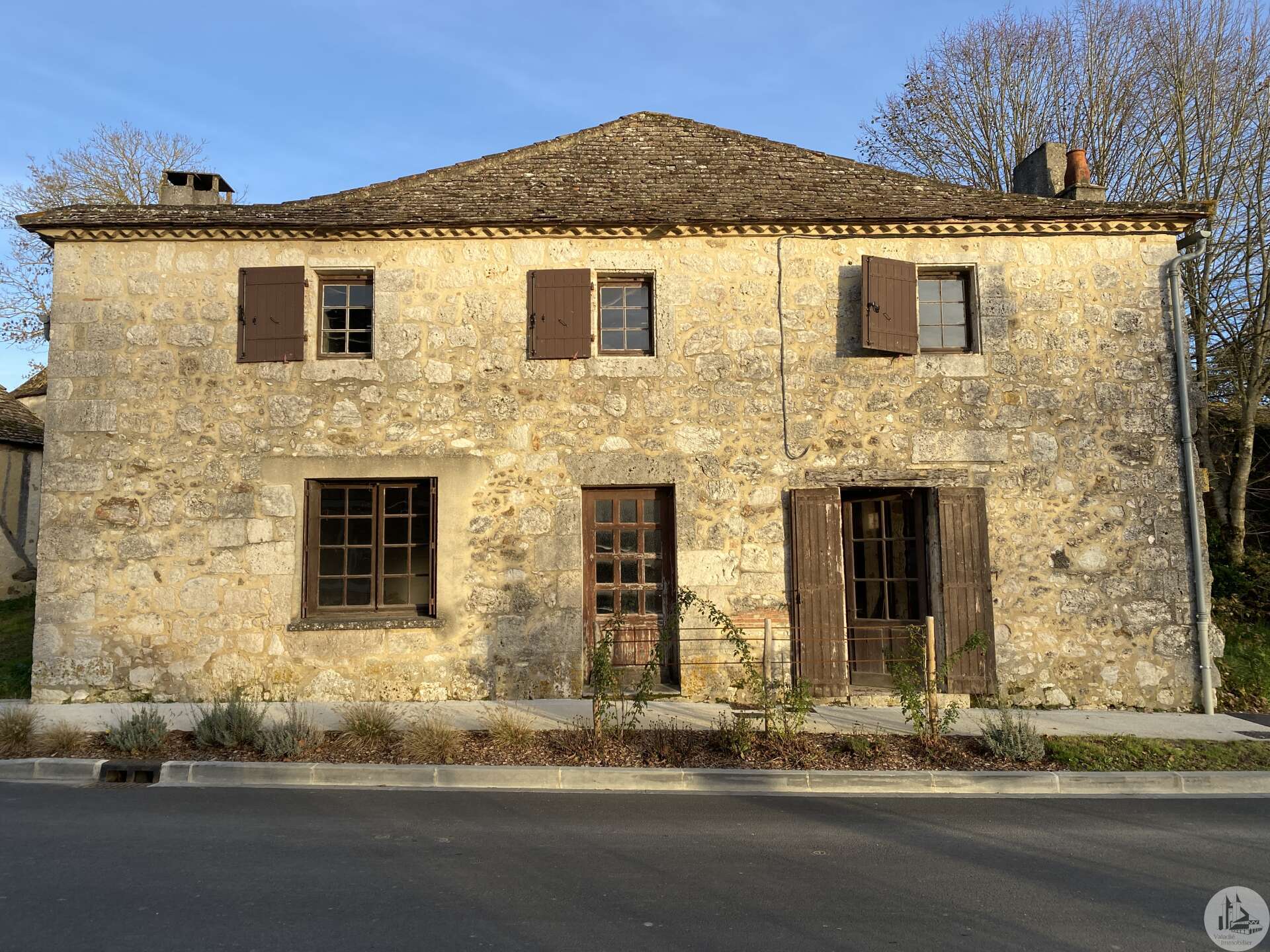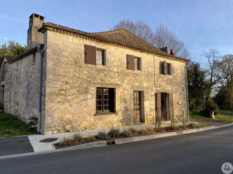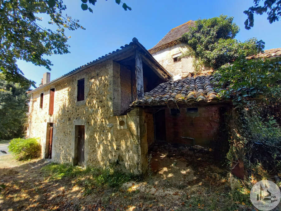 Een huis in het hart van een klein dorpje tussen Villeréal en Beaumontois in de regio Périgord (met een bakkerij, school, restaurants en cafés), op 10 minuten van de vestingstadjes (bastides), met alle voorzieningen, met een woonoppervlakte van circa 200 m² verdeeld over twee verdiepingen, bestaande uit: - Een hal/gang van circa 7,4 m² met tegelvloer - Een keuken van circa 29,7 m² met houten vloer, kasten, spoelbak, open haard, elektriciteitsmeter en twee openslaande deuren. - Een kamer van circa 24,9 m² met houten vloer, open haard, openslaande deuren naar de tuin en een trap naar de bovenverdieping. - Een woonkamer van circa 28,2 m² met houten vloer en open haard. - Een kamer van circa 16,7 m² aan het einde van de hal, eveneens bereikbaar via een trap naar de bovenverdieping, met een betonnen vloer. Bovenverdieping: - Een overloop van circa 2 m² met parketvloer. - Een slaapkamer van circa 10,9 m² met parketvloer. - Een kamer van circa 11 m² met parketvloer. - Een slaapkamer van circa 29,6 m² met parketvloer. - Een slaapkamer van circa 14,5 m² met houten vloer. - Een slaapkamer van circa 12,6 m² met houten vloer. - Een slaapkamer van circa 11,7 m² met houten vloer en open haard. Aan het huis is een stenen schuur van circa 90 m² bevestigd. Een vrijstaande garage van circa 50 m². Dak in goede staat. Omgeven door grond. En twee bouwpercelen.