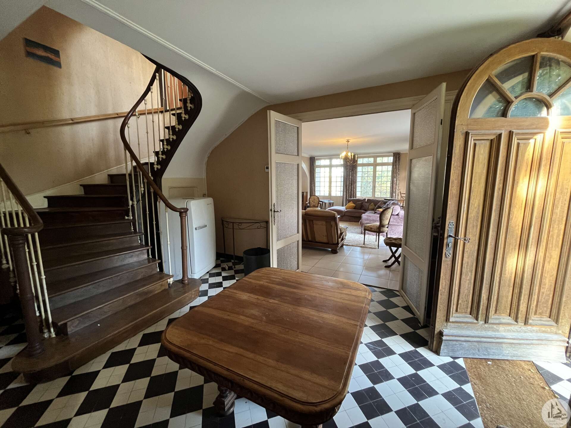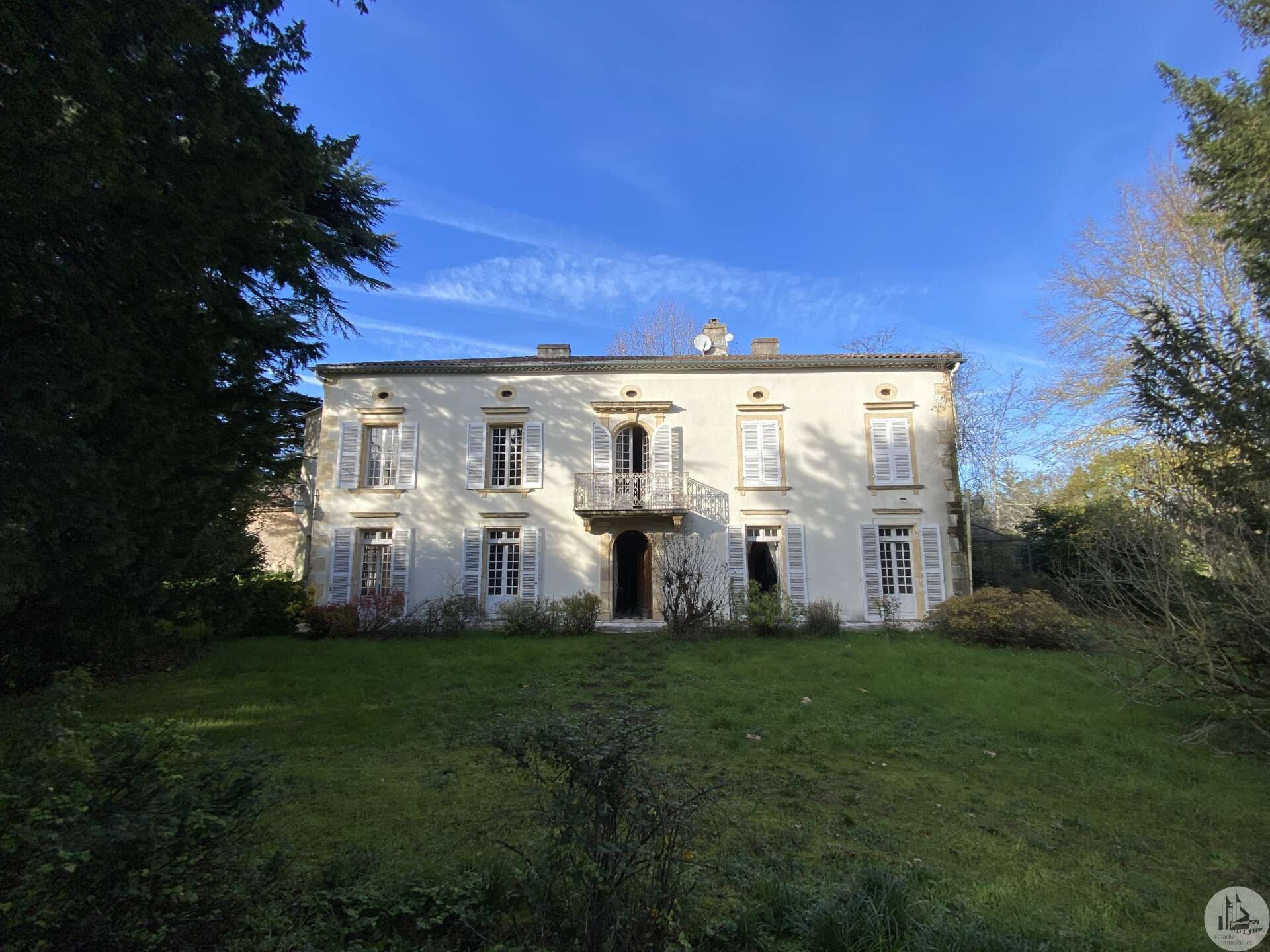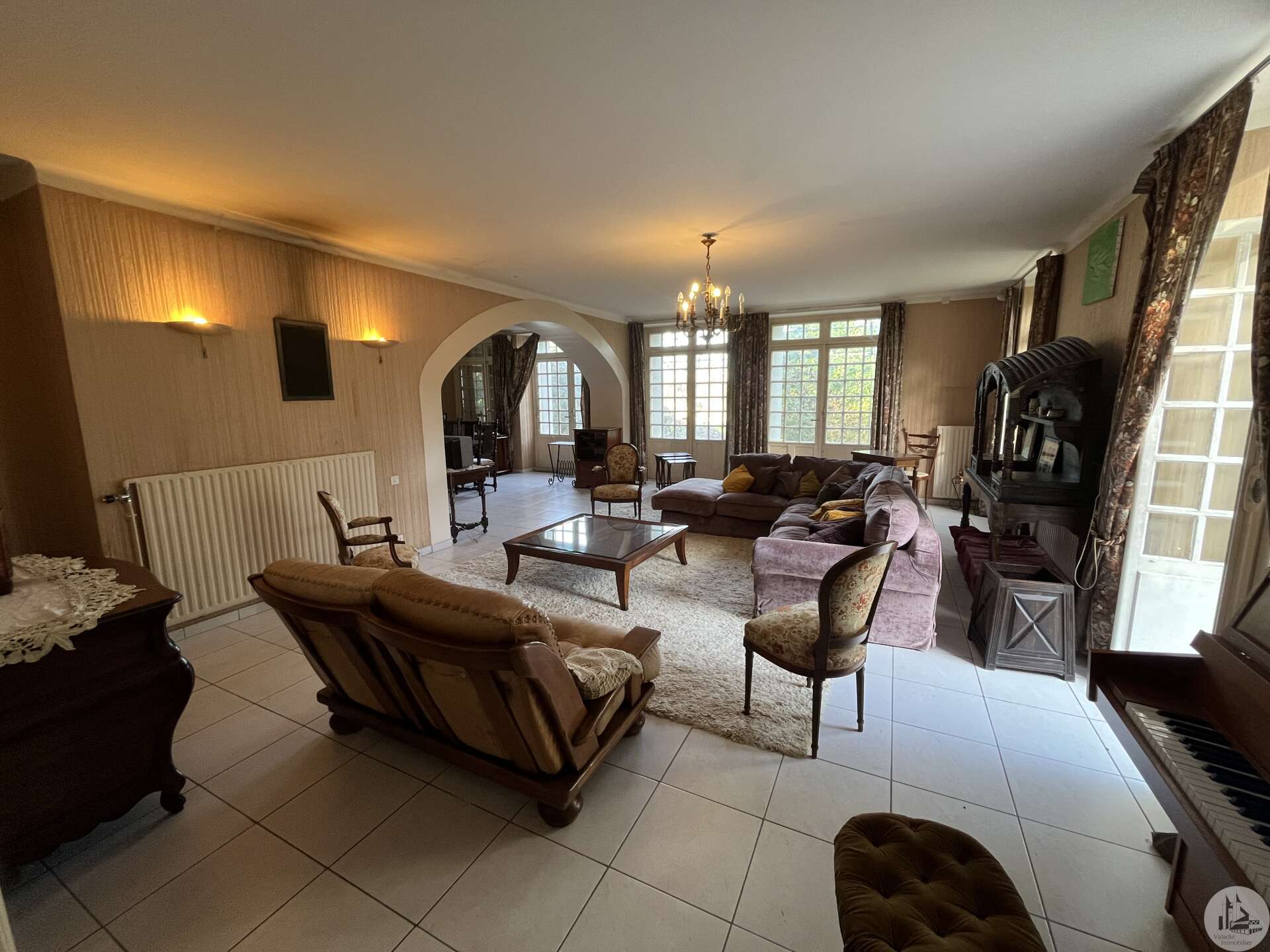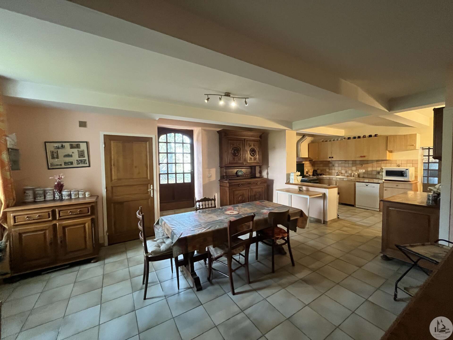 Een herenhuis met een moderne uitbouw, bestaande uit: - Een hal van circa 21,2 m² met tegelvloer en een prachtige houten trap naar de bovenverdieping. Vanuit deze hal, rechts: - Een L-vormige woon-/eetkamer van circa 77 m² met 6 openslaande deuren, tegelvloer, een open haard met inzethaard en behangen wanden. - Een berging van circa 3 m² met linoleumvloer. - Een woonkeuken van circa 42 m² met een deur naar buiten. De keuken is voorzien van een spoelbak en inbouwkasten. - Een hal van circa 10,7 m² met tegelvloer en inbouwkasten. - Een hal van circa 3 m² met een spoelbak en een apart toilet. - Een doucheruimte in restauratie van circa 9,3 m² met een openslaande deur, laminaatvloer en tegelvloer. - Een kantoor van circa 12,6 m² met vloerbedekking, een openslaande deur en behangen muren. Boven: - Een overloop van circa 21 m² met een trappenhuis, een massief parketvloer en een openslaande deur naar een balkon. Verder naar rechts: - Een slaapkamer van circa 19,5 m² met vloerbedekking, een decoratieve open haard, een raam en een kast. - Een slaapkamer met badkamer en suite, eveneens toegankelijk via een gang, van circa 15,5 m² met vloerbedekking en twee ramen. - Een gang van circa 2,6 m² met tegelvloer. - Een badkamer van circa 14,5 m² met tegelvloer, betegelde muren en op sommige plaatsen licht afgebladerd behang. Een wastafel, een bad, een toilet, een bidet en twee ramen met dubbel glas. - Een apart toilet. - Een slaapkamer van circa 14,9 m² met vloerbedekking, een kast, twee ramen, een wastafel en behangen muren. - Een linnenkamer van circa 5,4 m² met parketvloer. - Een doorgang van circa 12,8 m² met parketvloer. - Een slaapkamer van circa 15,5 m² met parketvloer en enkel glas, met een eigen badkamer met douche. - Een slaapkamer van circa 17,6 m² met vloerbedekking en dezelfde eigen badkamer met douche. Wastafel, douchecabine, linoleumvloer en tegelvloer (circa 3,7 m²). - Een slaapkamer van circa 21,6 m², inbouwkasten, twee ramen met enkel glas en vloerbedekking. - Een woonkamer van circa 31,4 m², parketvloer, drie ramen met enkel glas, een marmeren open haard met lijstwerk en plafondlampen met lijstwerk. Een tweede verdieping met toegang tot: - Een zolder over de gehele oppervlakte van het huis (circa 171 m², parketvloer). - Een dakterras op het noordoosten. Centrale verwarming op olie met gietijzeren radiatoren. Een waterontharder. Een oude stenen wijnmakerij van 18 x 6 m. Een prachtig bosrijk terrein met een zwembad, overdekt door een koepel van 9 x 4,5 m. met een romaanse trap. Ernaast is een houten chalet gebouwd om de zwembadpomp te huisvesten. Er is ook een tennisbaan op het terrein. De omheining is in goede staat, maar de Quick-Fire bestrating moet worden vernieuwd. Tegenover de woning bevindt zich een garage van steen en betonblokken. Een oude stenen kelder van 18 x 6 meter.