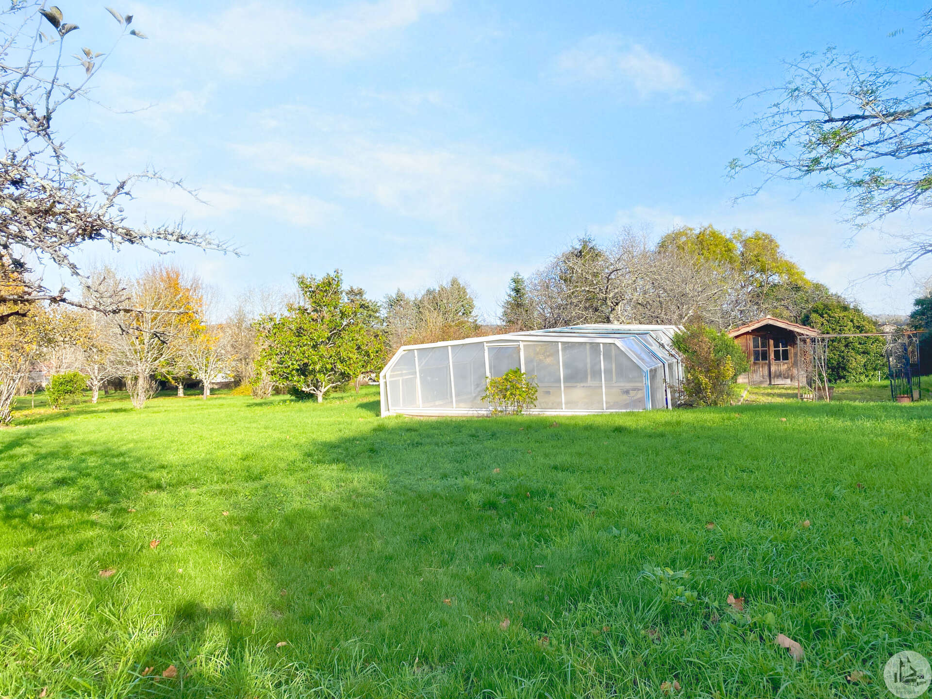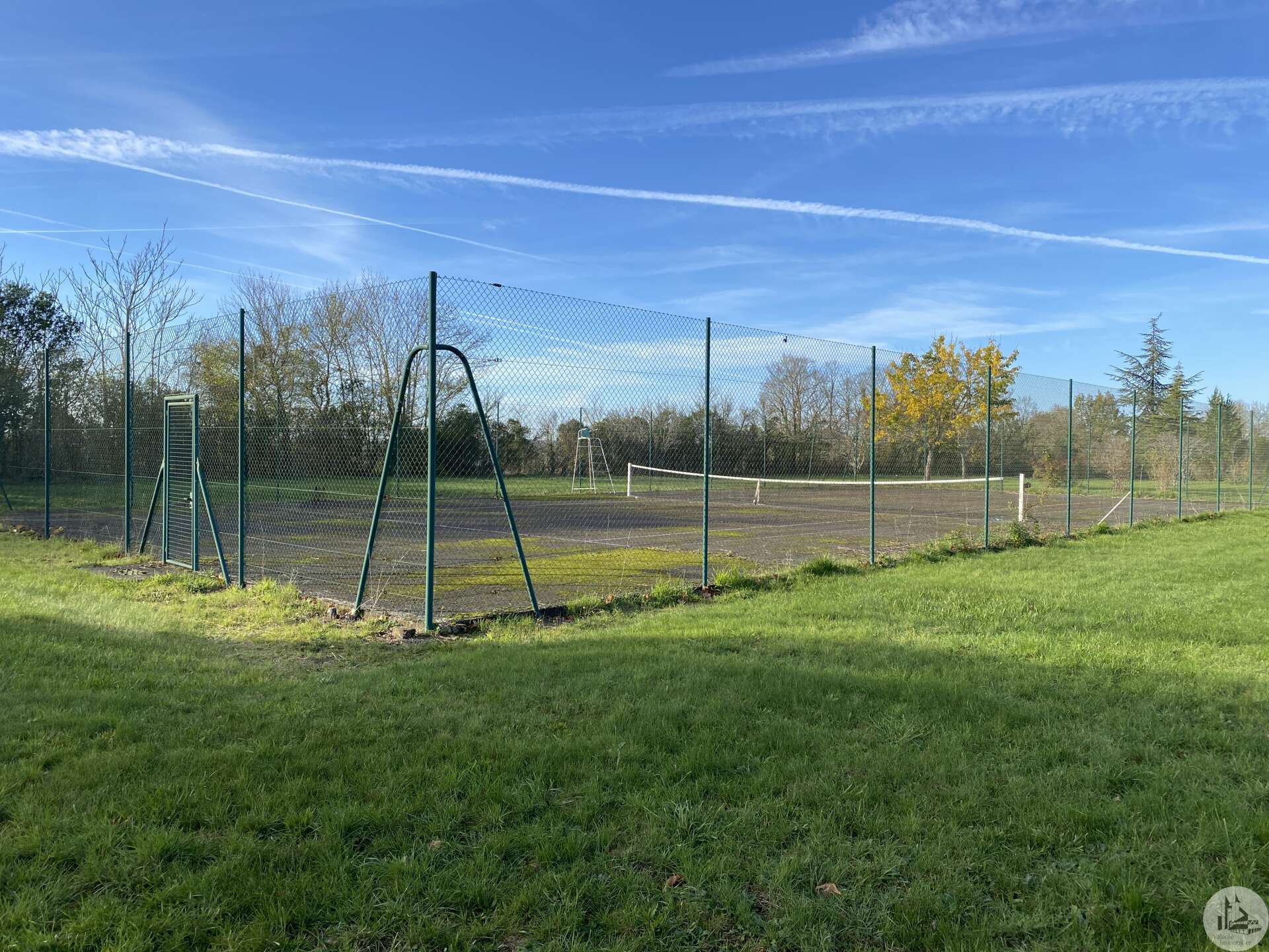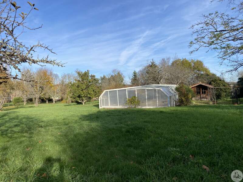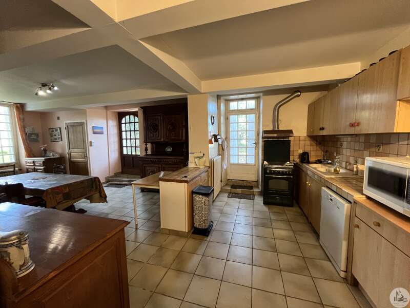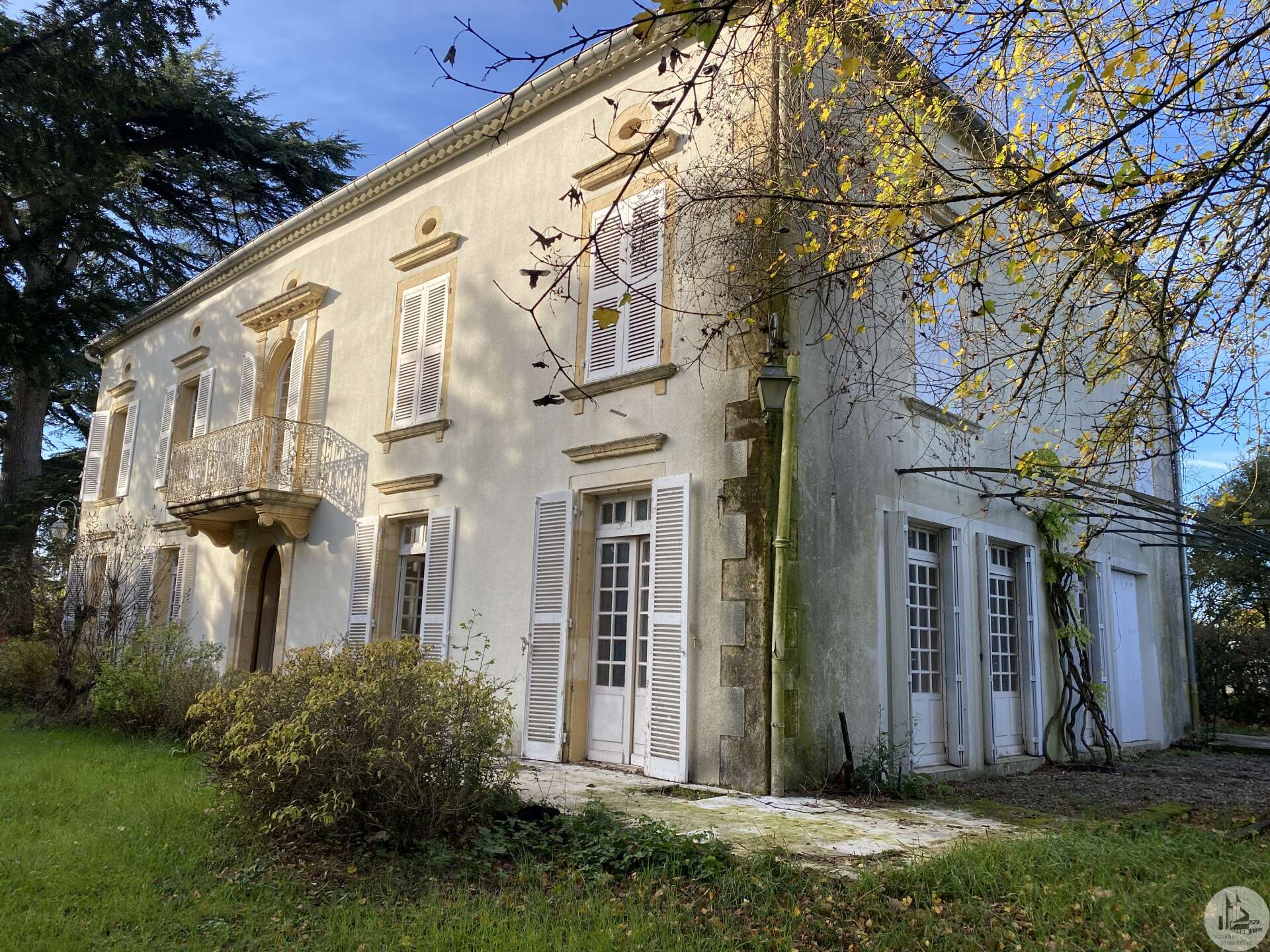 Een herenhuis met een moderne uitbouw, bestaande uit: - Een hal van circa 21,2 m² met tegelvloer en een prachtige houten trap naar de bovenverdieping. Vanuit deze hal, rechts: - Een L-vormige woon-/eetkamer van circa 77 m² met 6 openslaande deuren, tegelvloer, een open haard met inzethaard en behangen wanden. - Een berging van circa 3 m² met linoleumvloer. - Een woonkeuken van circa 42 m² met een deur naar buiten. De keuken is voorzien van een spoelbak en inbouwkasten. - Een hal van circa 10,7 m² met tegelvloer en inbouwkasten. - Een hal van circa 3 m² met een spoelbak en een apart toilet. - Een doucheruimte in restauratie van circa 9,3 m² met een openslaande deur, laminaatvloer en tegelvloer. - Een kantoor van circa 12,6 m² met vloerbedekking, een openslaande deur en behangen muren. Boven: - Een overloop van circa 21 m² met een trappenhuis, een massief parketvloer en een openslaande deur naar een balkon. Verder naar rechts: - Een slaapkamer van circa 19,5 m² met vloerbedekking, een decoratieve open haard, een raam en een kast. - Een slaapkamer met badkamer en suite, eveneens toegankelijk via een gang, van circa 15,5 m² met vloerbedekking en twee ramen. - Een gang van circa 2,6 m² met tegelvloer. - Een badkamer van circa 14,5 m² met tegelvloer, betegelde muren en op sommige plaatsen licht afgebladerd behang. Een wastafel, een bad, een toilet, een bidet en twee ramen met dubbel glas. - Een apart toilet. - Een slaapkamer van circa 14,9 m² met vloerbedekking, een kast, twee ramen, een wastafel en behangen muren. - Een linnenkamer van circa 5,4 m² met parketvloer. - Een doorgang van circa 12,8 m² met parketvloer. - Een slaapkamer van circa 15,5 m² met parketvloer en enkel glas, met een eigen badkamer met douche. - Een slaapkamer van circa 17,6 m² met vloerbedekking en dezelfde eigen badkamer met douche. Wastafel, douchecabine, linoleumvloer en tegelvloer (circa 3,7 m²). - Een slaapkamer van circa 21,6 m², inbouwkasten, twee ramen met enkel glas en vloerbedekking. - Een woonkamer van circa 31,4 m², parketvloer, drie ramen met enkel glas, een marmeren open haard met lijstwerk en plafondlampen met lijstwerk. Een tweede verdieping met toegang tot: - Een zolder over de gehele oppervlakte van het huis (circa 171 m², parketvloer). - Een dakterras op het noordoosten. Centrale verwarming op olie met gietijzeren radiatoren. Een waterontharder. Een oude stenen wijnmakerij van 18 x 6 m. Een prachtig bosrijk terrein met een zwembad, overdekt door een koepel van 9 x 4,5 m. met een romaanse trap. Ernaast is een houten chalet gebouwd om de zwembadpomp te huisvesten. Er is ook een tennisbaan op het terrein. De omheining is in goede staat, maar de Quick-Fire bestrating moet worden vernieuwd. Tegenover de woning bevindt zich een garage van steen en betonblokken. Een oude stenen kelder van 18 x 6 meter.