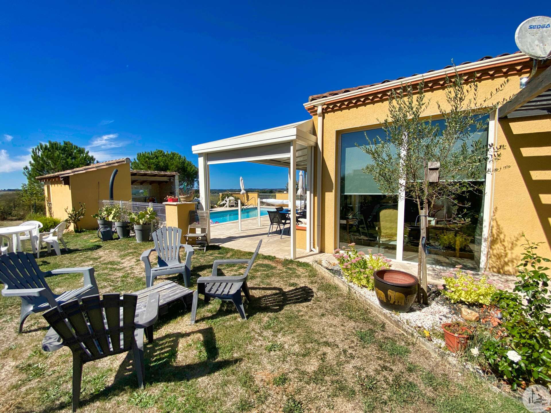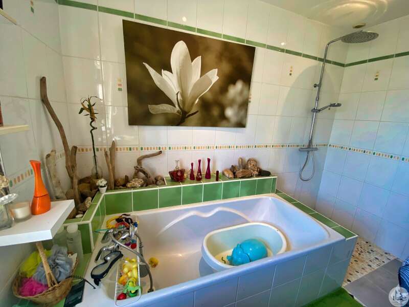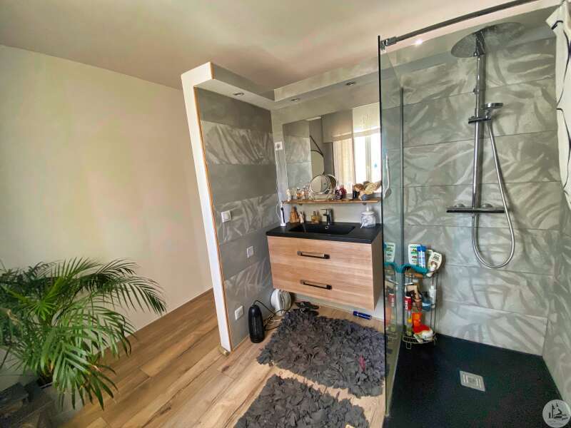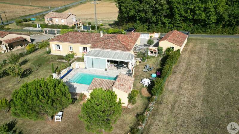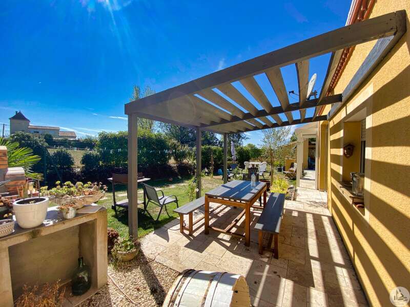 Woonhuis op het platteland, niet ver van de plaatselijke winkels. MONTESSORI-school in LOUGRATTE, recreatiemeer, wandelpad in de buurt. Het bestaat uit: - een entree met meterkast tbv: - een grote lichte woonkamer met ingerichte eiken keuken, - ingerichte veranda met schuiframen toegang tot zwembadterras, de warmte van de woning is voldoende om de veranda te verwarmen (dus circa 30m2 extra oppervlakte waar van genoten kan worden) - een kelder - 2 slaapkamers met kasten, - een master suite (16,7m2) met kleedkamer (7m2) en aangrenzende doucheruimte met toilet (7,6m2), - een kantoor (3m2), - een badkamer met ligbad en inloopdouche, - een apart toilet met fonteintje, - aangebouwde garage, - een aparte garage met carport voor 2 auto's en aangrenzende houtschuur, werkplaats, - een betegeld terras met veranda (een gesloten gedeelte/een open gedeelte = 26m2 in totaal - elektrische zonwering op het open gedeelte) kijkt uit op het 8 x 4m zwembad, zout water, poolhouse met wc, - een terras met barbecue, pizza-oven - afgesloten terrein van 1567m² met kennel/kippenhok. Alles in het riool. Omkeerbare airconditioning en houtkachel, dubbele beglazing.