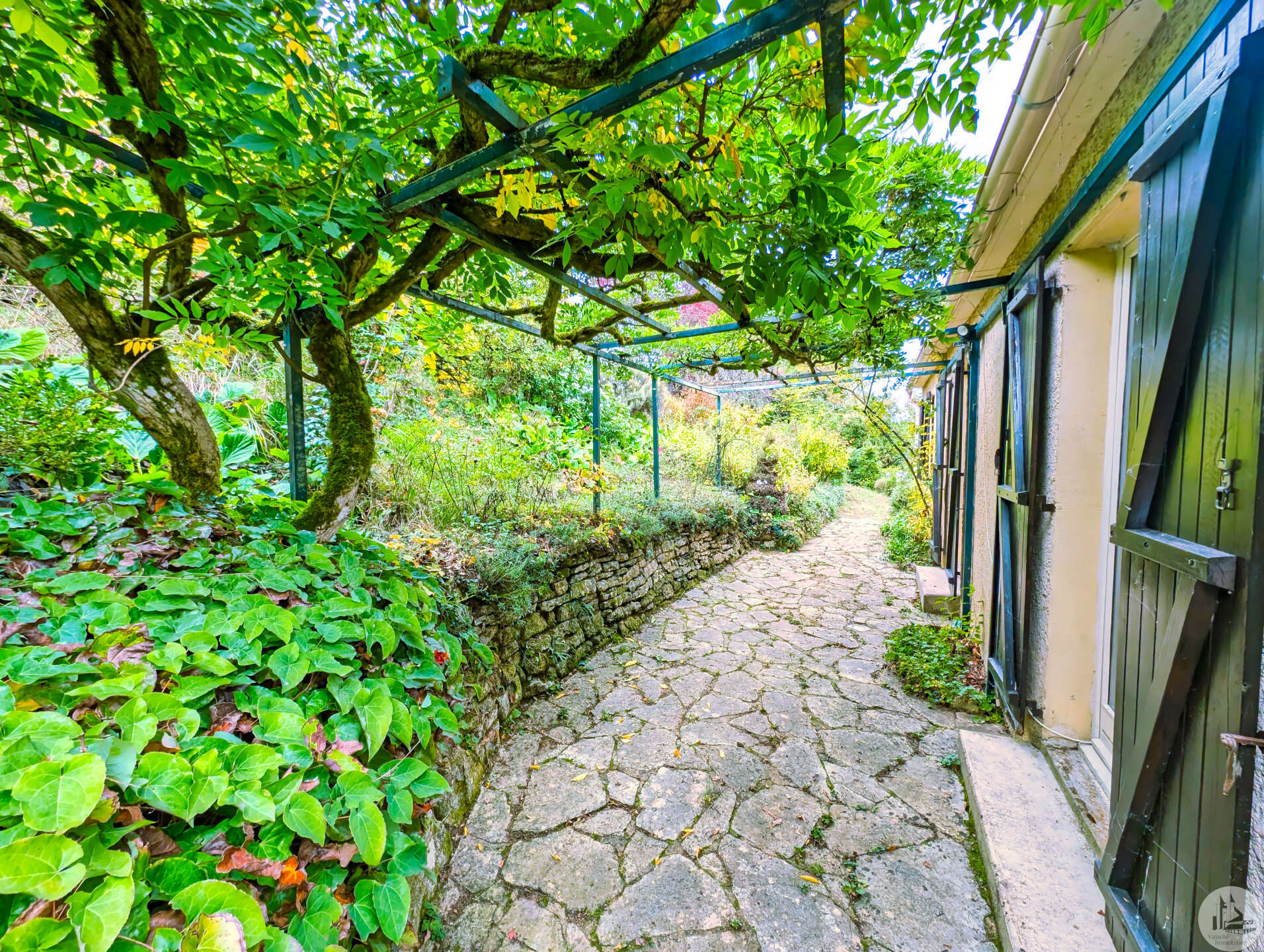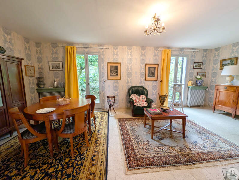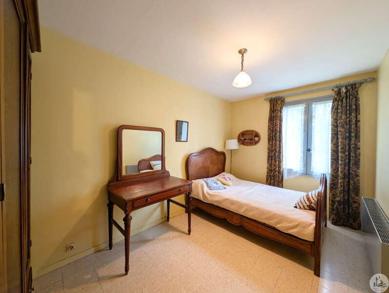 Deze gelijkvloerse woning bestaat uit een woon-/eetkamer van circa 30 m² met open haard, een keuken van 9 m², een hal die leidt naar drie slaapkamers van 11, 12 en 9 m², een badkamer van 5 m² met douche en bad en een toilet. De volledig onderkelderde woning bestaat uit een kamer van 21 m² met een aparte ingang (die kan worden omgebouwd tot woonruimte), een garage van circa 55 m² met een stookruimte van 5 m². Een aangrenzende, onafhankelijke garage van circa 21 m² (hoogte geschikt voor het parkeren van een bestelwagen). Centrale verwarming op gas (ketel uit 2024) - Houten ramen en deuren met dubbele beglazing - Individuele afvoer.