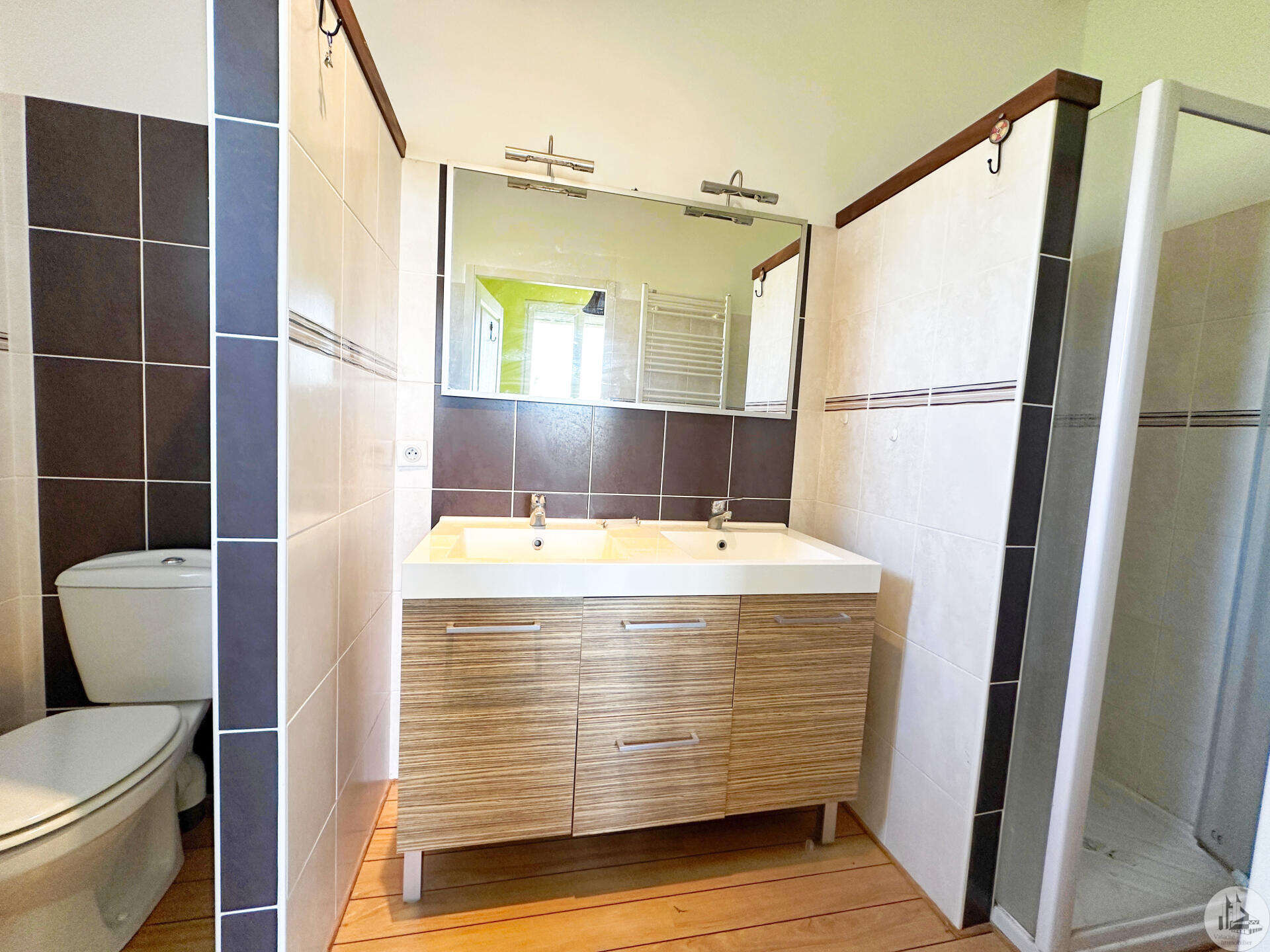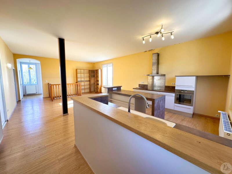 Gelegen op slechts enkele minuten van winkels, is deze charmante woning ideaal voor een gezin of als tweede woning. De woning beschikt over een lichte woonkamer (49 m²) met een open keuken en een zithoek, wat een gastvrije en moderne ruimte creëert. Het slaapgedeelte bestaat uit drie slaapkamers (14,9 en 10,8 m²), waarvan één een master suite (14,5 m² + 5 m² doucheruimte), en een doucheruimte met toilet (5,3 m²). Een hal (3,9 m²) biedt toegang tot de buitenruimte en leidt naar de kelder. Op tuinniveau vindt u een praktische wasruimte (10,3 m²) en een kelder (74,5 m²) die dienstdoet als garage met een stookruimte (VIESSMANN oliegestookte cv-ketel): perfect voor maximale opslagruimte! Buiten leidt een trap naar een dakterras, een perfecte plek om te genieten van de zon en de zomeravonden. De woning staat op een perceel van 4.425 m², ideaal voor natuurliefhebbers of voor diverse ontwikkelingsprojecten. Een vrijstaande garage van 33 m² en een charmant stenen bijgebouw maken deze woning compleet.
