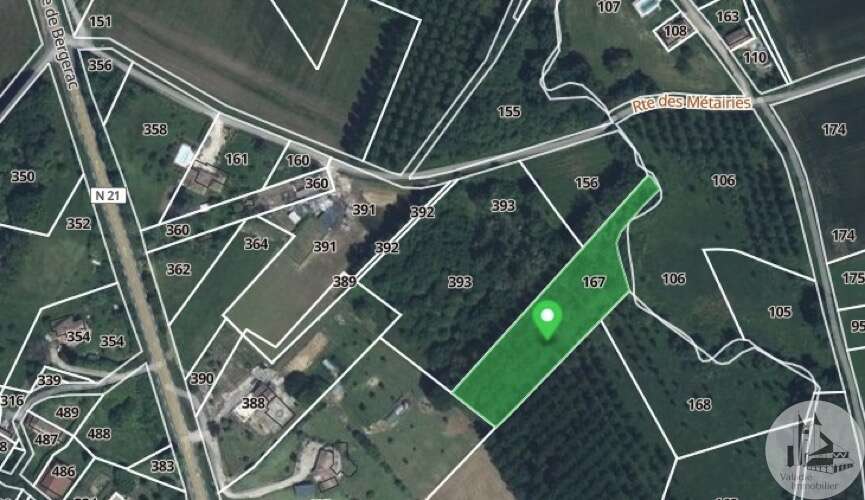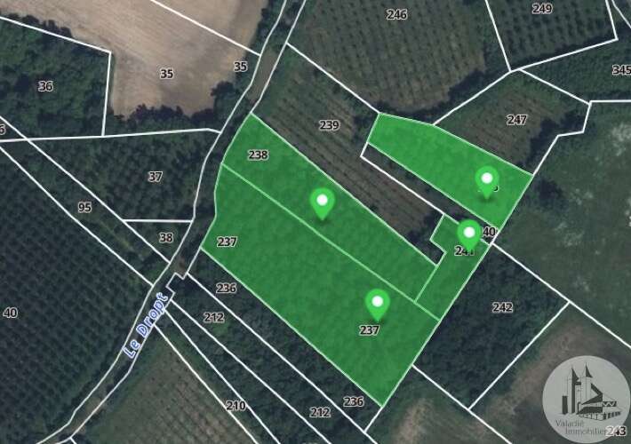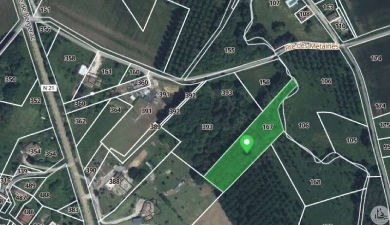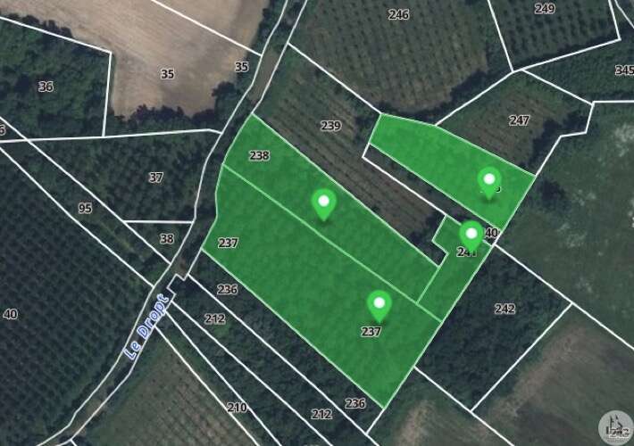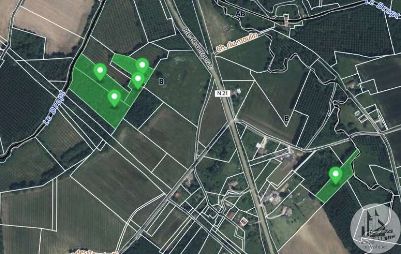 INVESTERING, IDEAAL VOOR EEN POPULIERPLANTPROJECT! Bouwvrij terrein grenzend aan de Dropt River, voorheen beplant met populieren. 5 percelen: 4 grenzend aan de Dropt River en de vijfde aan de andere kant van de N21, voor een totaal van 26.013 m².